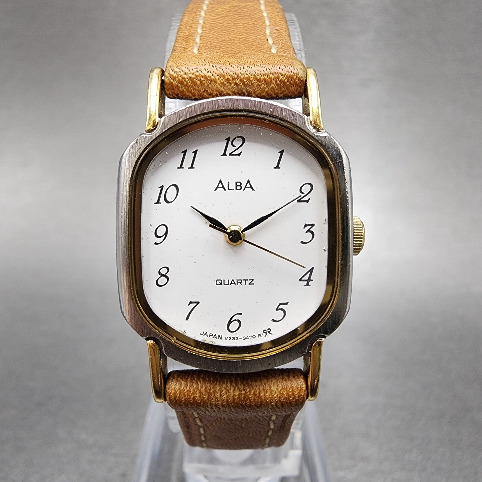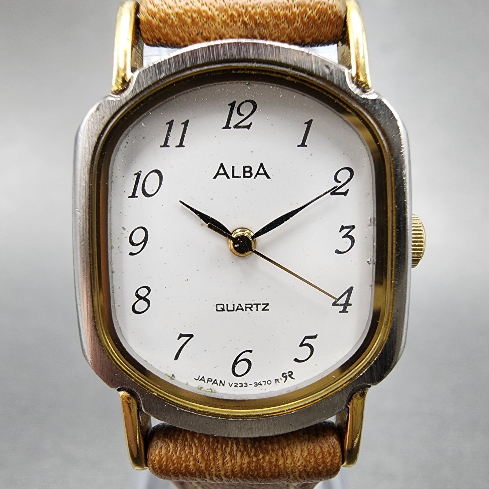 Alba Watch Women 20mm White Dial Two Tone V233-5900 New Battery