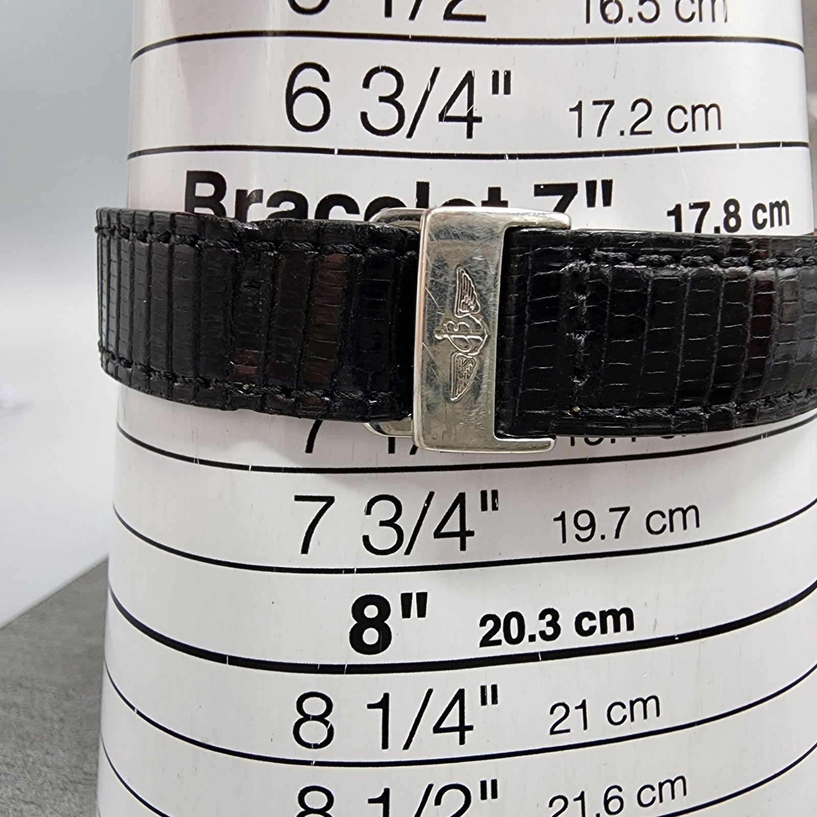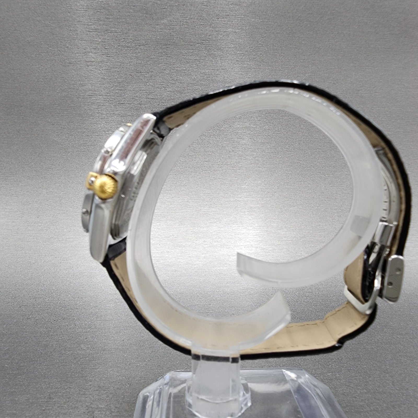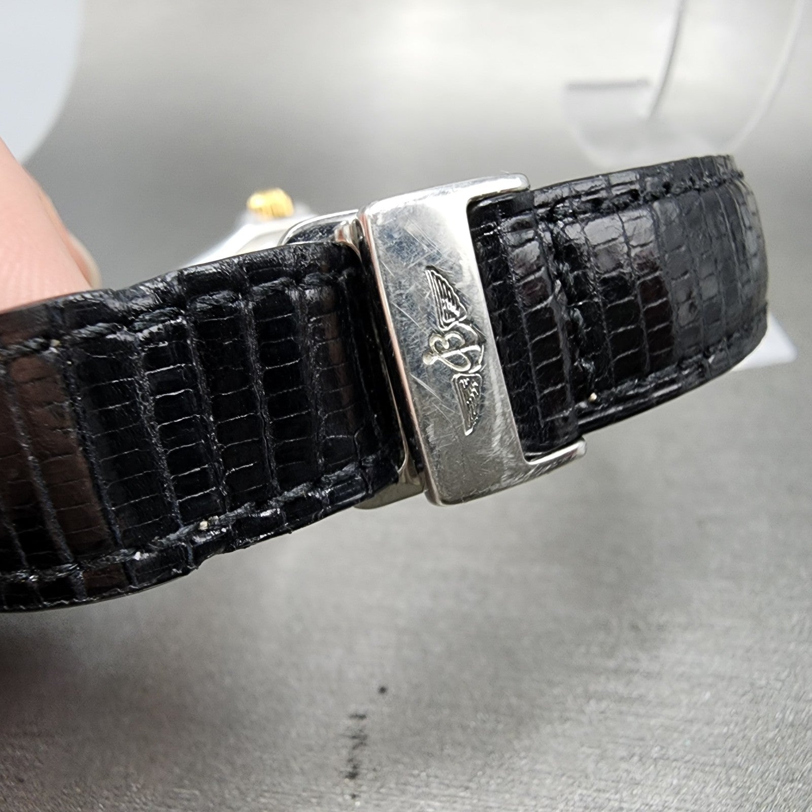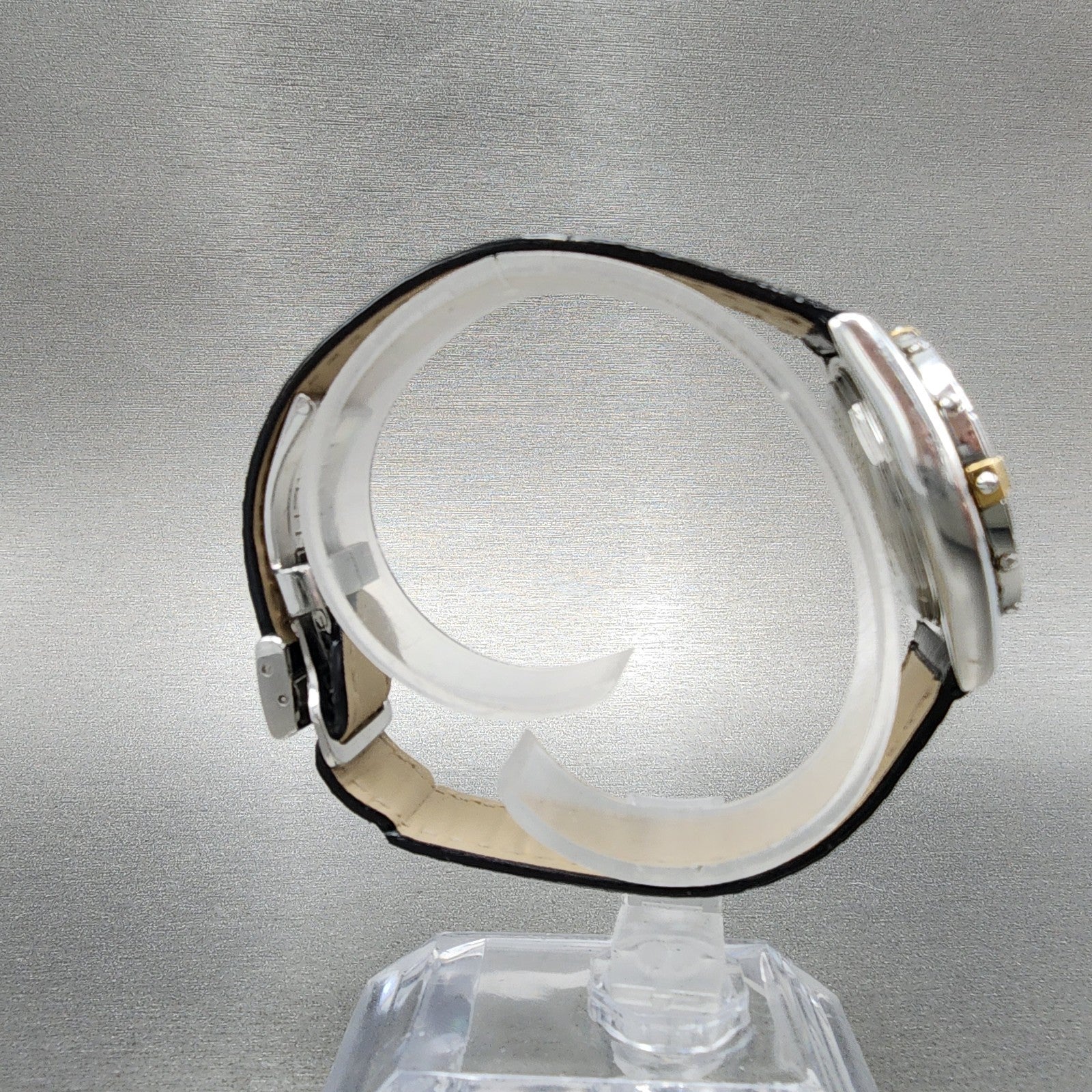 The dial is cracked from 9 to 12 o clock. The band is a generic one but the buckle is a Breitling branded. This watch has been worn but is in good working condition.