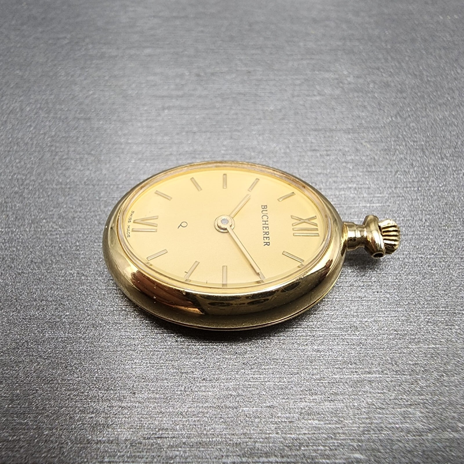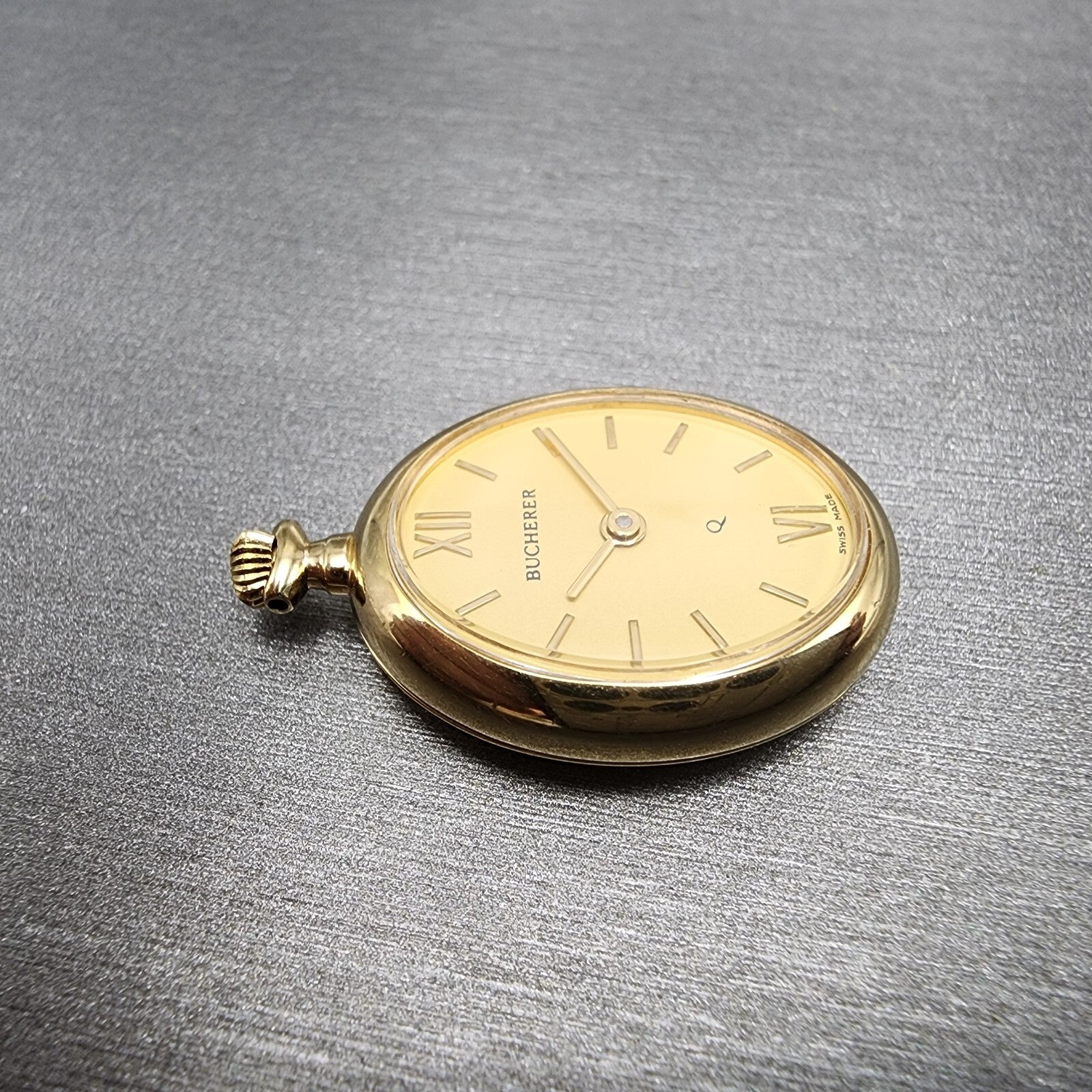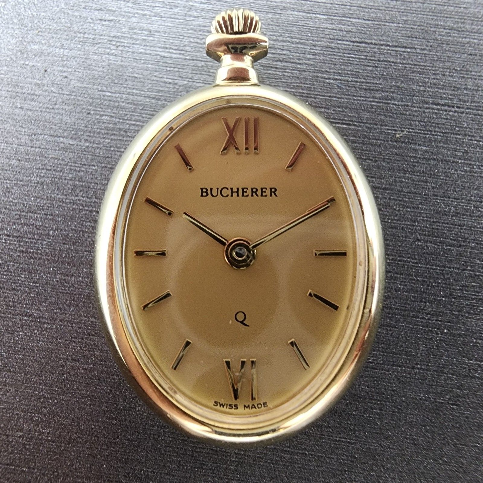 Bucherer Q Pendant Watch Women 20mm Gold Dial Gold Tone Oval New Battery