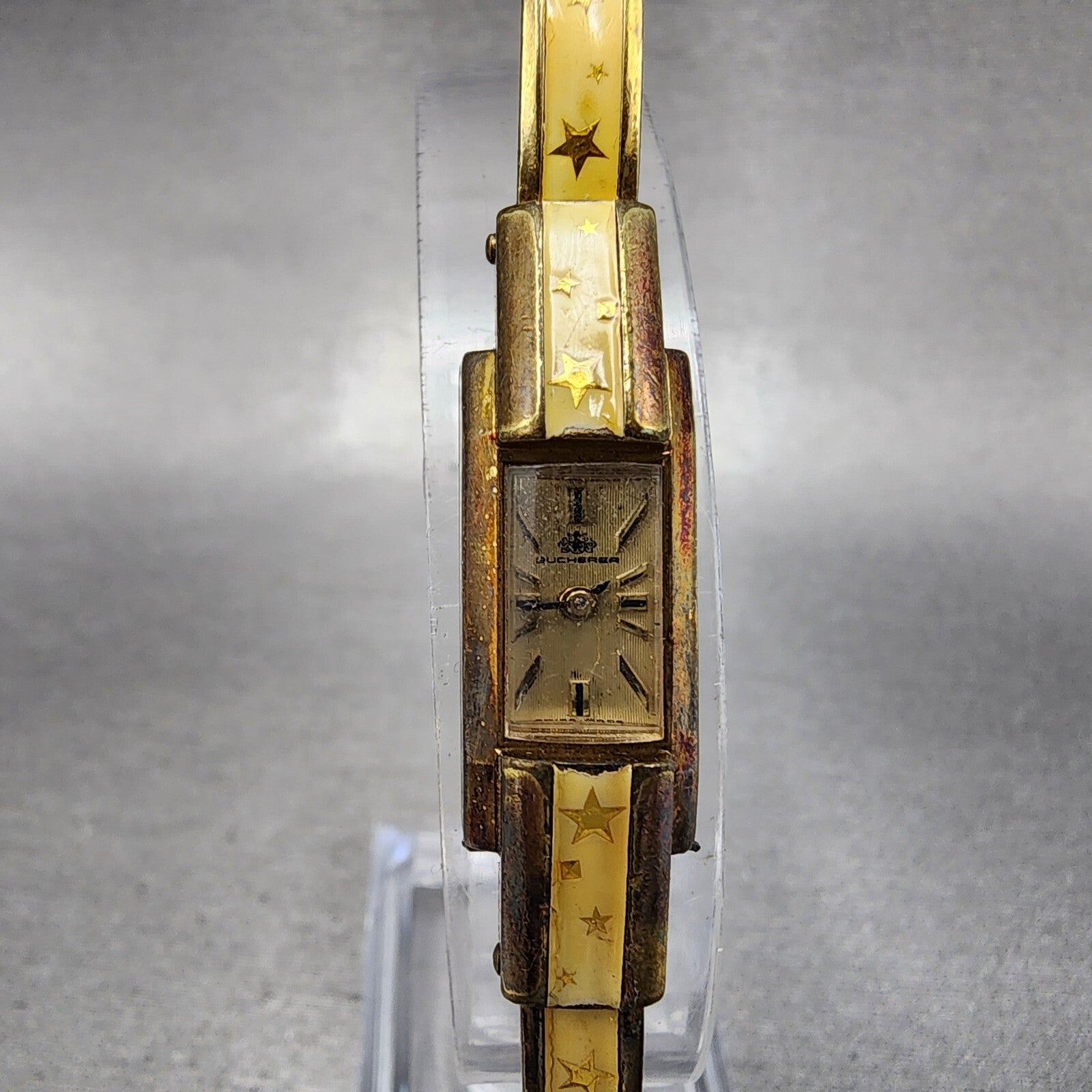 Bucherer Watch Women 11mm Champange Dial Gold Tone Rectangle Star Enamel PARTS