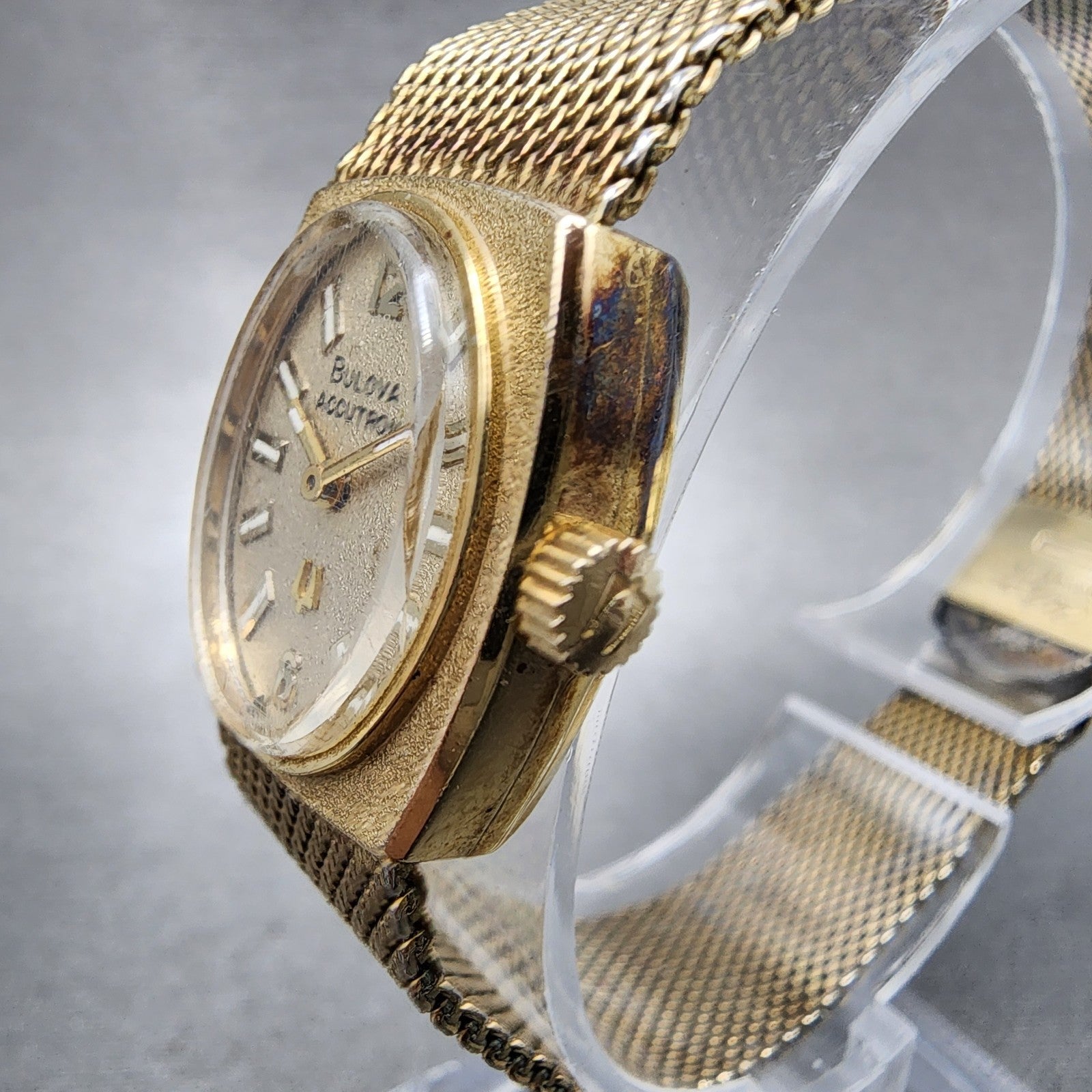 Bulova Accutron Watch Women 18mm Gold Dial Gold Filled Rectangle New Battery