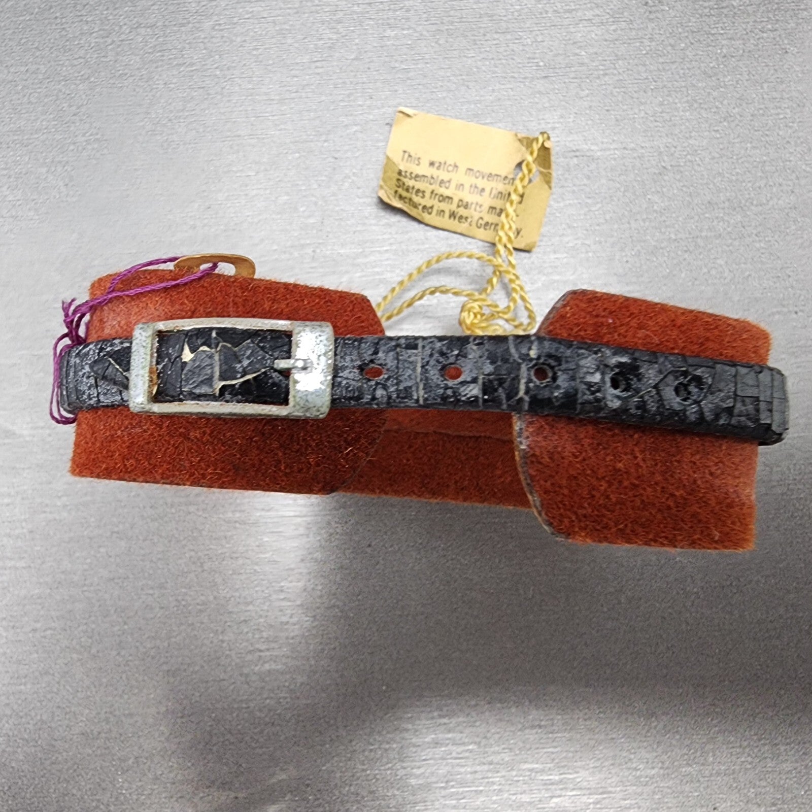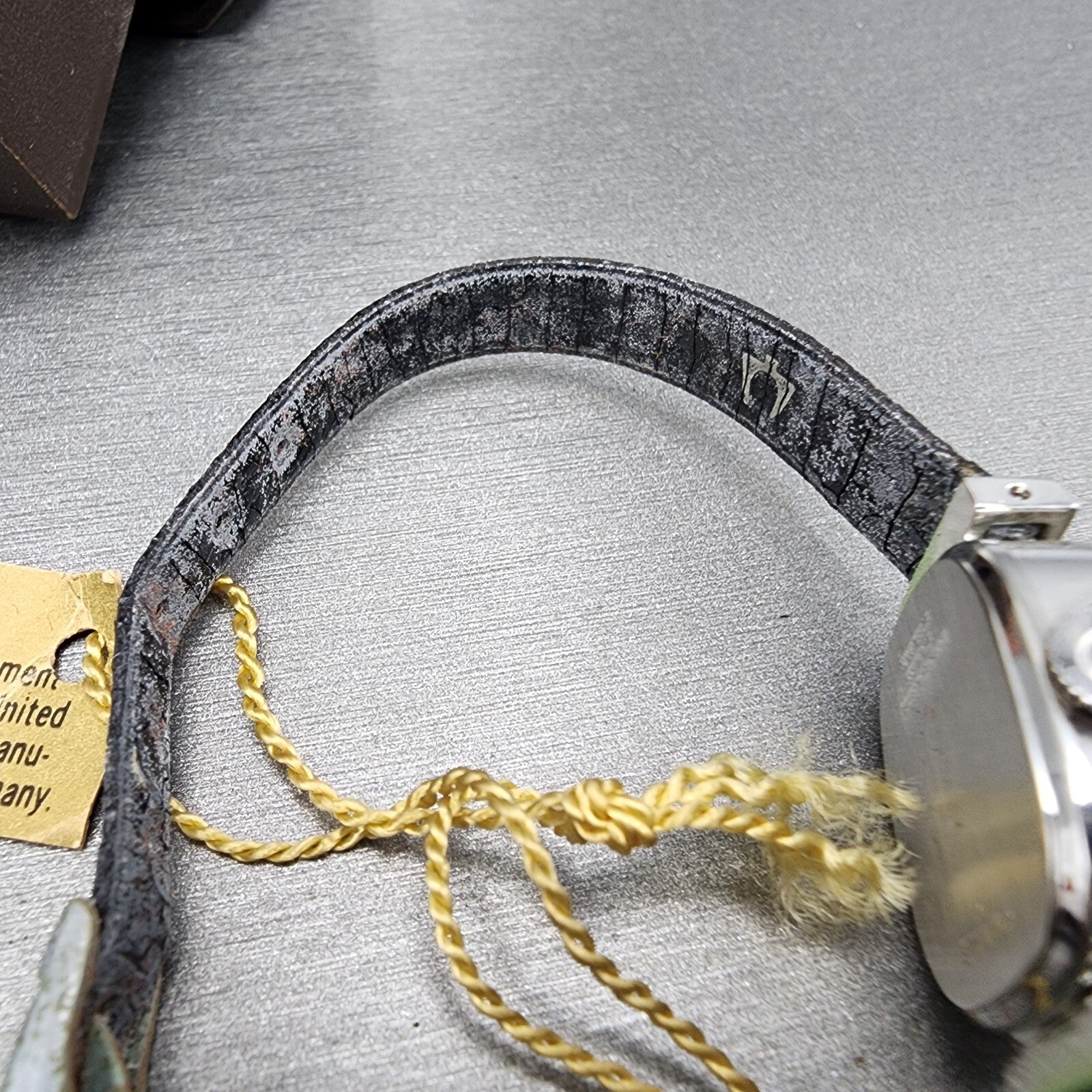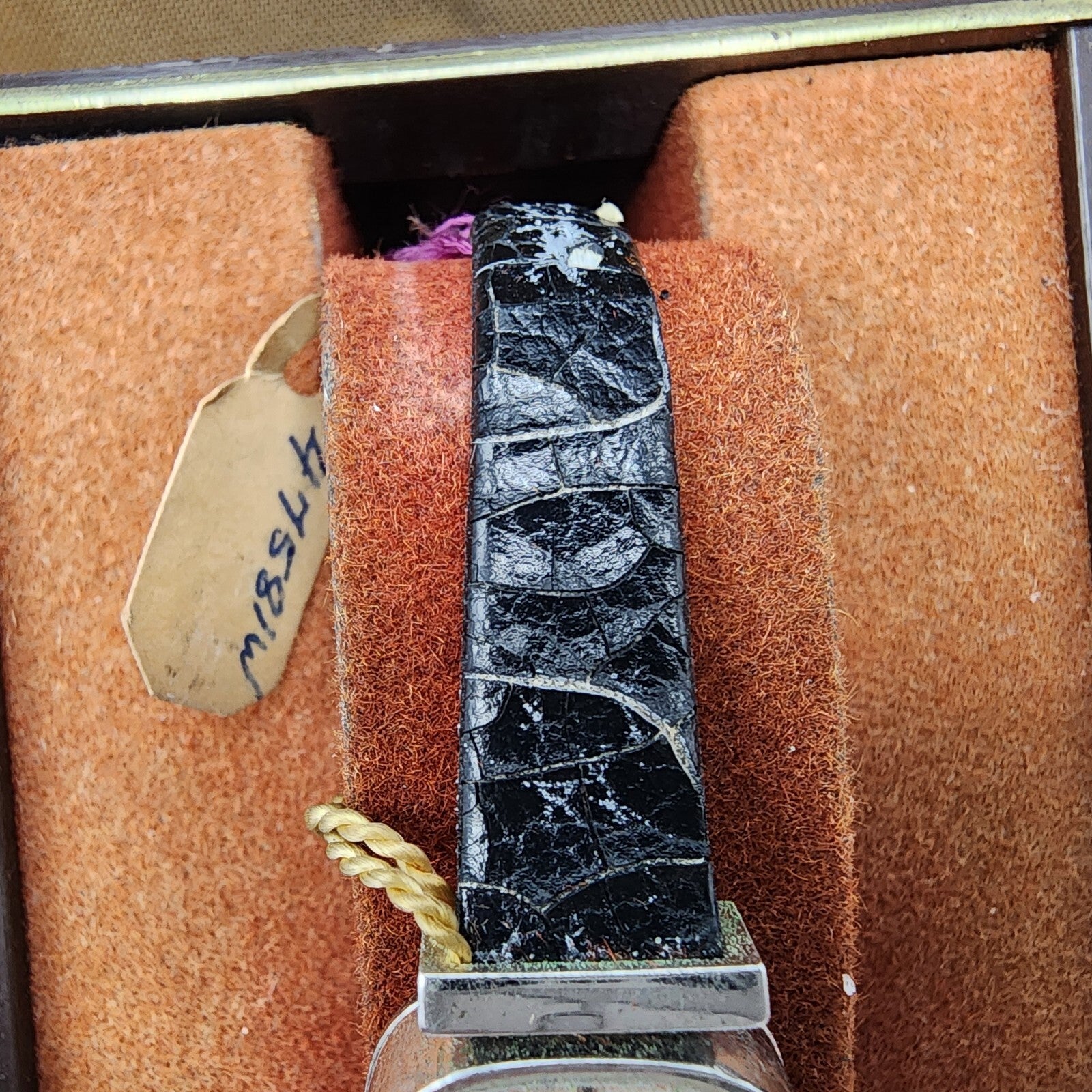 This watch is new old stock from a jewelry store and has a new battery and works. The watch may have light scratches from storeage because it is over 20 years old. Please refer to pictures