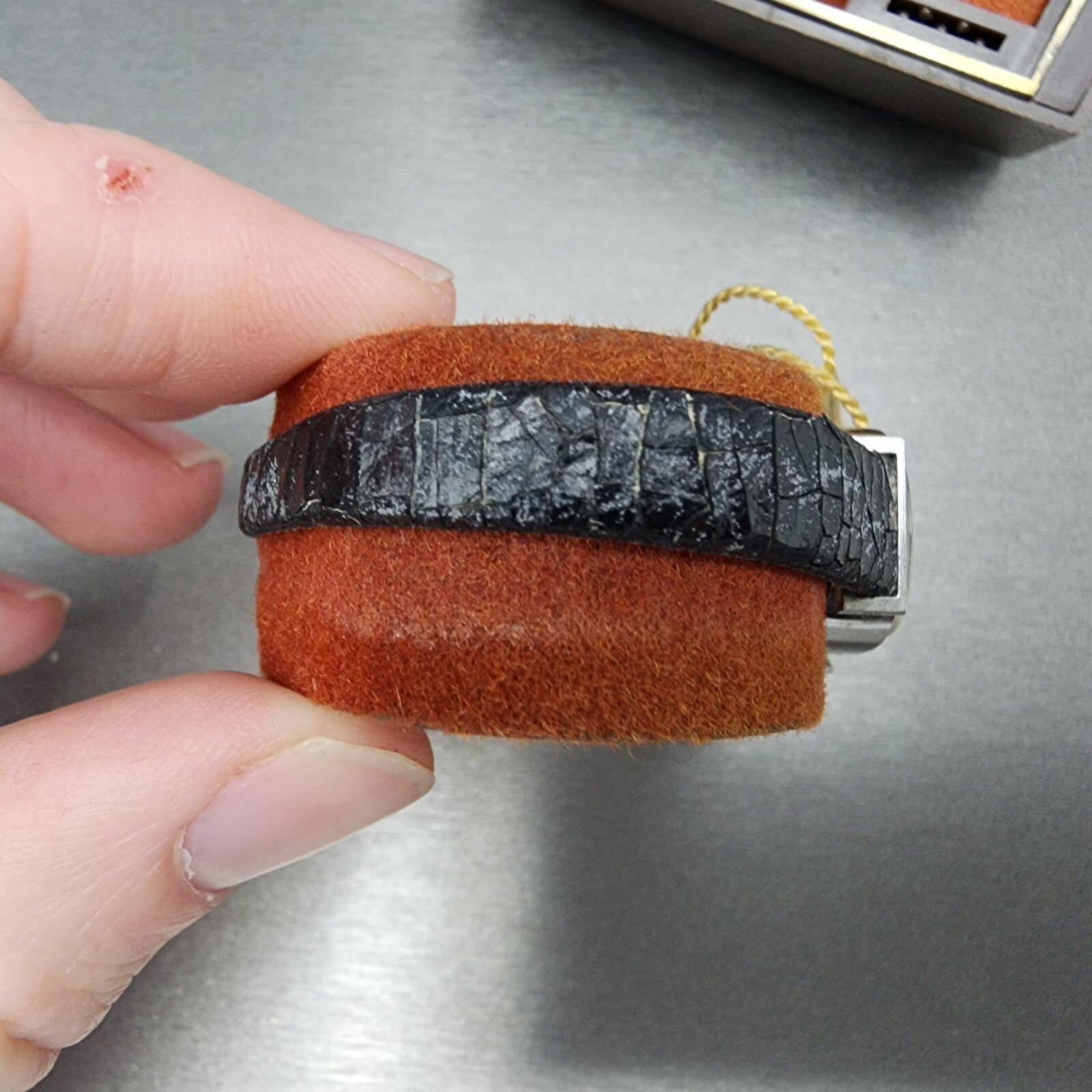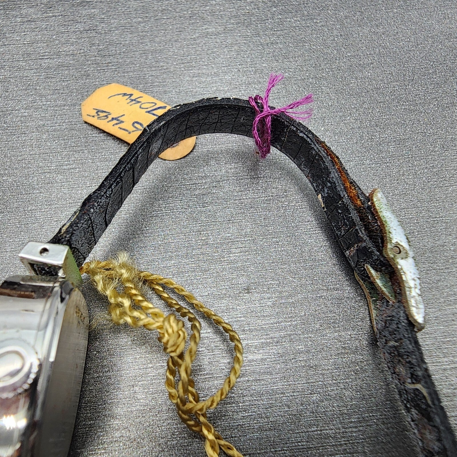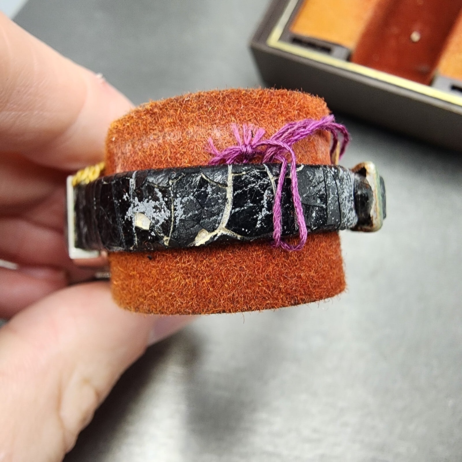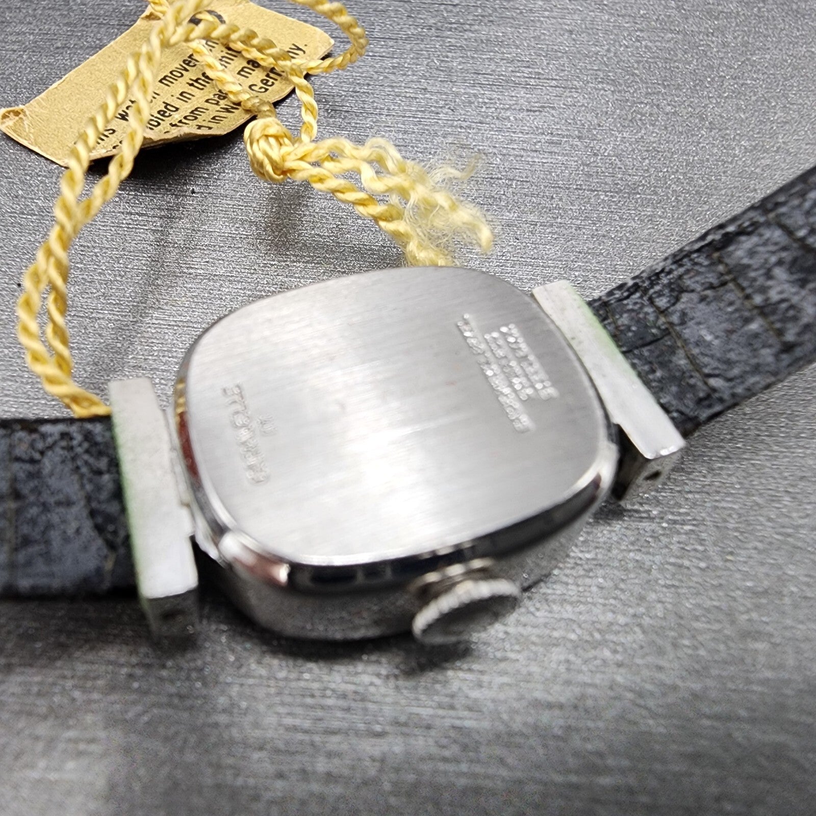 This watch is new old stock from a jewelry store and has a new battery and works. The watch may have light scratches from storeage because it is over 20 years old. Please refer to pictures