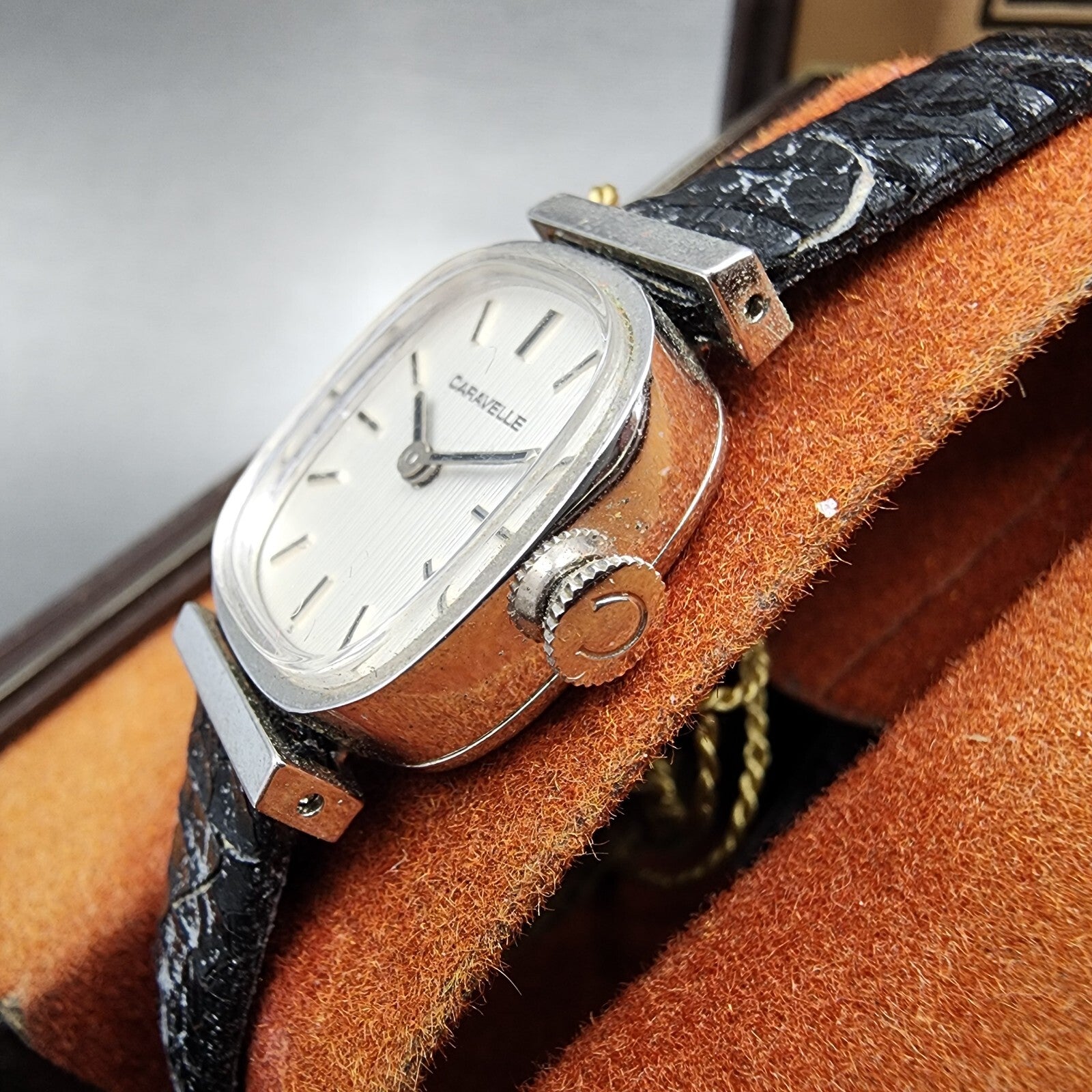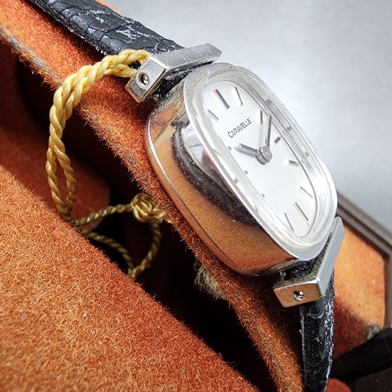 Bulova Caravelle Watch Women 17mm Silver Dial Silver Tone Manual Wind Runs NOS