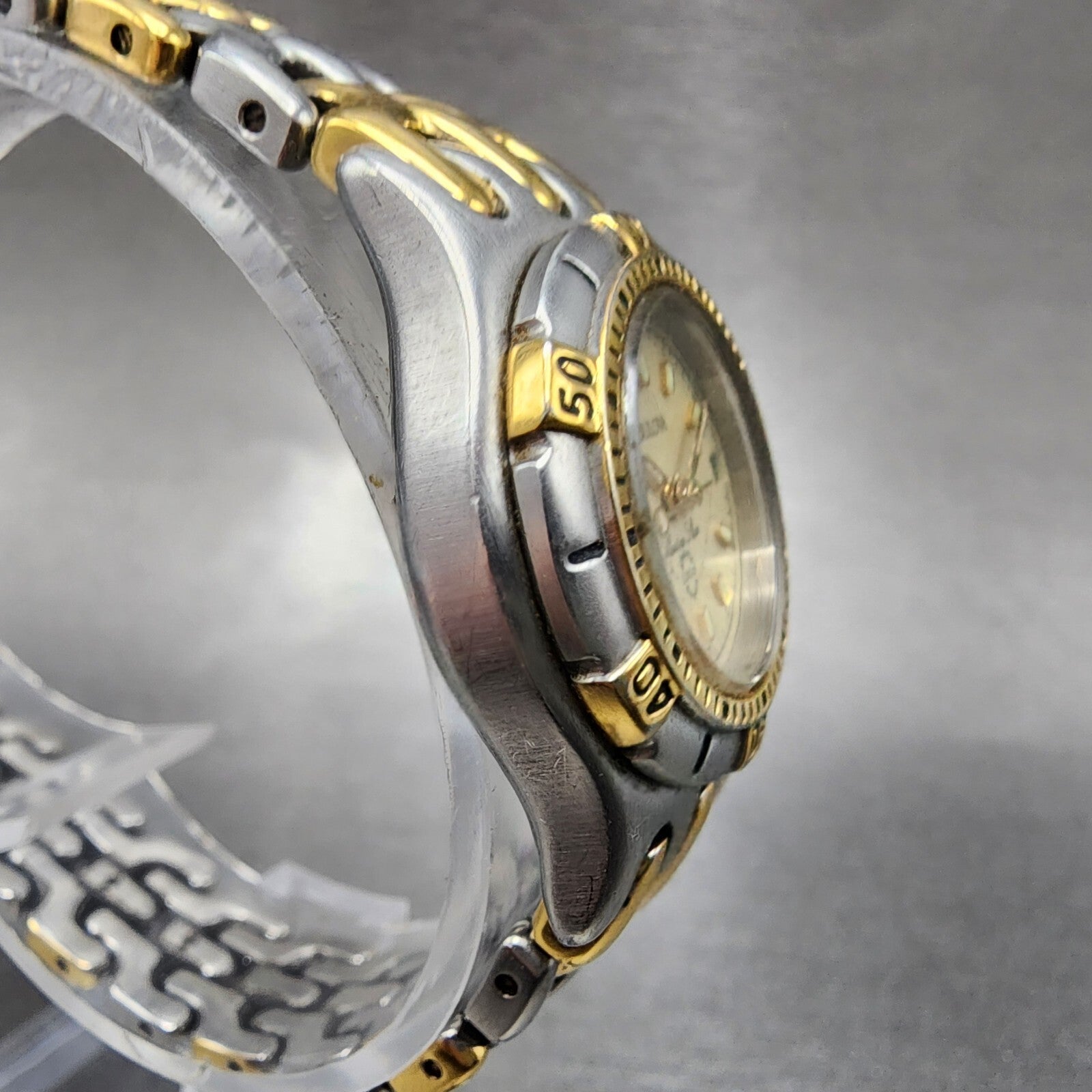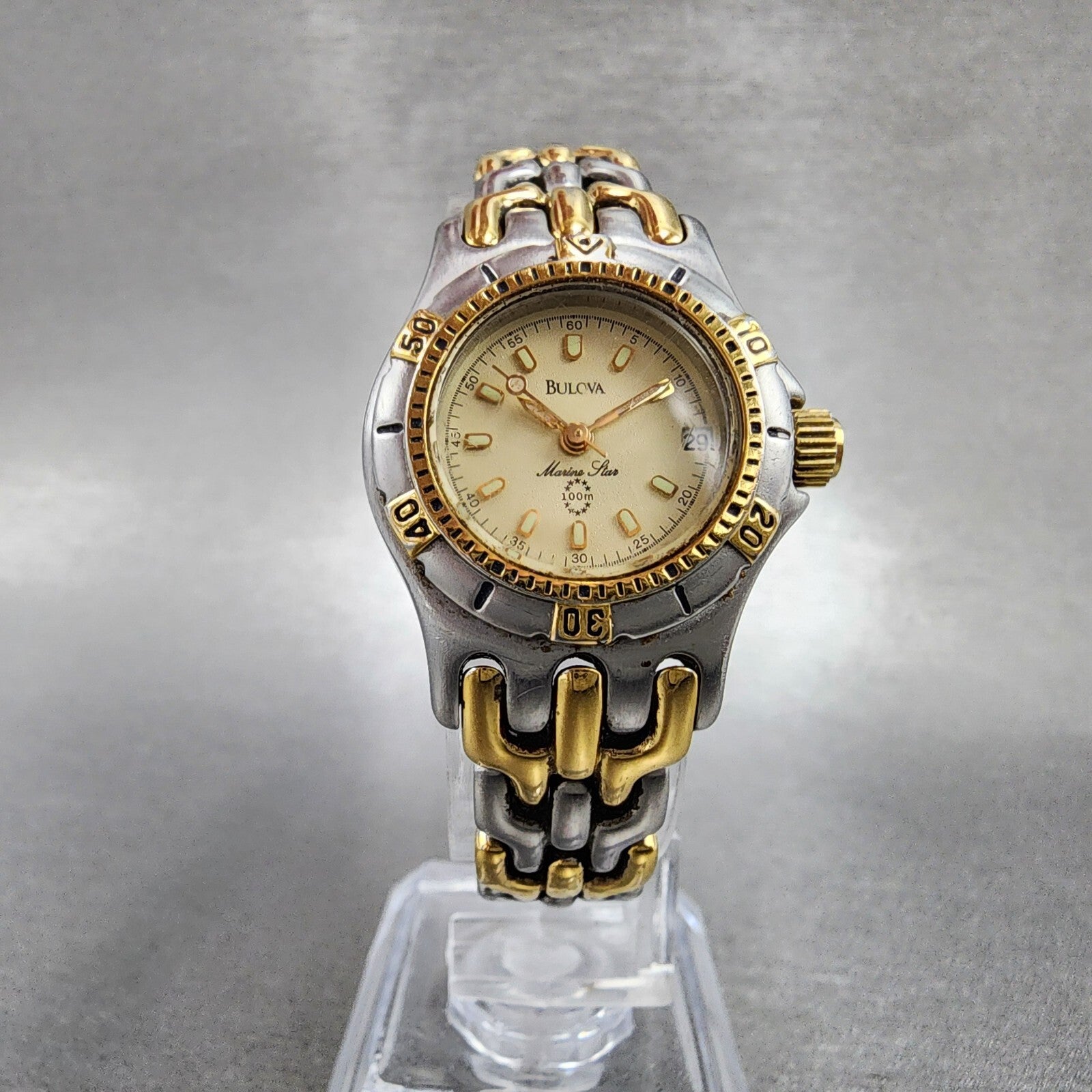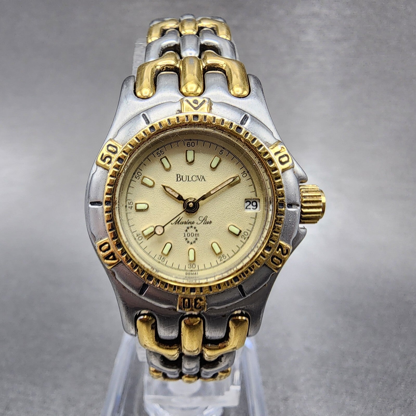 Bulova Marine Star Dive Watch Men 25mm Cream Dial Two Tone Date Round New batt