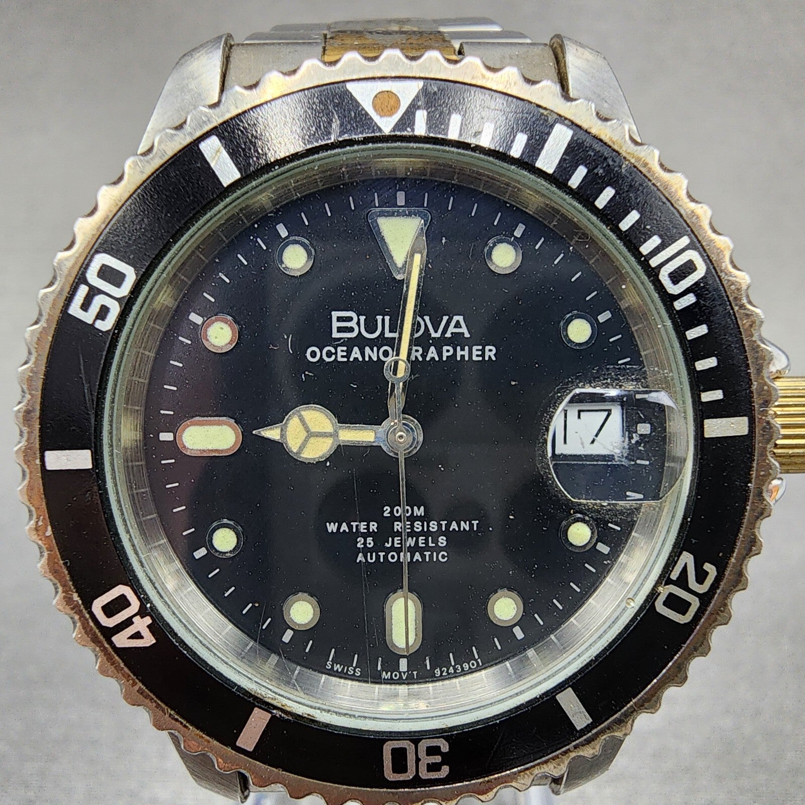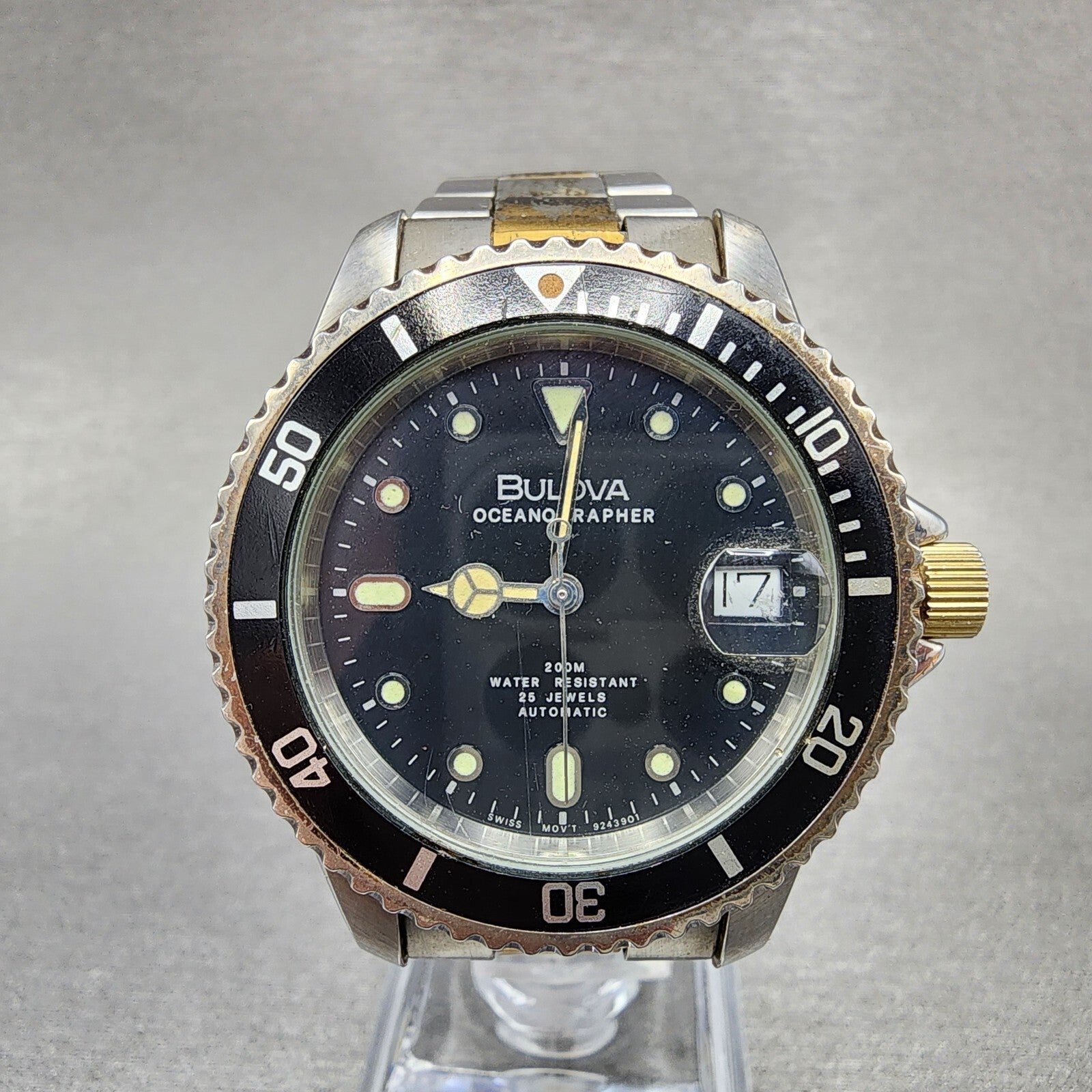 Bulova Oceanograph Automatic Watch Men 37mm Black Dial Two Tone 9243901 ETA PART