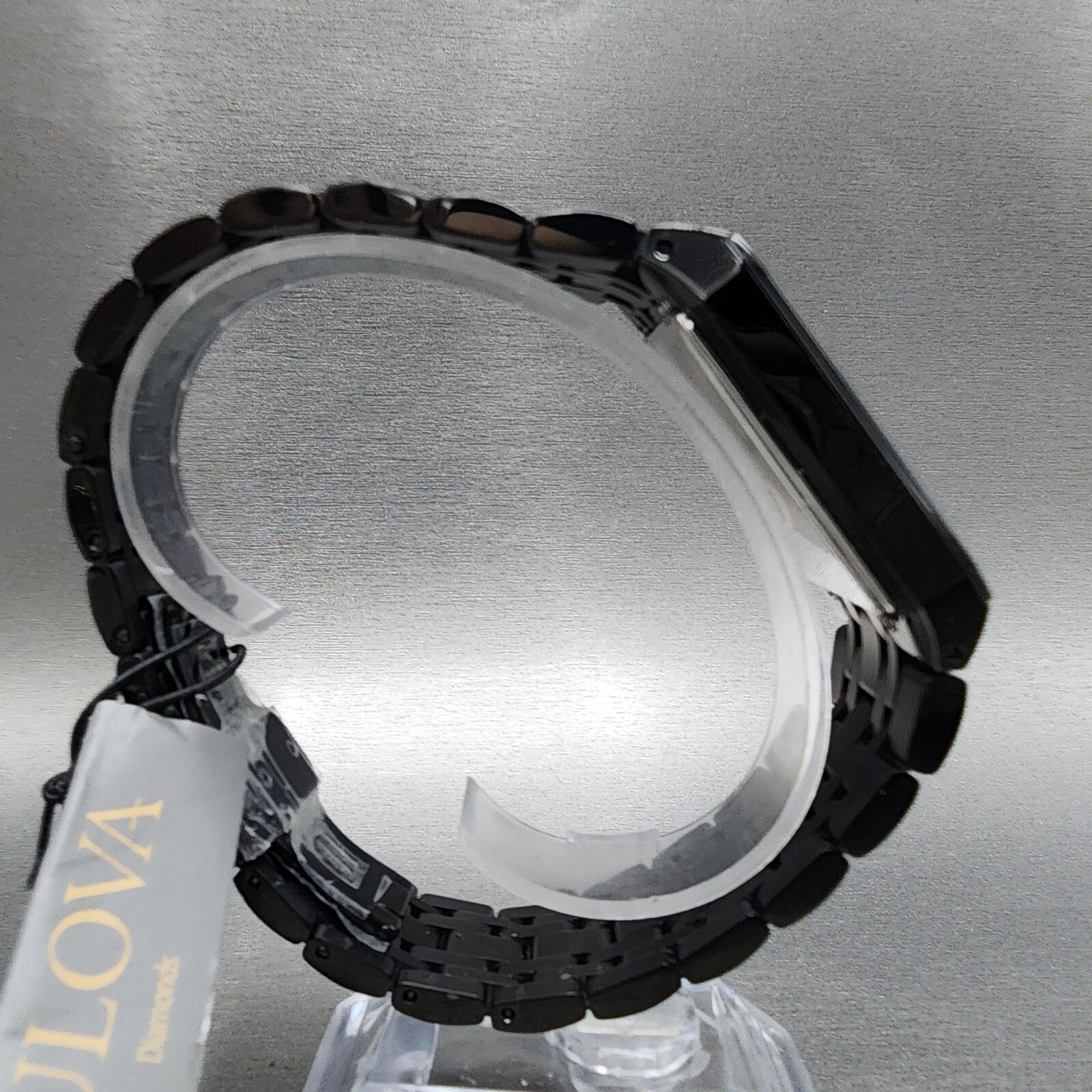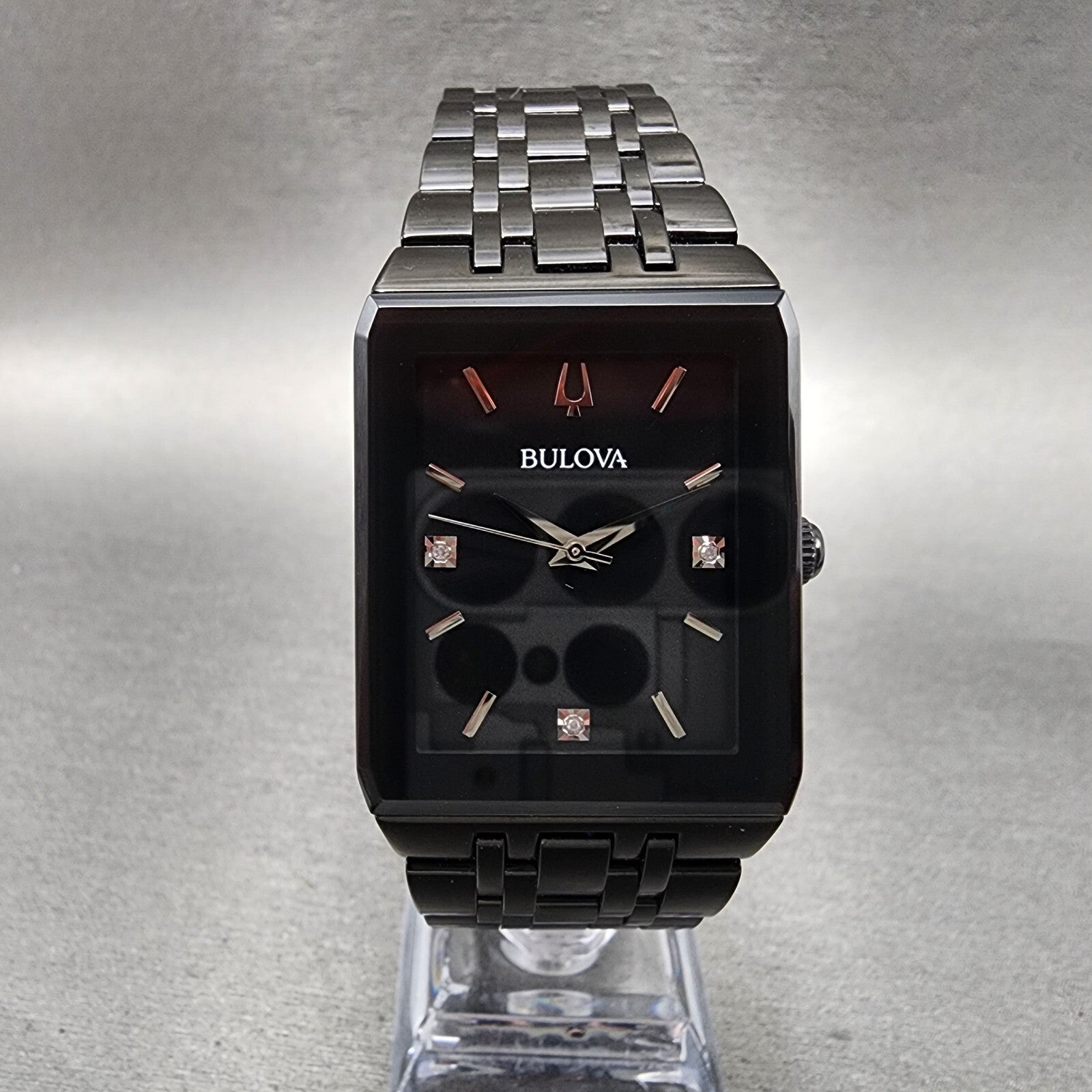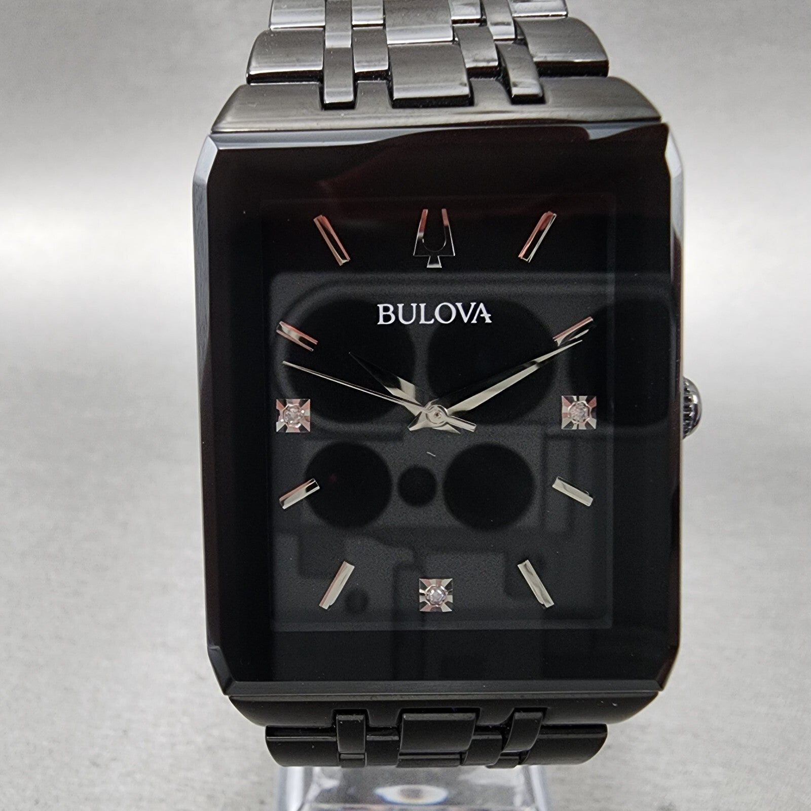 Bulova Quadra Watch Men 31mm Black Dial Black Tone Octagon 98D164 Bracelet
