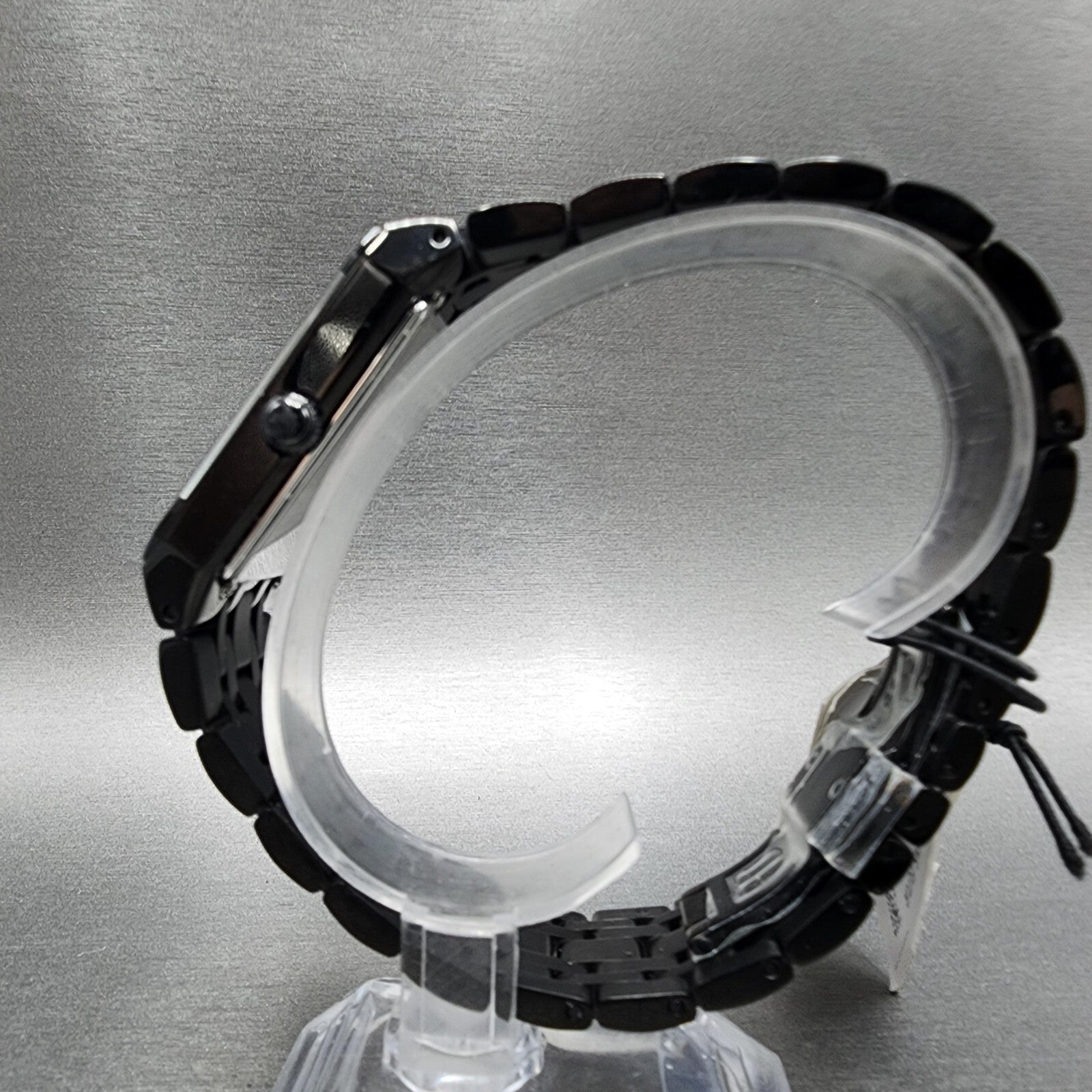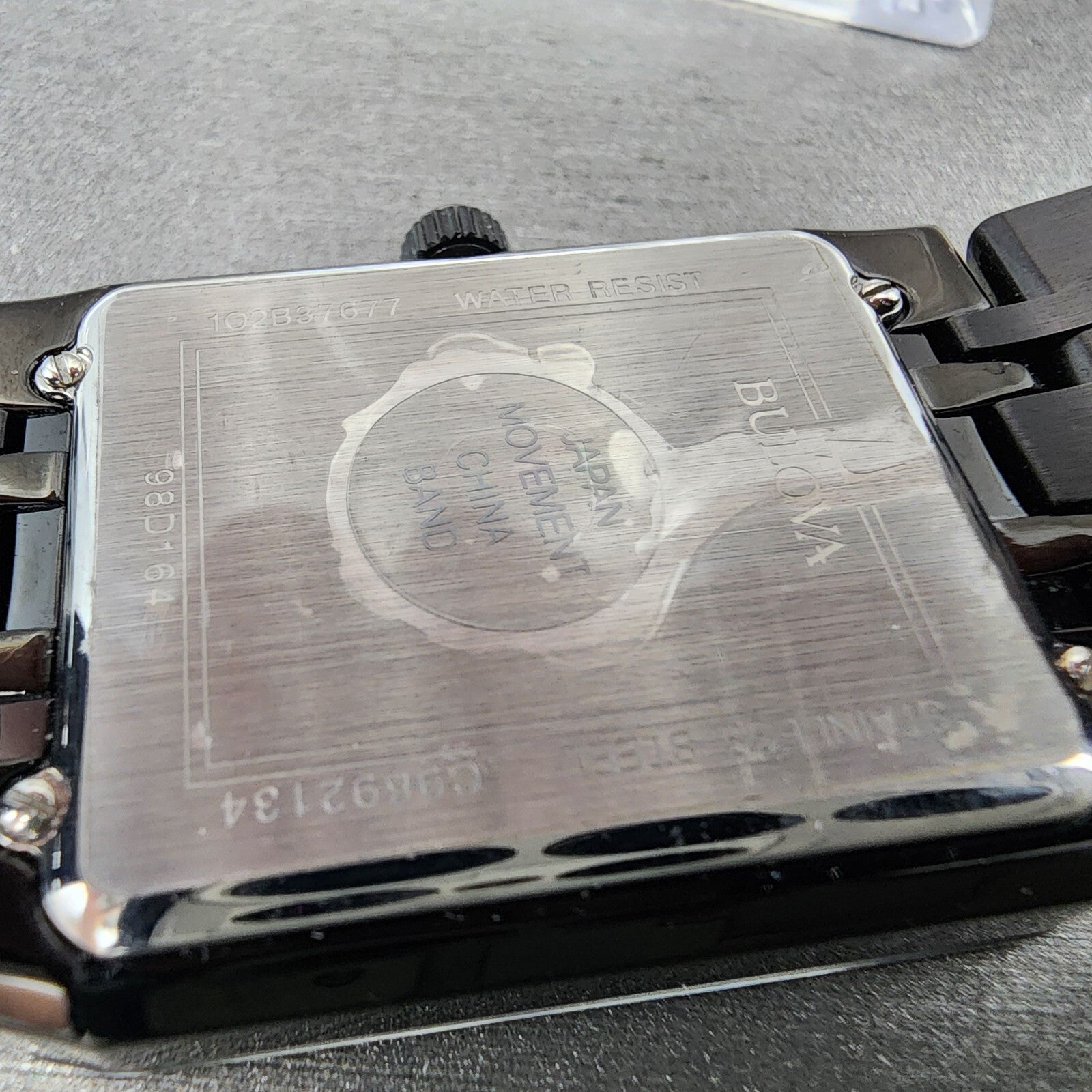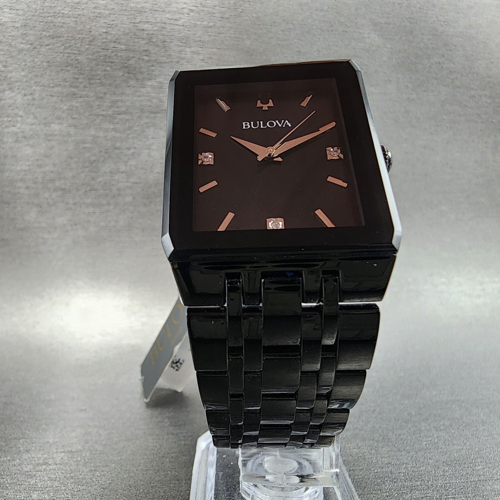 Bulova Quadra Watch Men 31mm Black Dial Black Tone Octagon 98D164 Bracelet