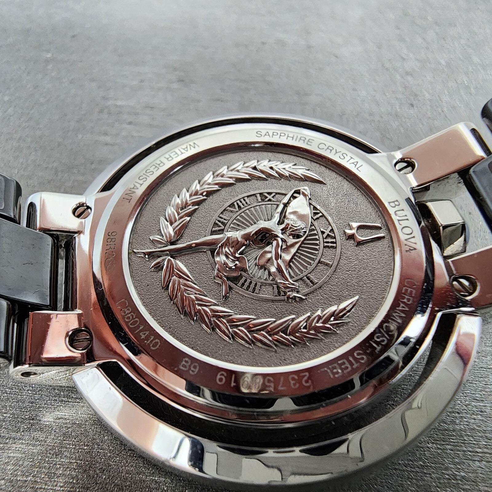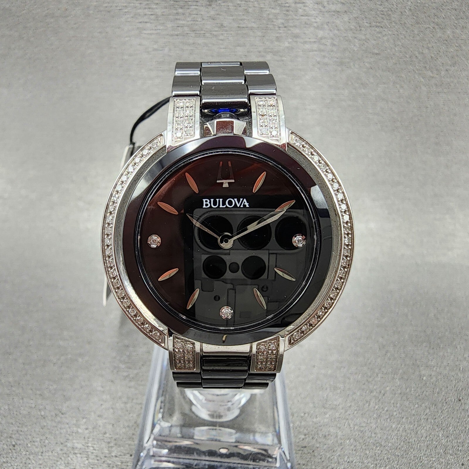 Bulova Rubaiyat Watch Women 35mm Black Dial Black Ceramic Diamond Bezel 98R266