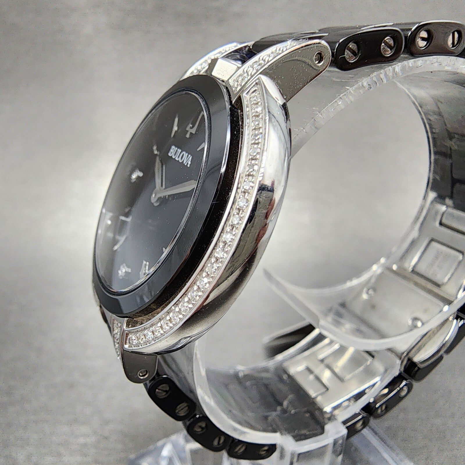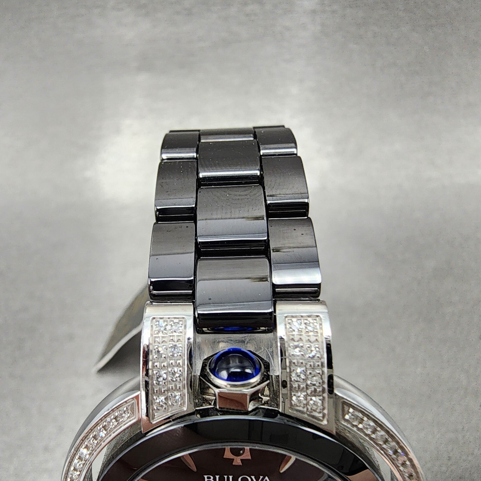 Bulova Rubaiyat Watch Women 35mm Black Dial Black Ceramic Diamond Bezel 98R266 B
