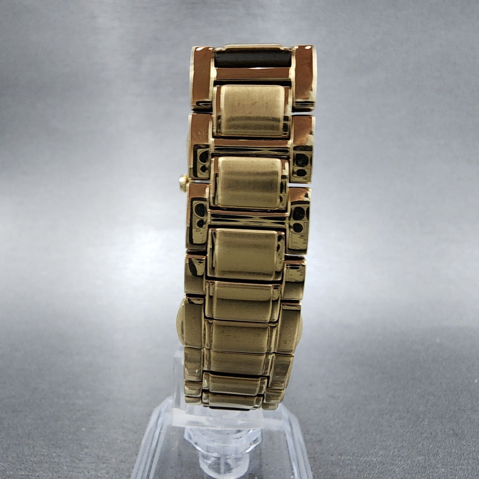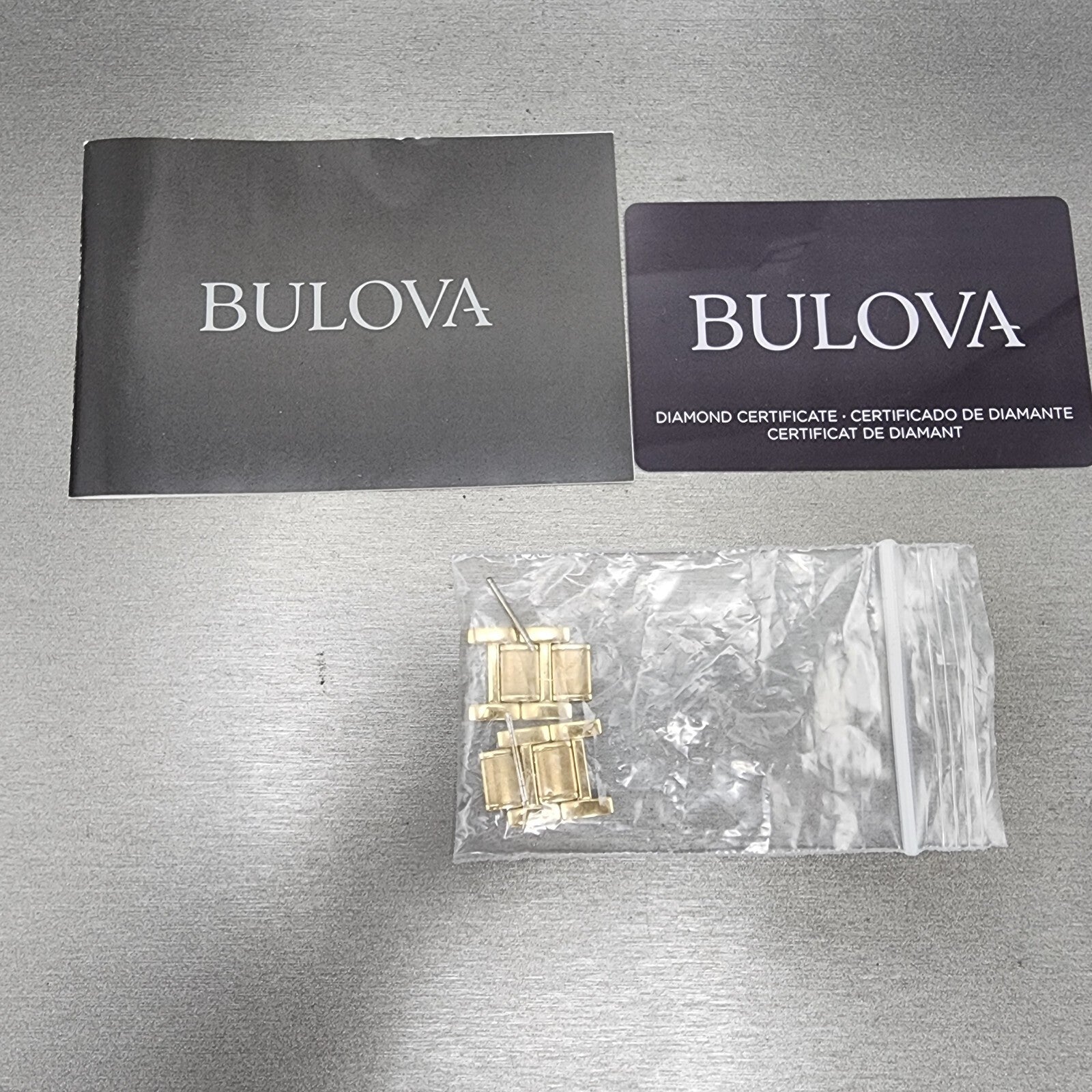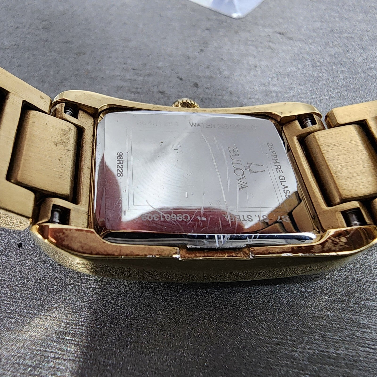 Bulova Sutton Tank Watch Women Black Dial Gold Tone Diamond Bezel New Battery