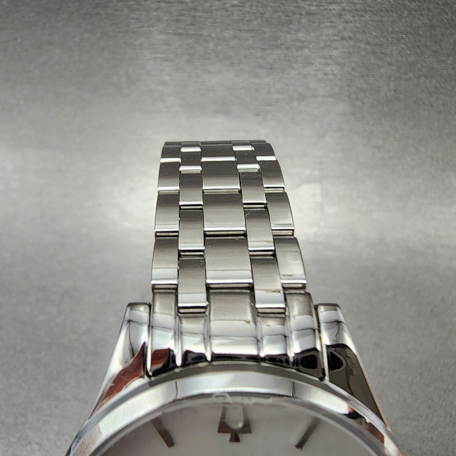 This watch is new but has some light blemish's or scratches on the case and bracelet from handling. please refer to pictures. The watch does not come with a box or any paperwork.