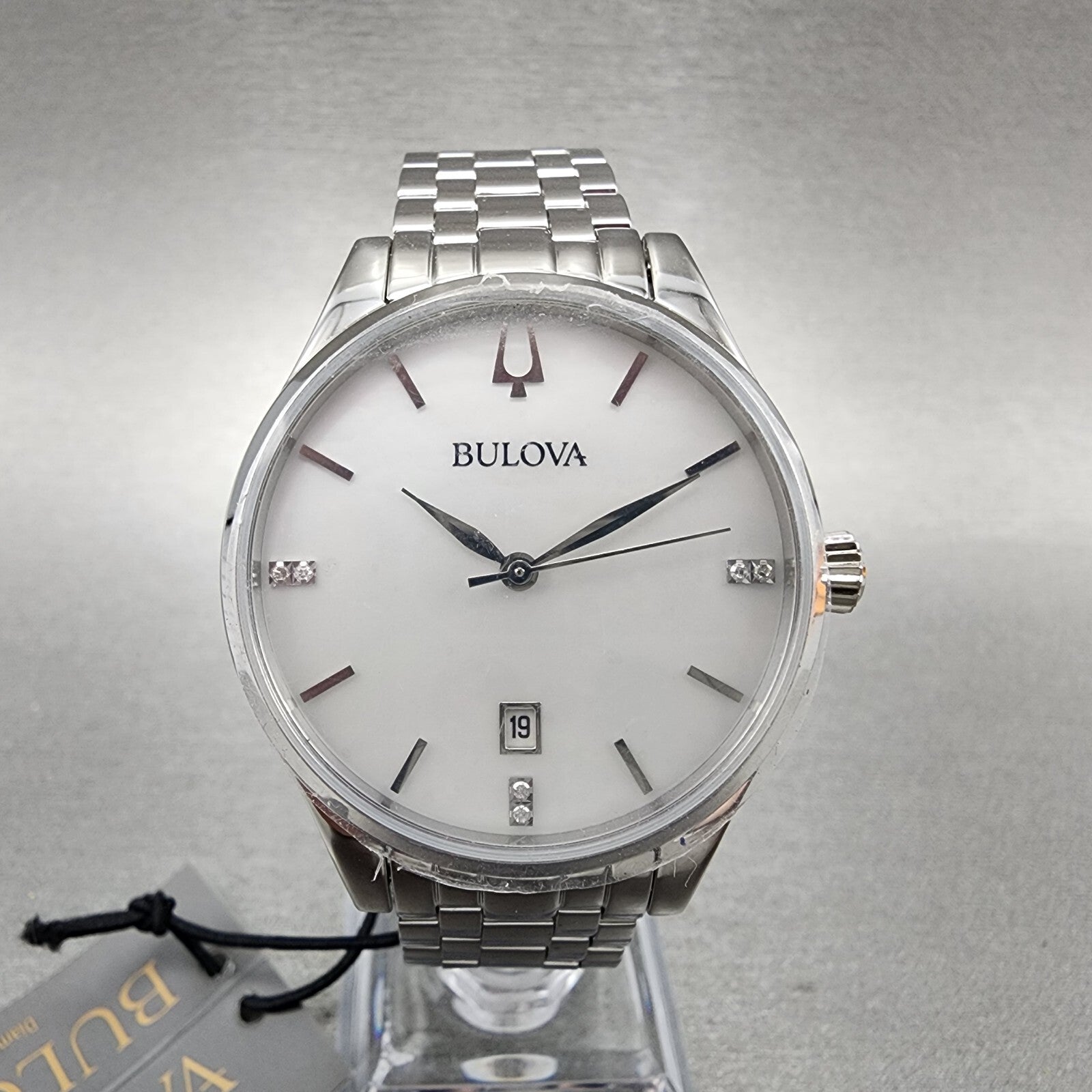 Bulova Sutton Watch Women 36mm Mop Dial Steel Diamonds Date Round 96P220