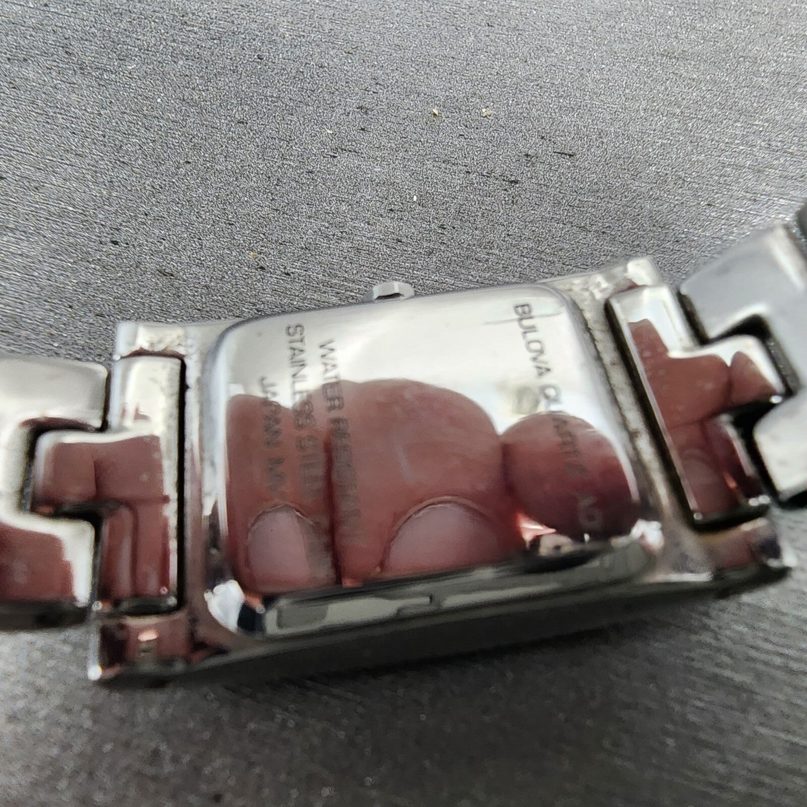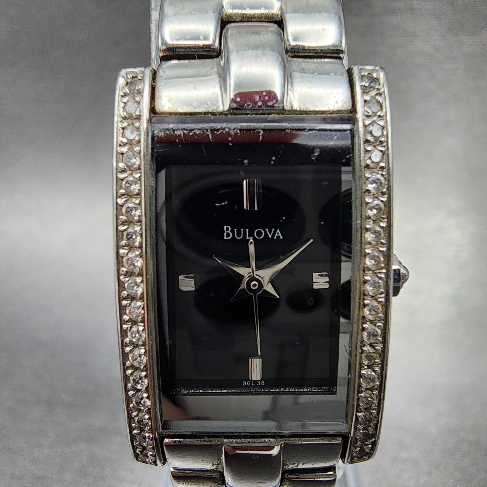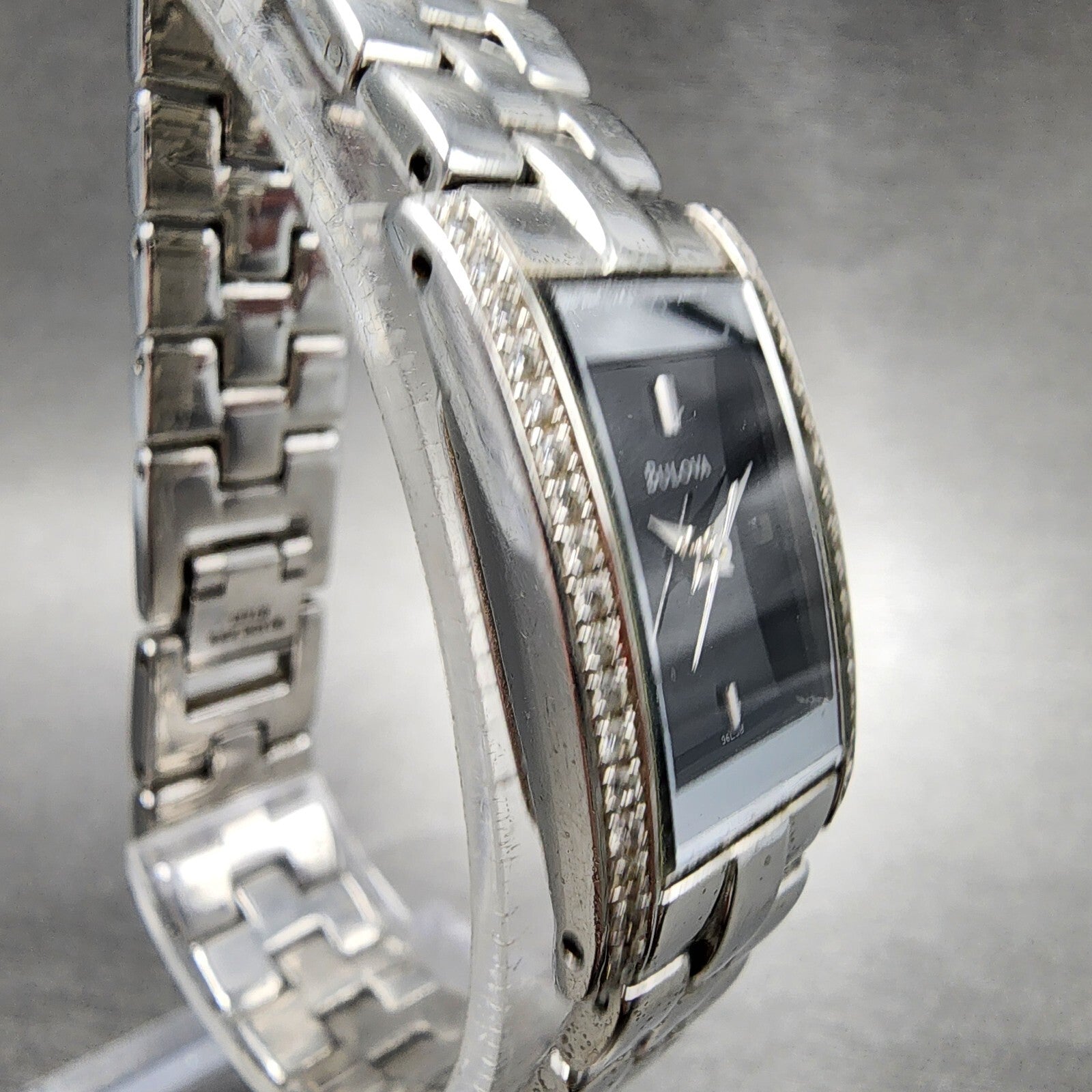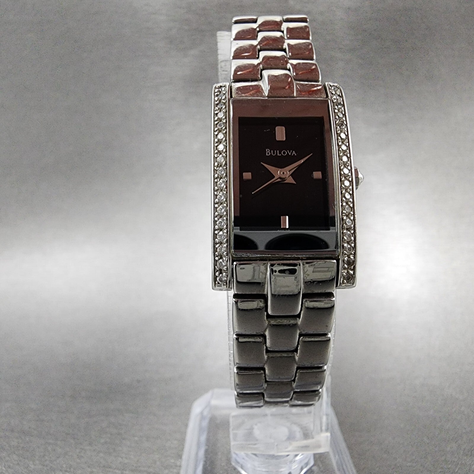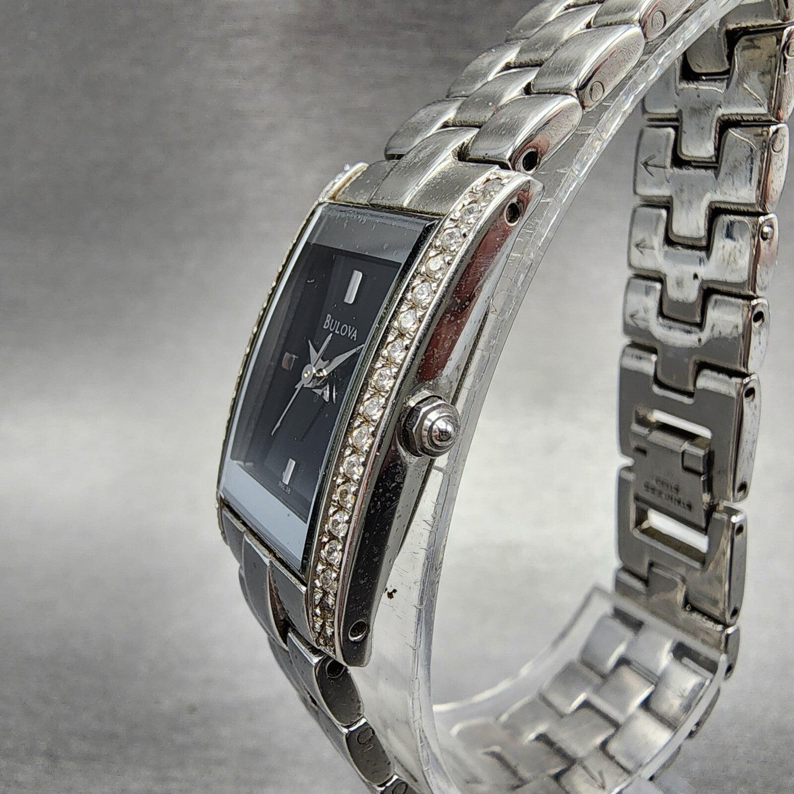 Bulova Tank Watch Women 18mm Black Dial Steel Crystals Rectangle New Battery