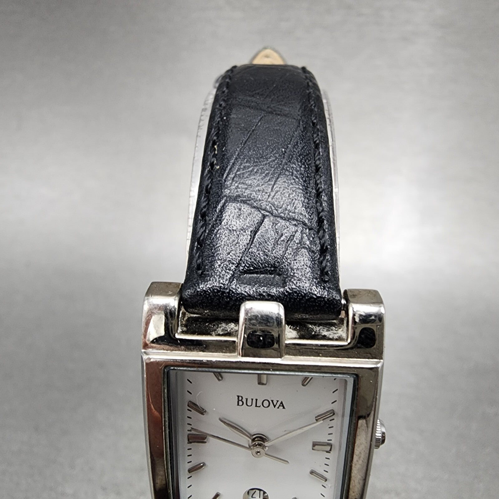 Bulova Tank Watch Women 21mm White Dial Silver Tone Date Rectangle New Battery
