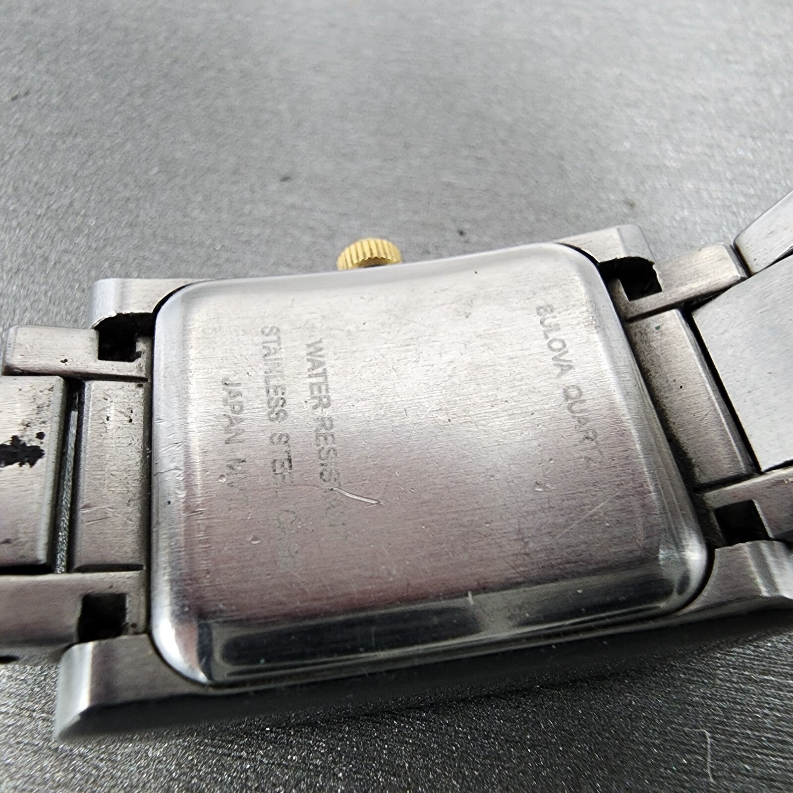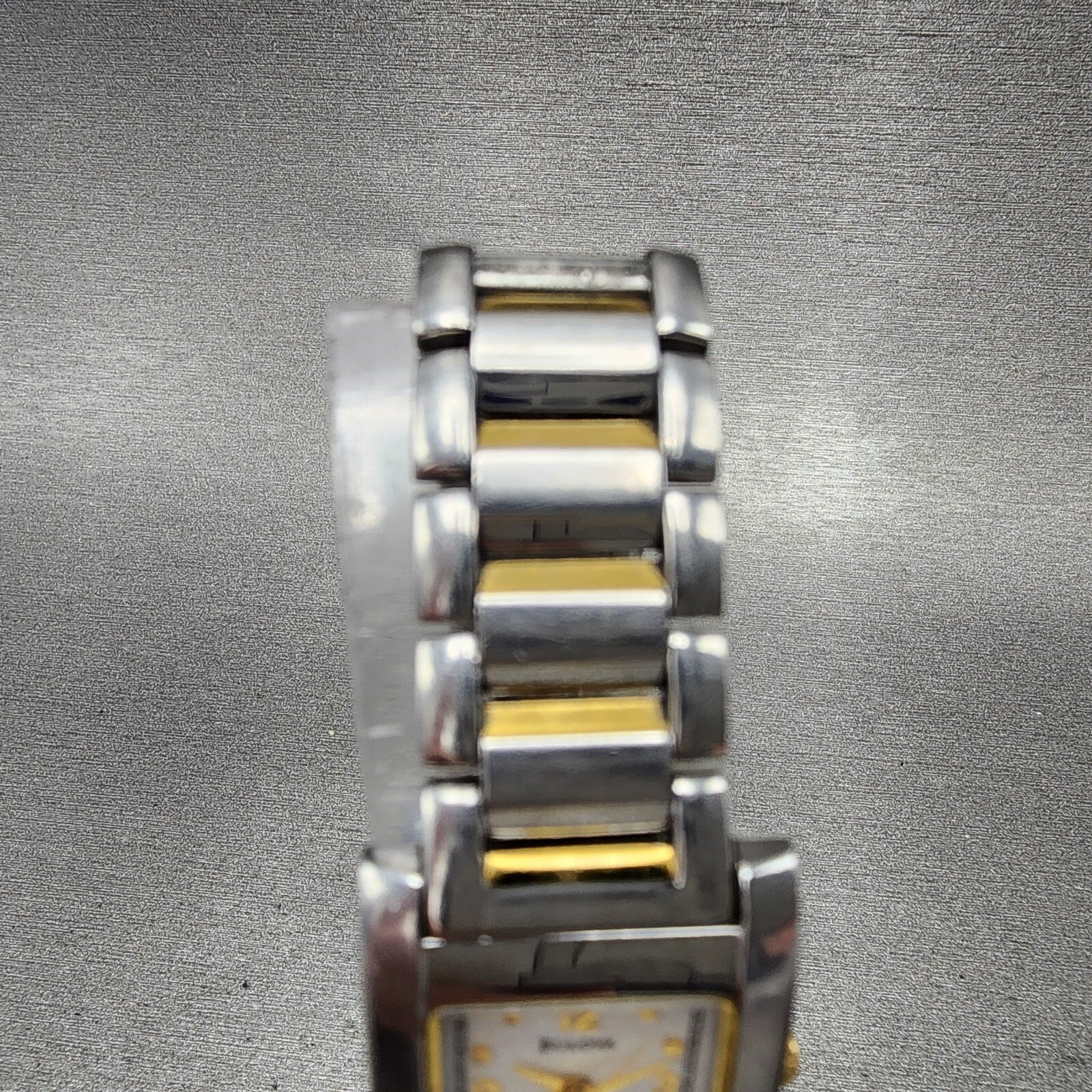 Bulova Tank Watch Women 21mm White Dial Two Tone Rectangle 98T49 New Battery