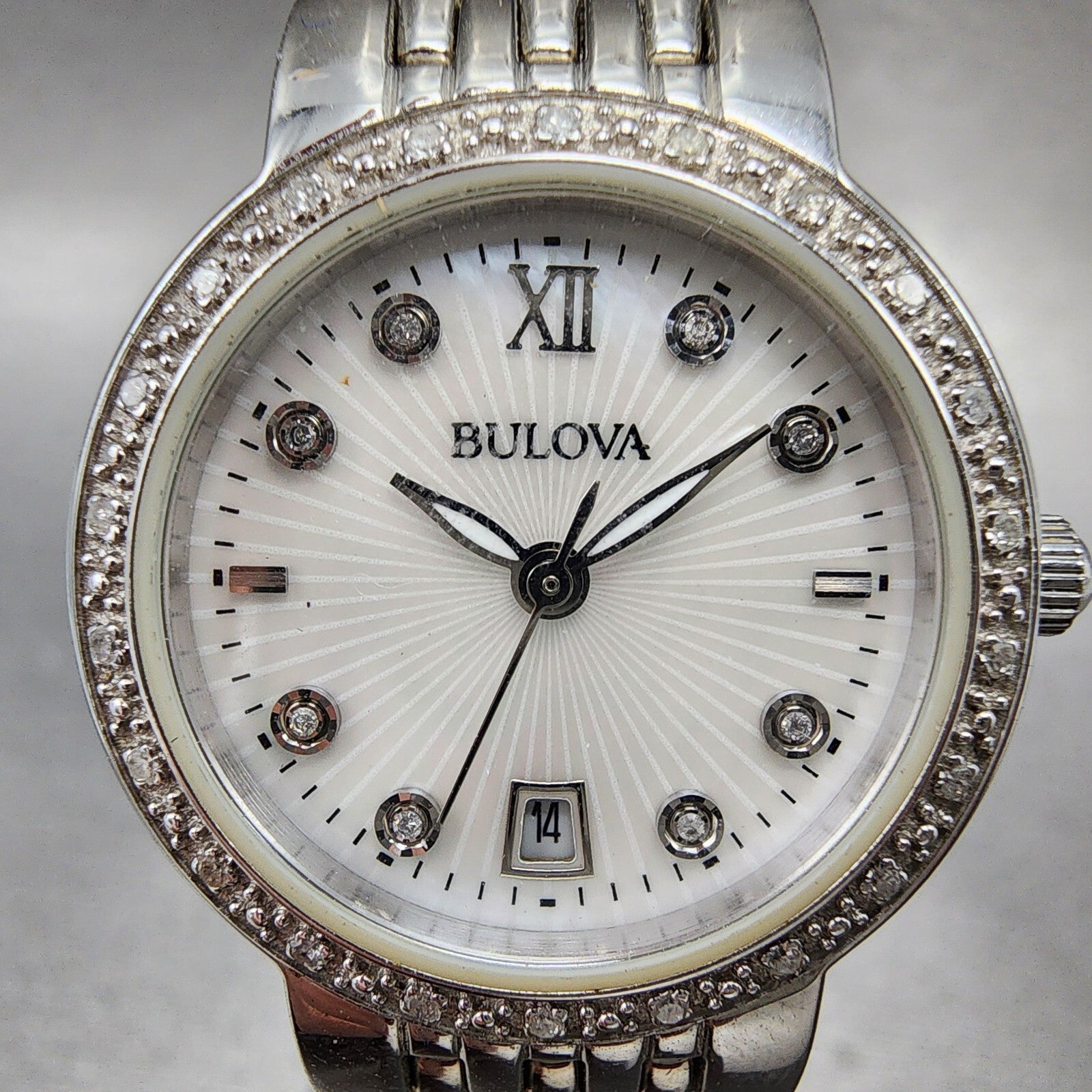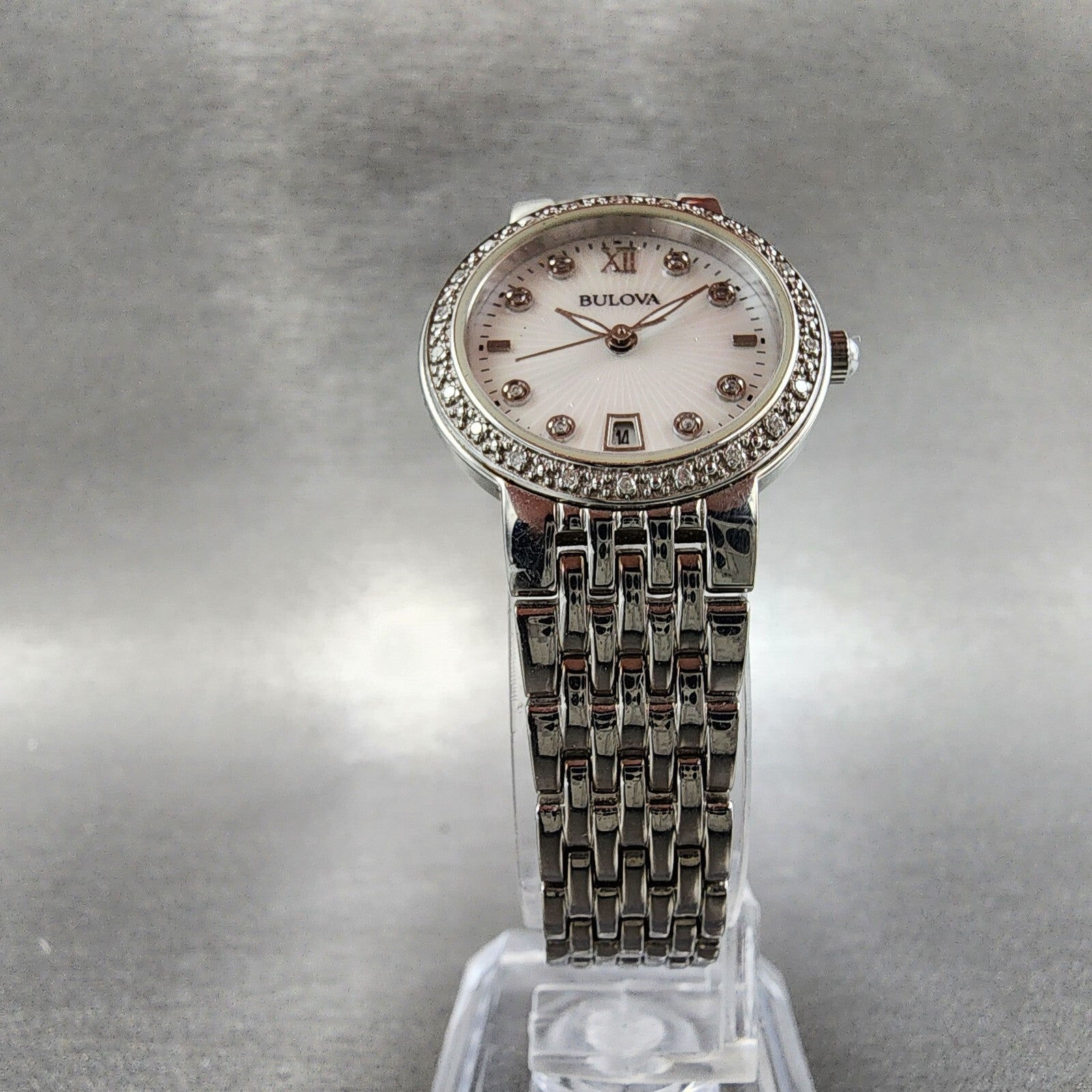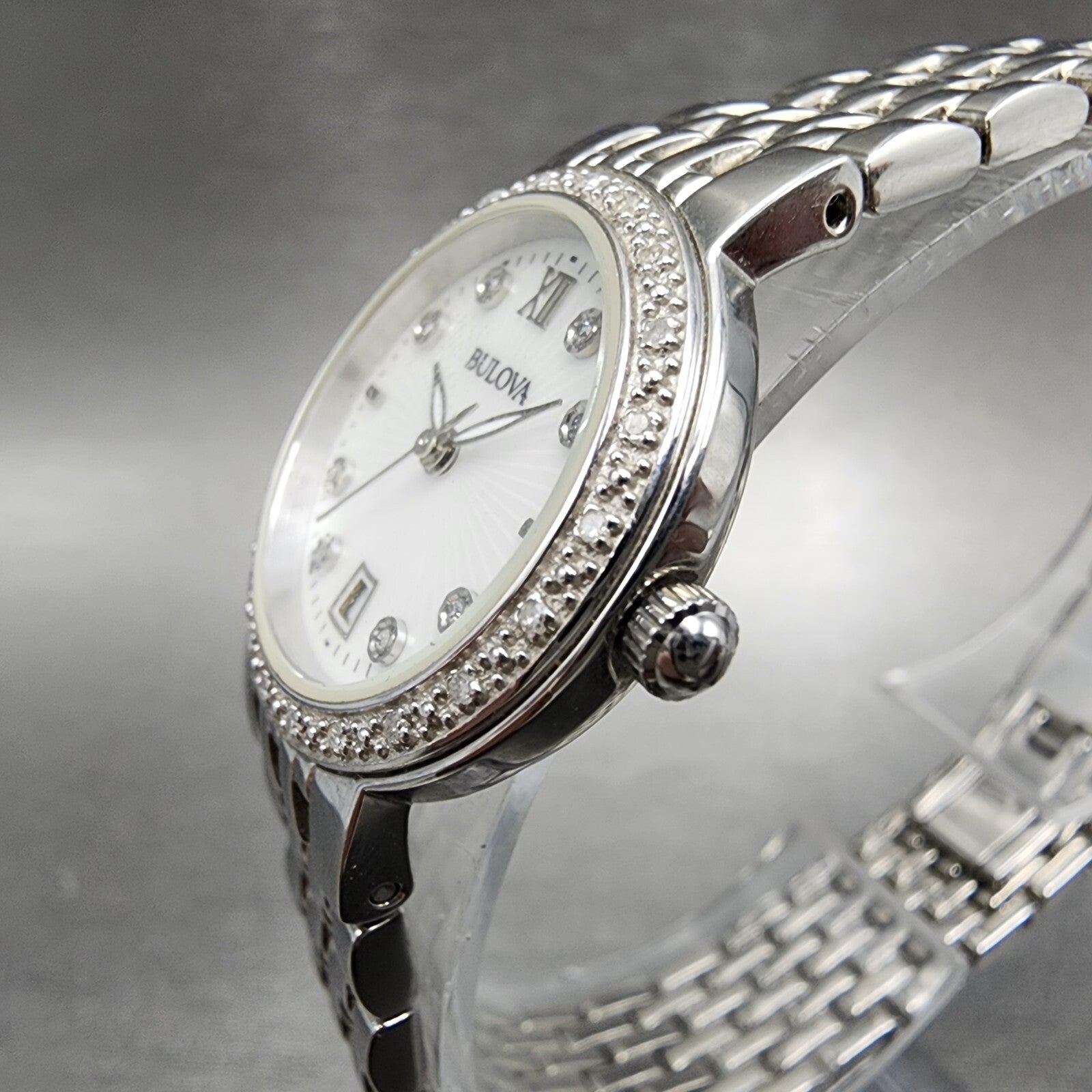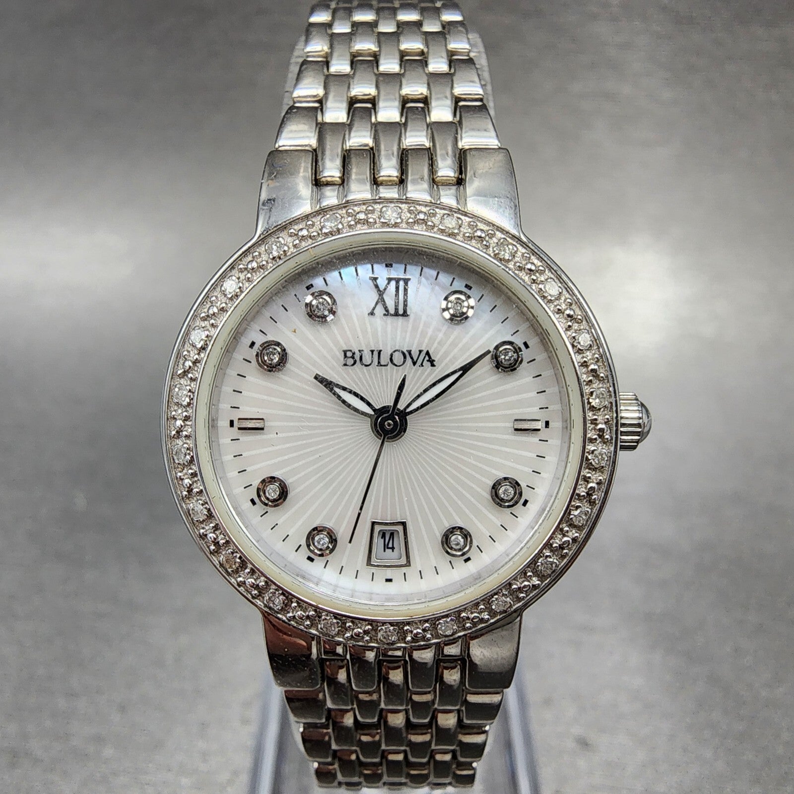 Bulova Watch Women 26mm White Dial Silver Tone Round Date 96r203 New Battery
