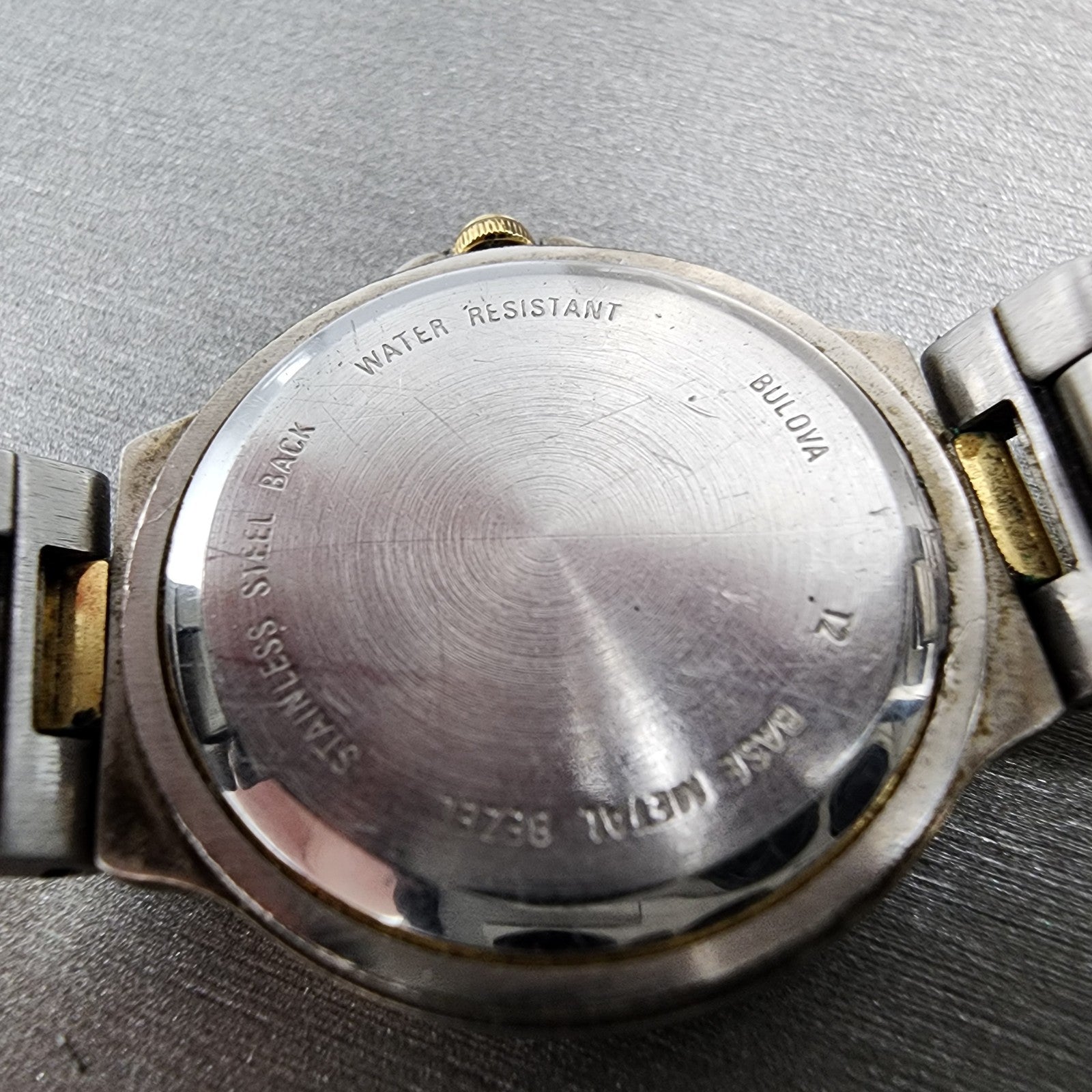 Bulova Watch Women 27mm White Dial Two Tone Date Round 98M14 New Battery