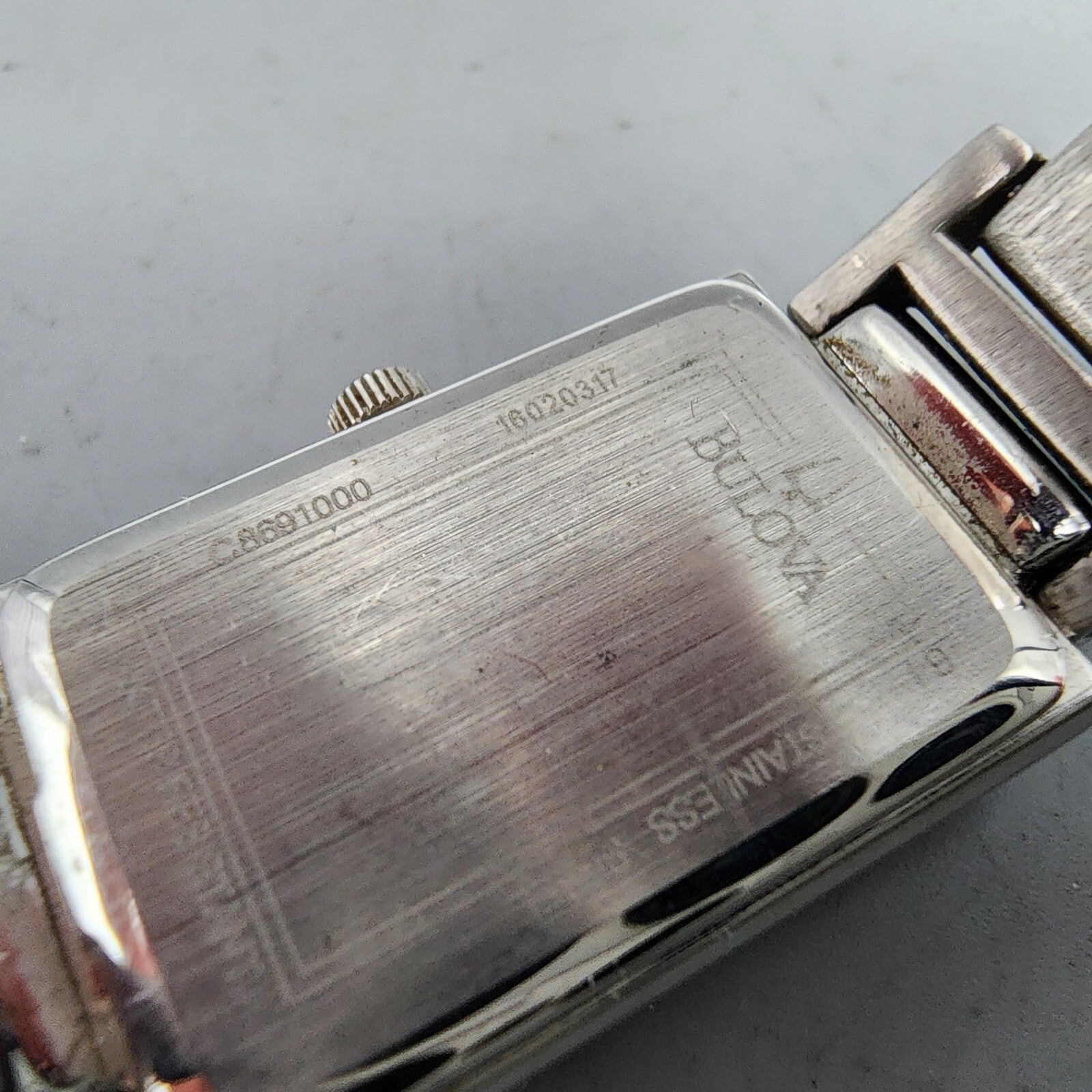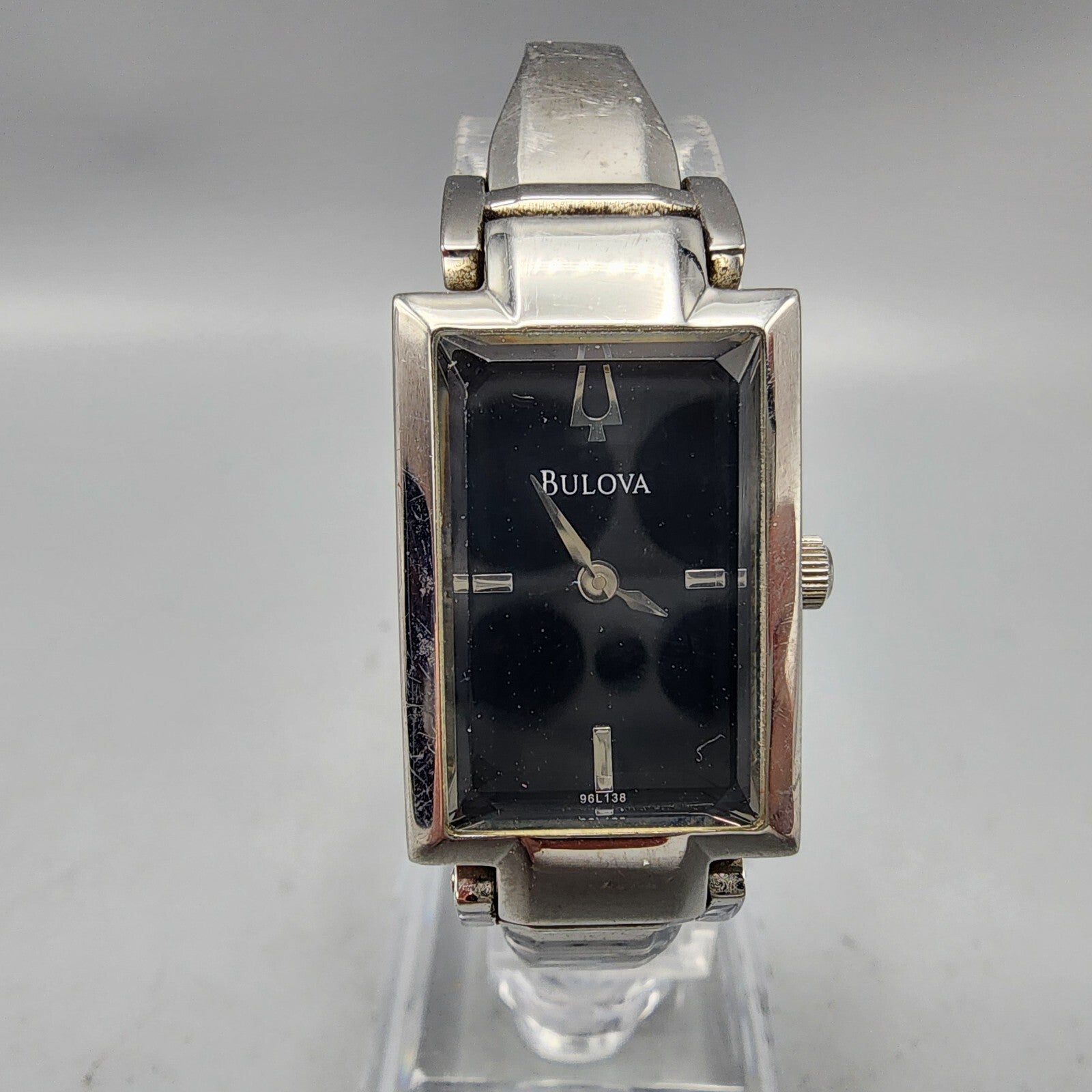 Bulova Watch Women Silver Tone Black Dial 18mm Rectangel 96L138 New Battery