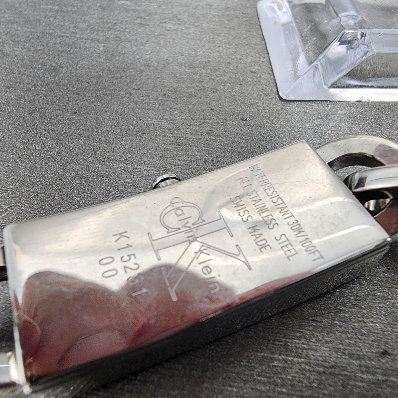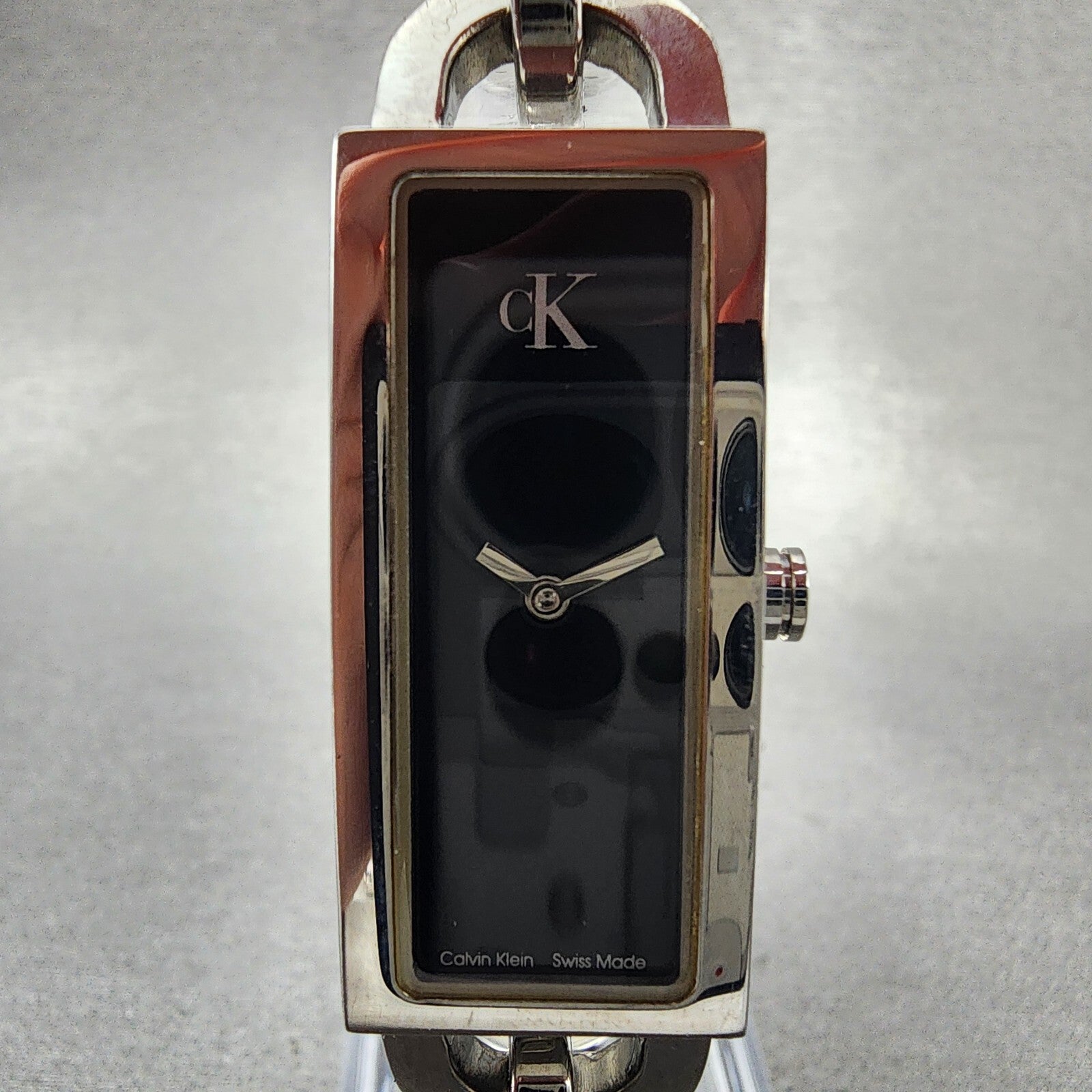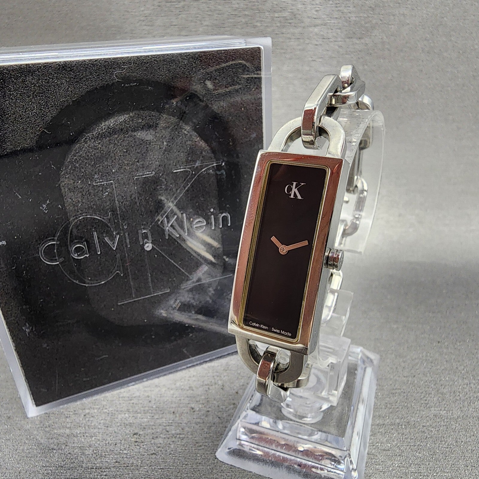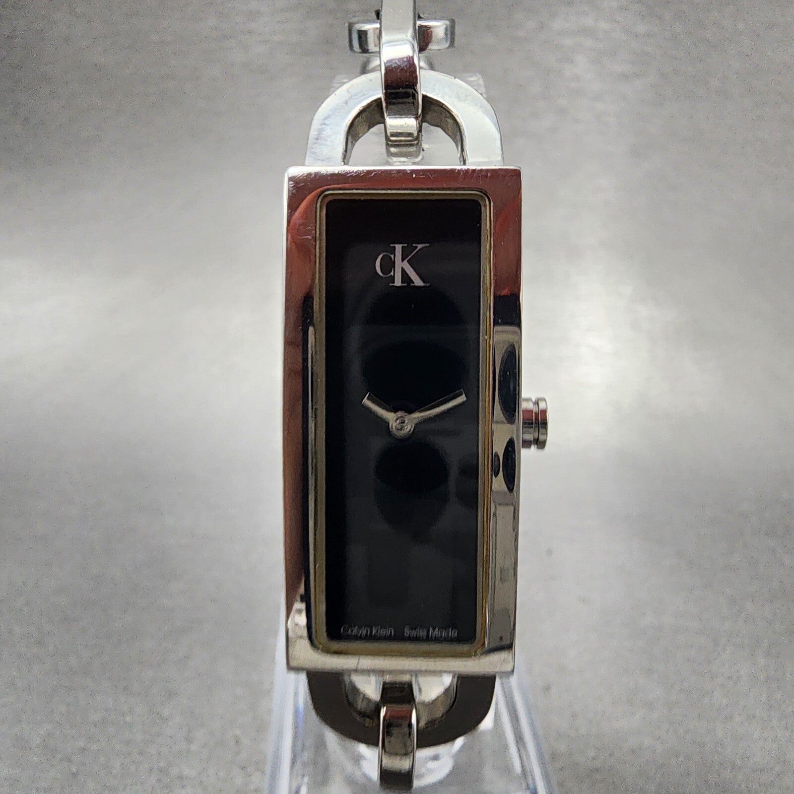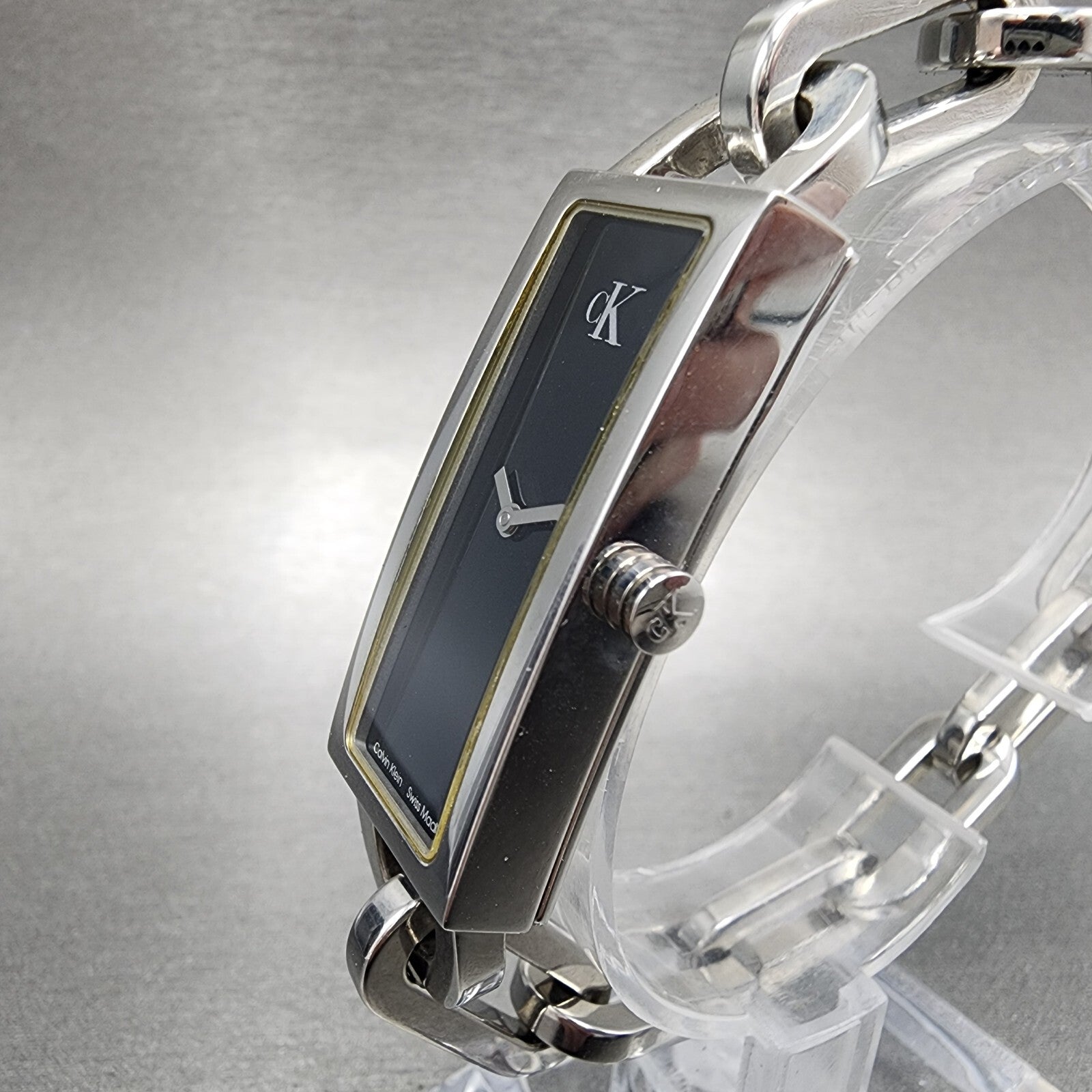 Calvin Klein Tank Watch Women 17mm Black Dial Steel Rectangle K15231 New Battery