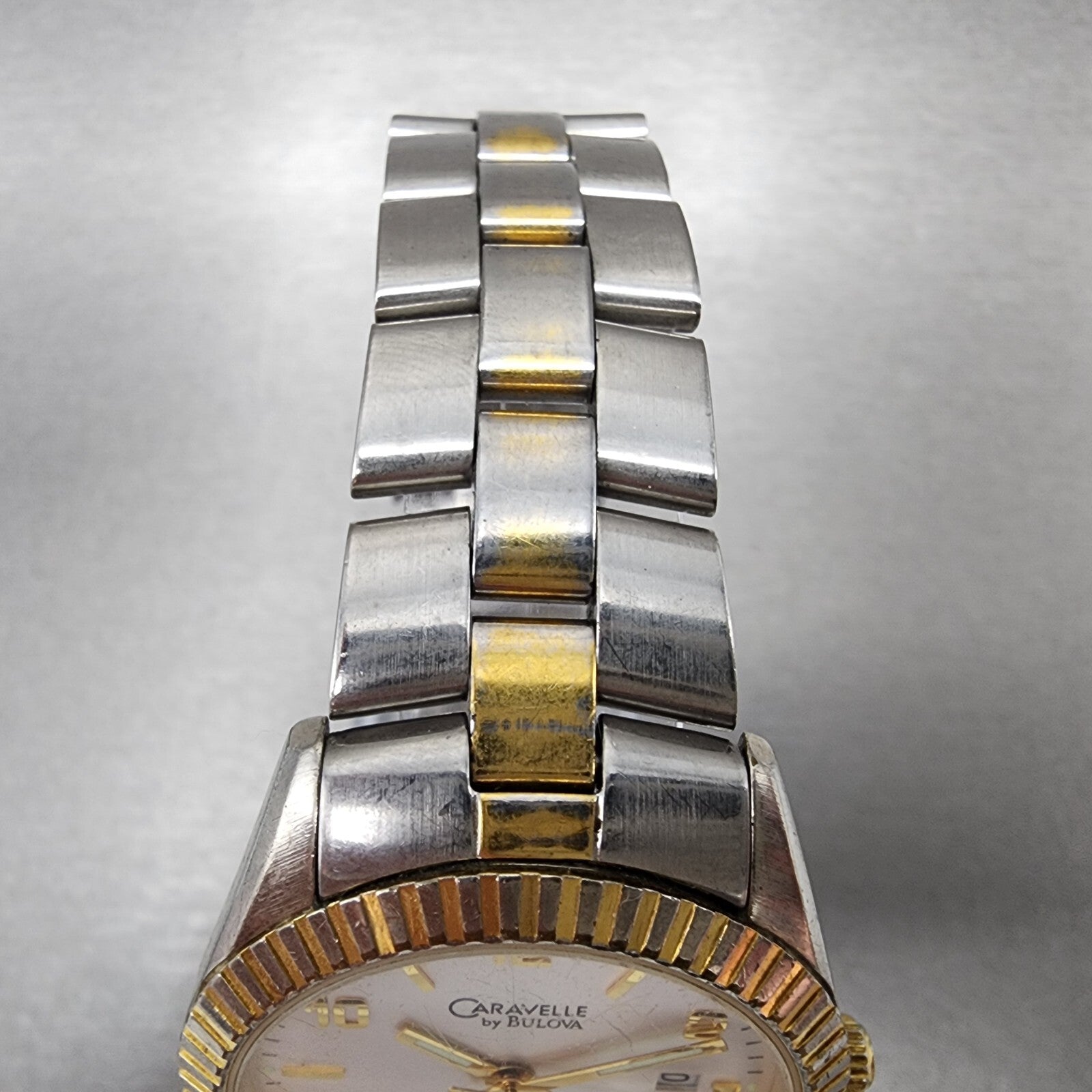 Caravelle Bulova Watch Men 36mm Silver Dial Two Tone Date Round 45B26 New Batt