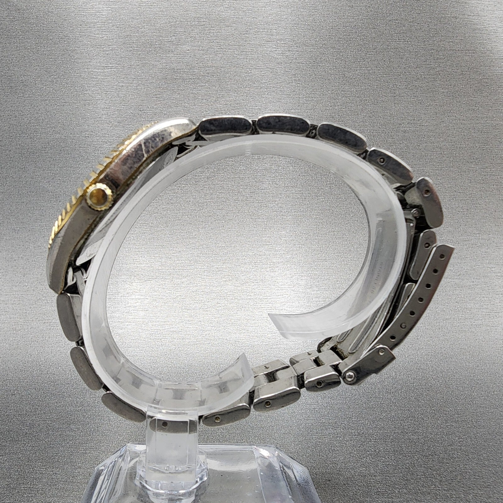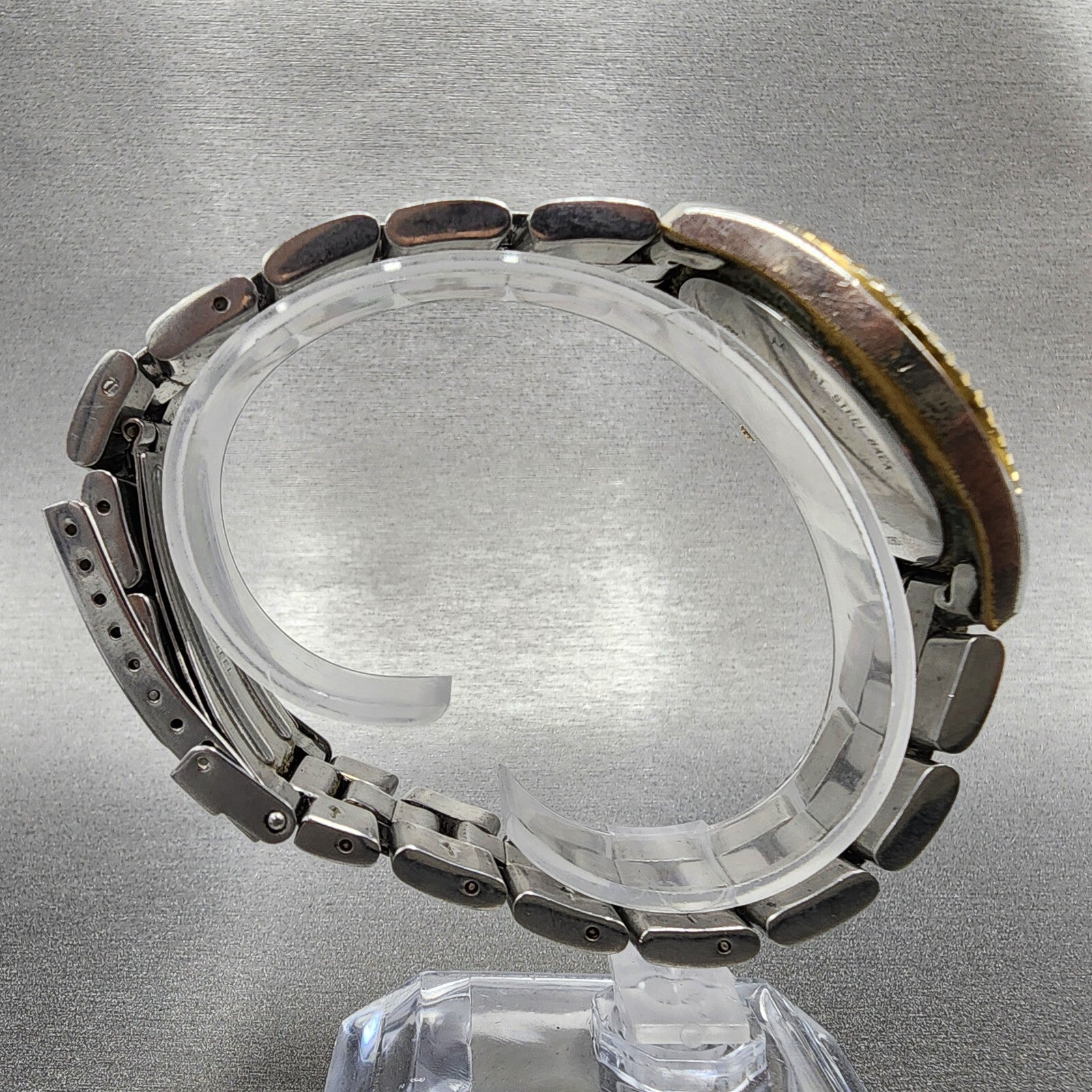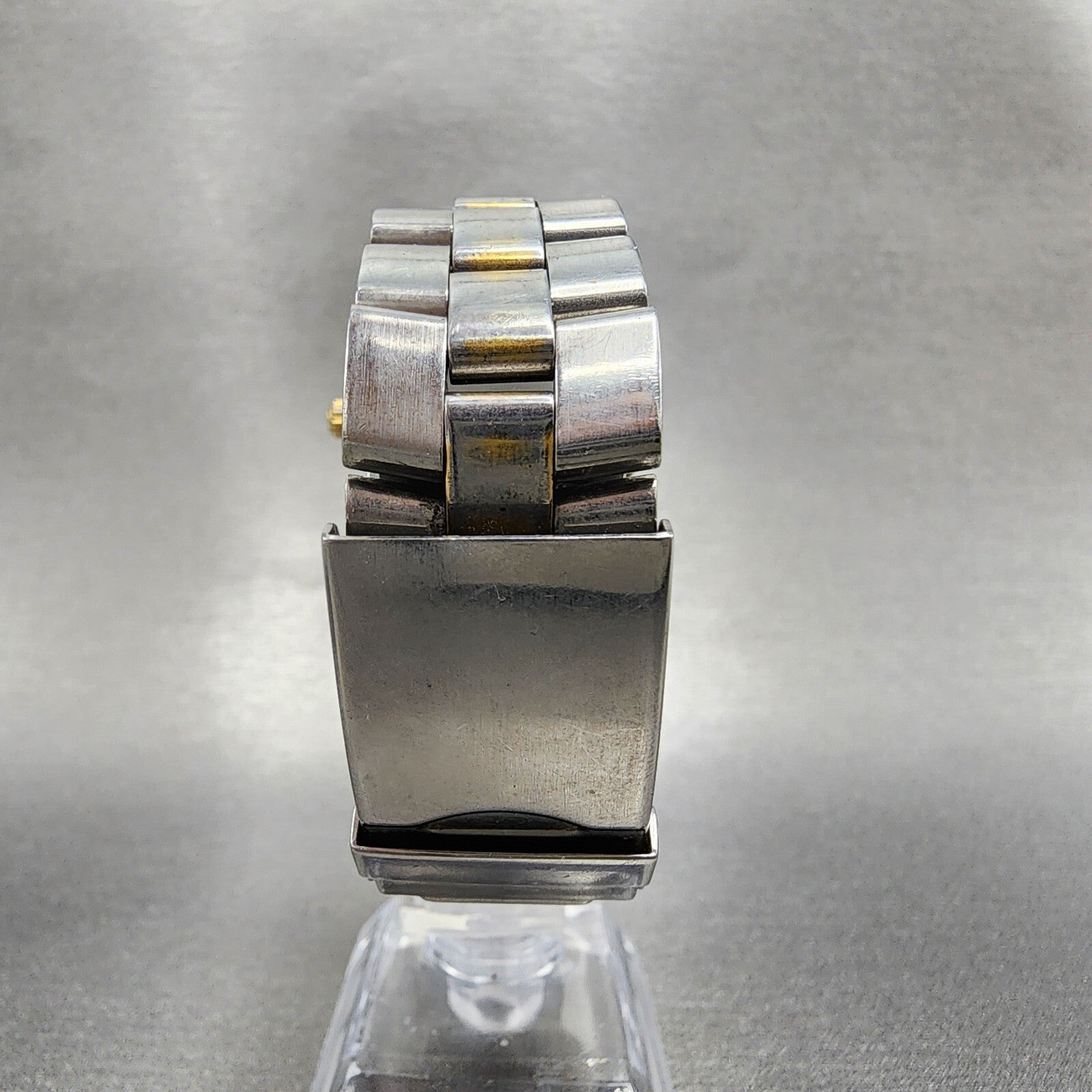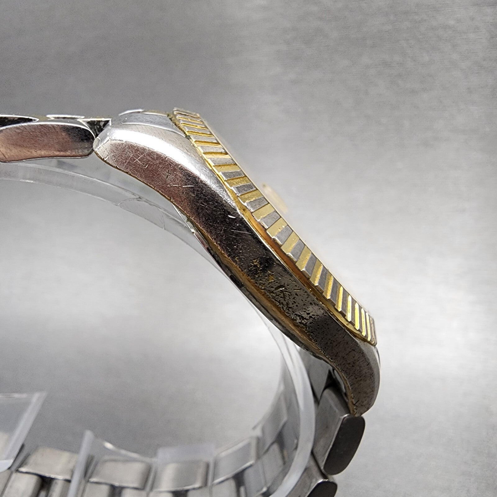 This watch has been used but is in good working condition. There is scratches on the watch. please refer to pictures. has a company logo on the dial.