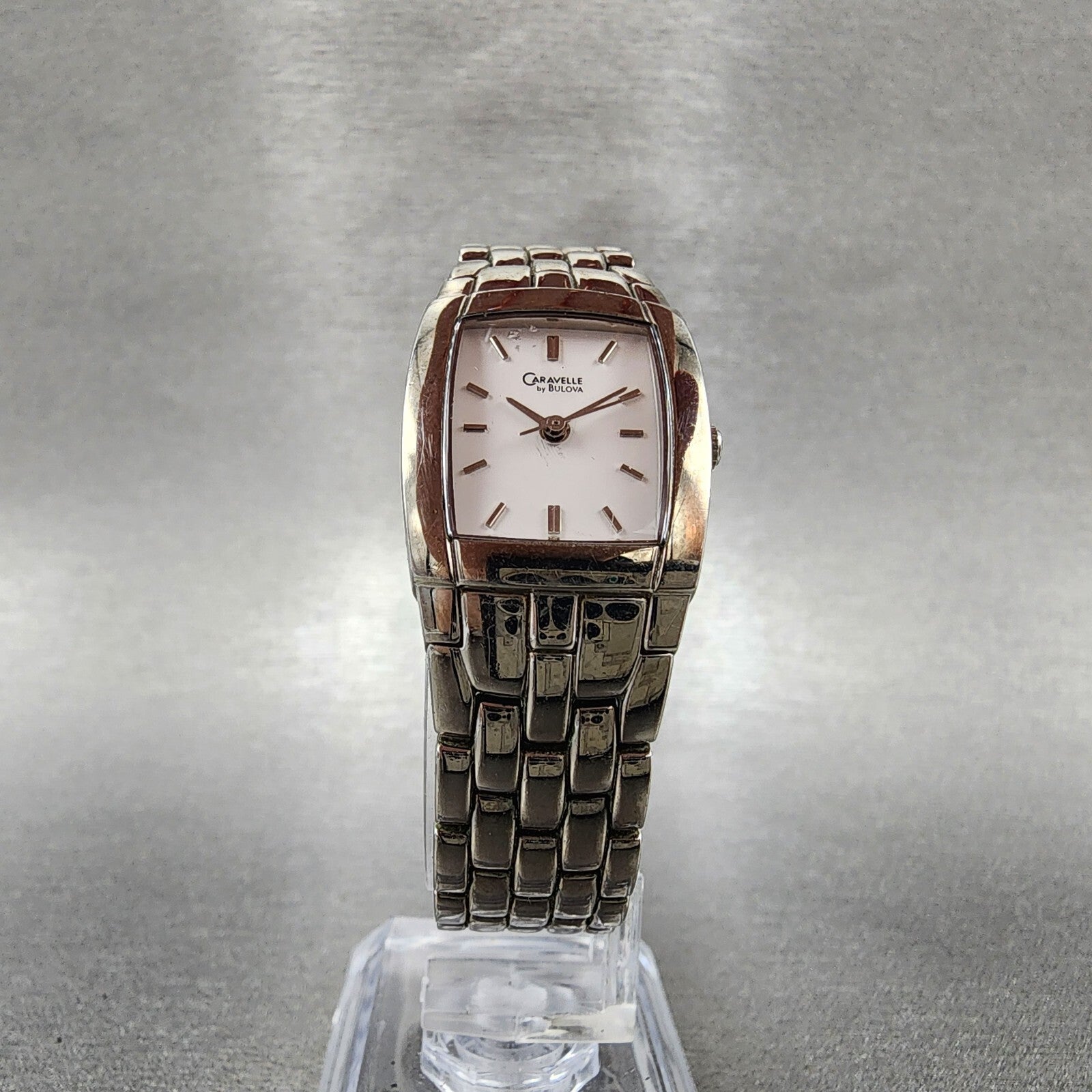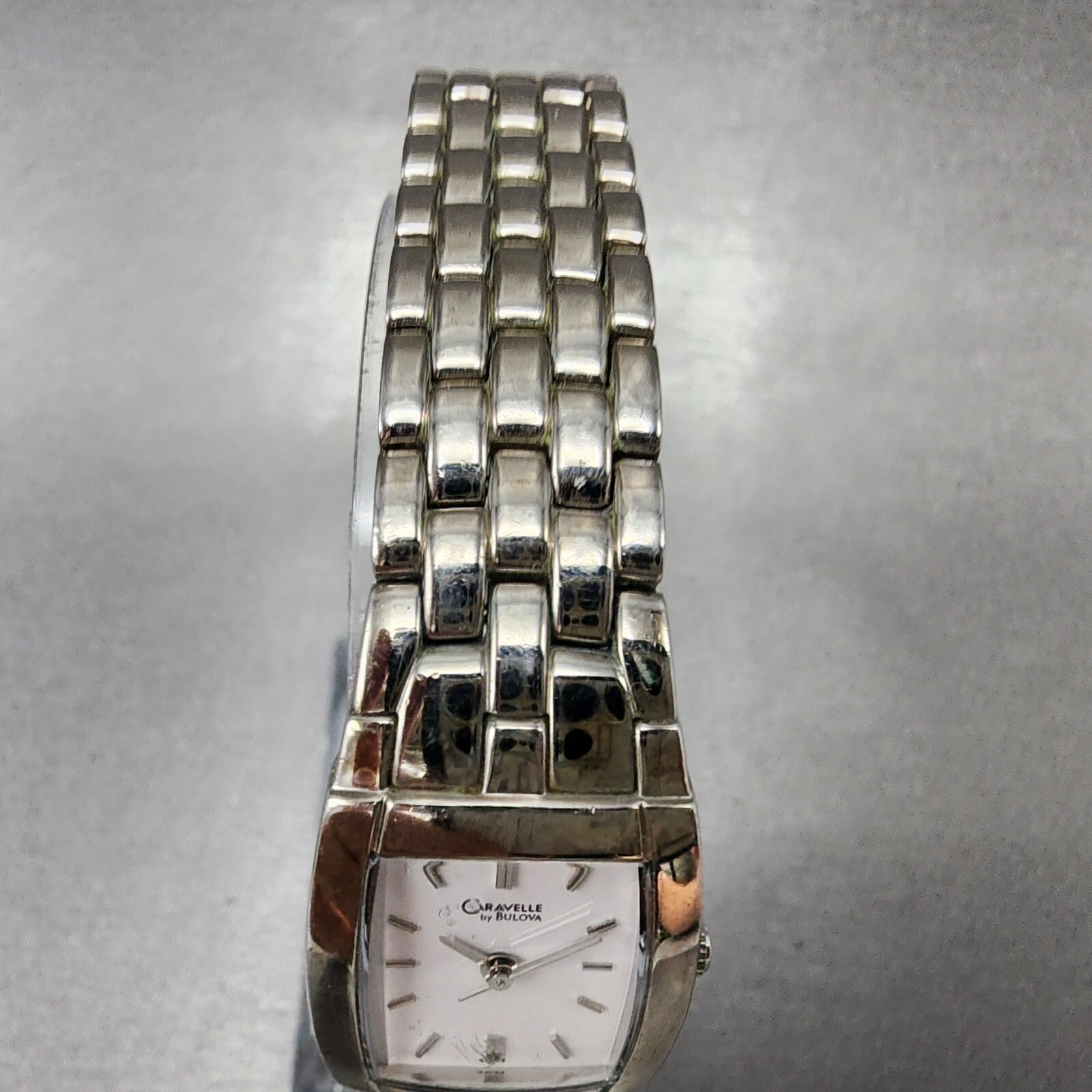 Caravelle Bulova Watch Women 20mm White Dial Silver Tone Rectangle 43L48 NewBatt