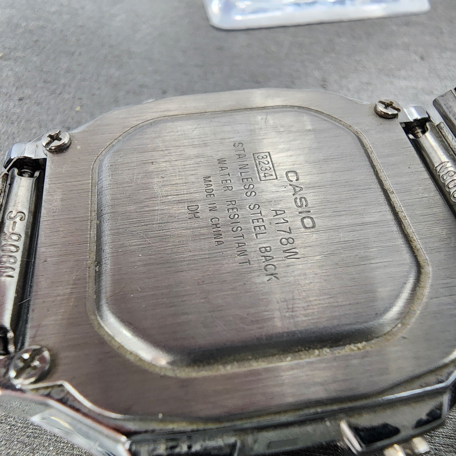 Casio A178W Watch Men 34mm Digital Silver Tone Alarm Chrono Illuminator New Batt