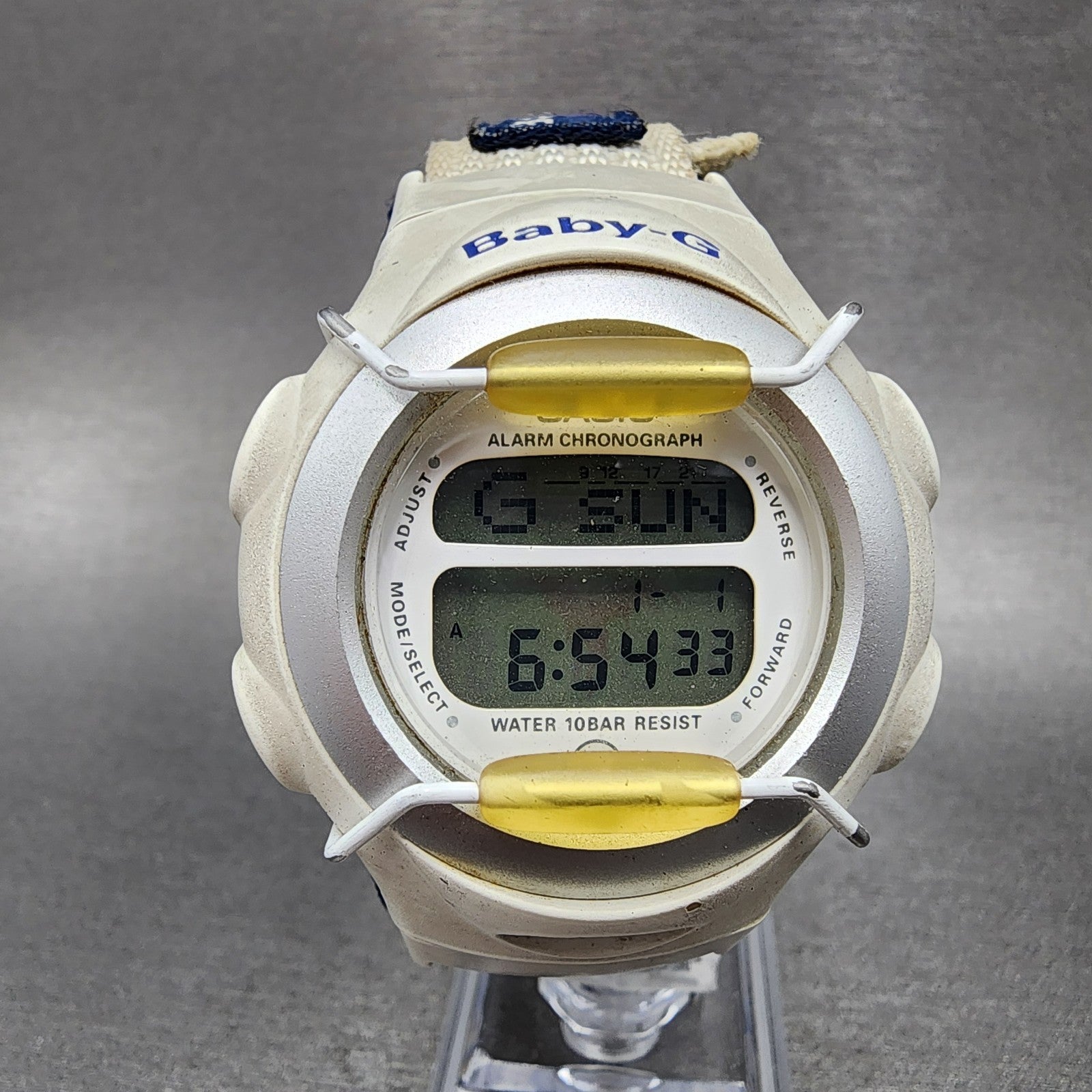 Casio Baby-G Watch Women 40mm Digital Alarm Chrono White BG-097 New Battery