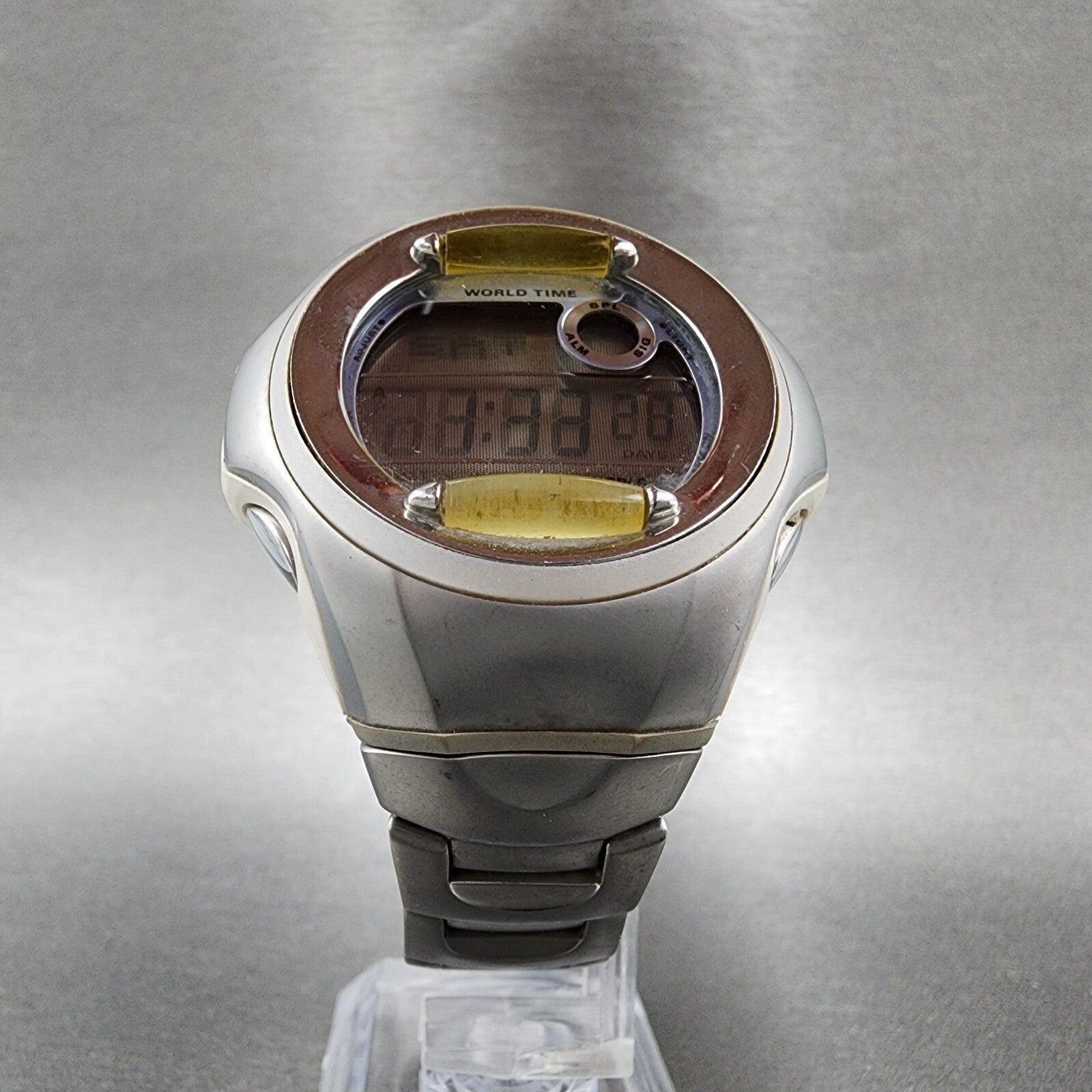 Casio Baby G Watch Women 42mm Digital Silver Tone Alarm Chrono MSG-140LV New Bat