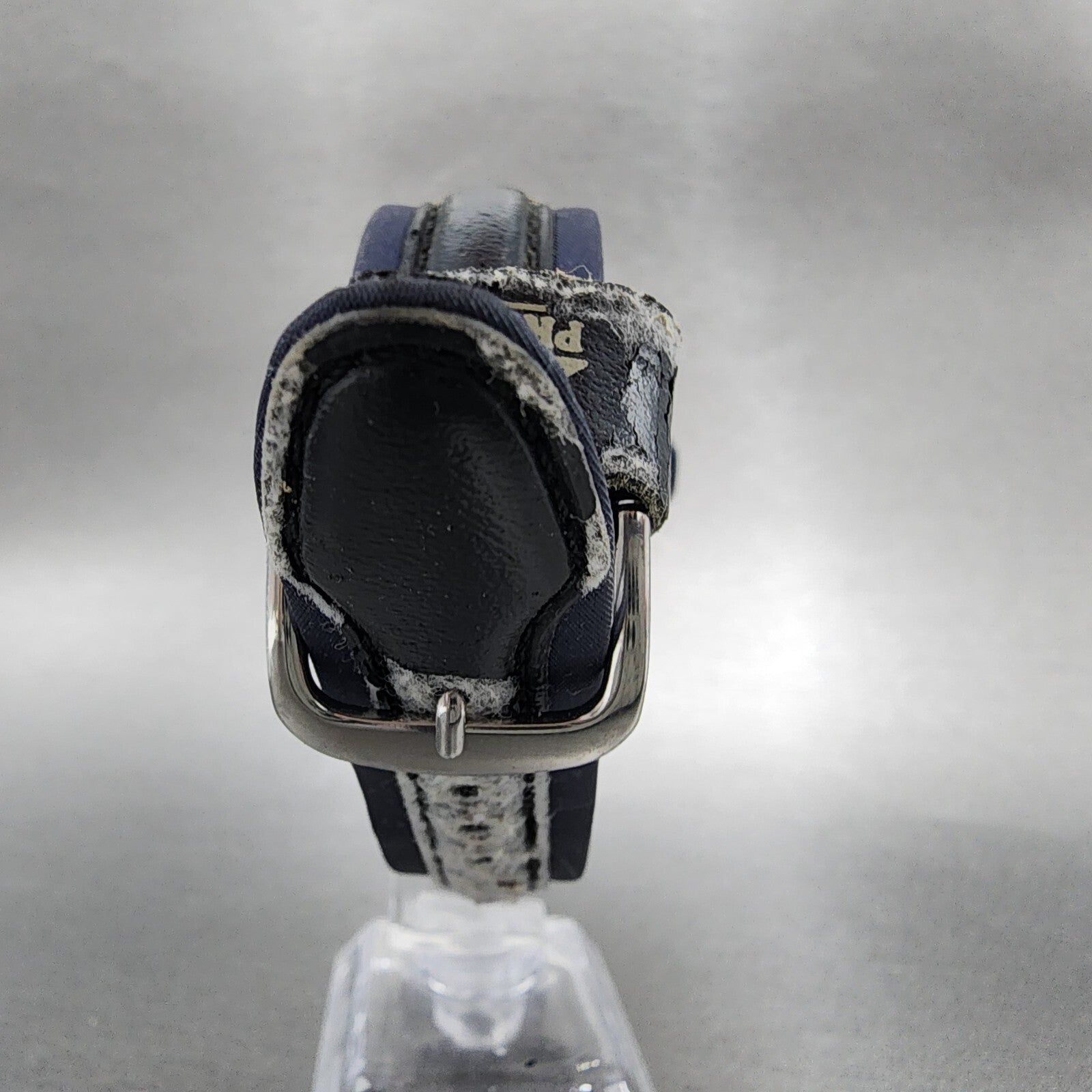 Leather on band is worn off. This watch has been used but is in good working condition. There is scratches on the watch. please refer to pictures.