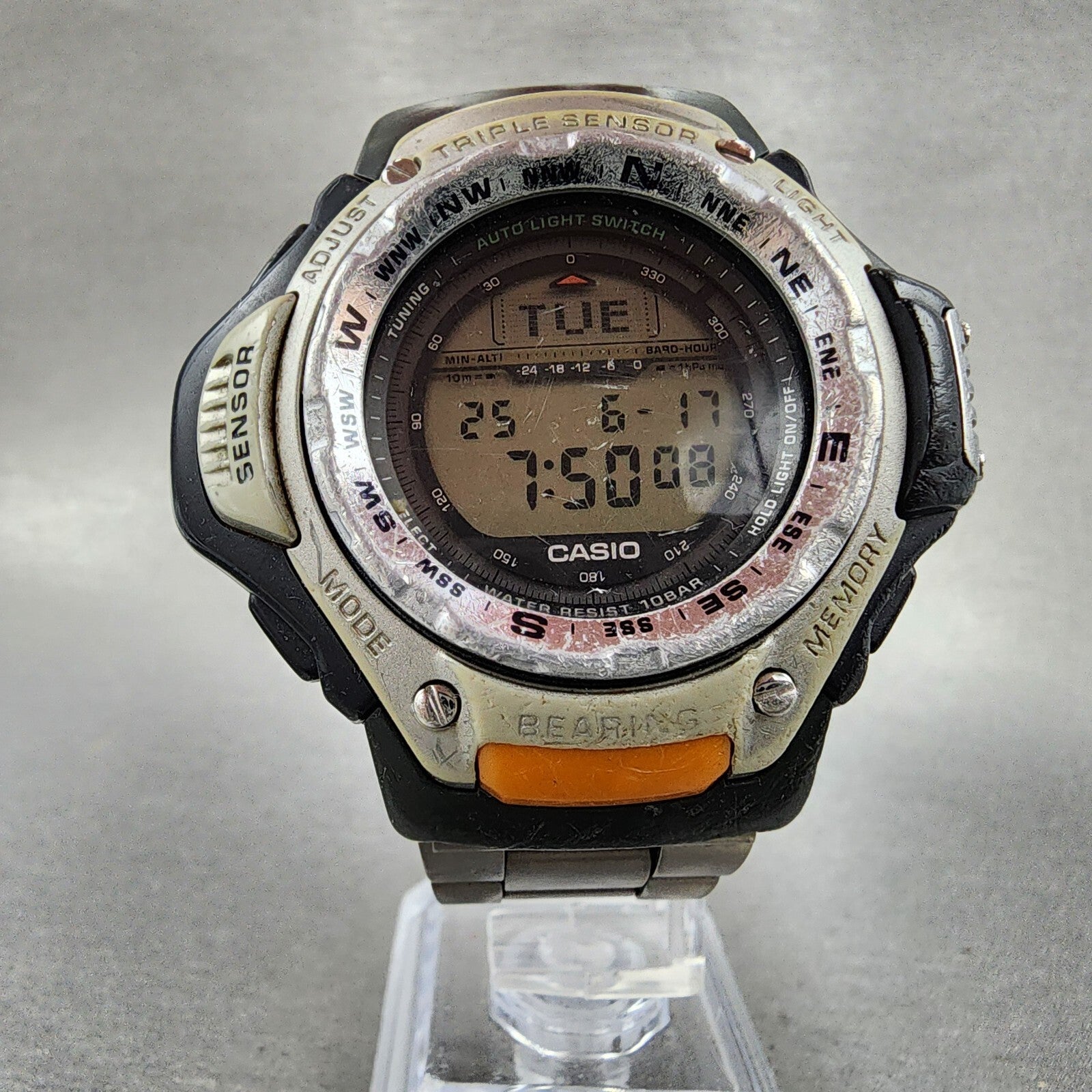 Casio ProTrek PRT-41 Watch Men 50mm Digital Black Tone Triple Sensor New Battery