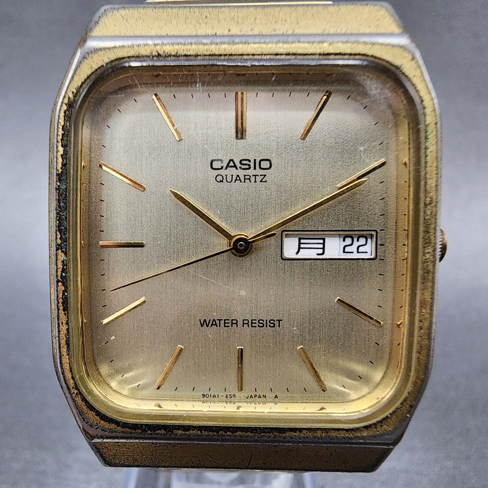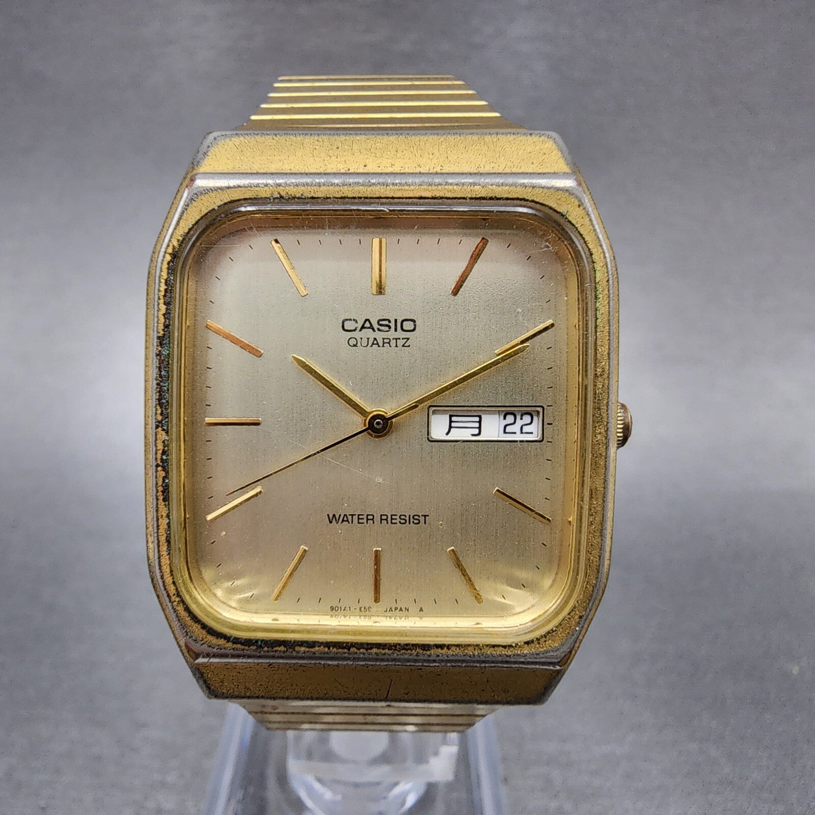 Casio Tank Watch Men 30mm Champagne Dial Gold Tone Rectangle MQ-518 New Battery