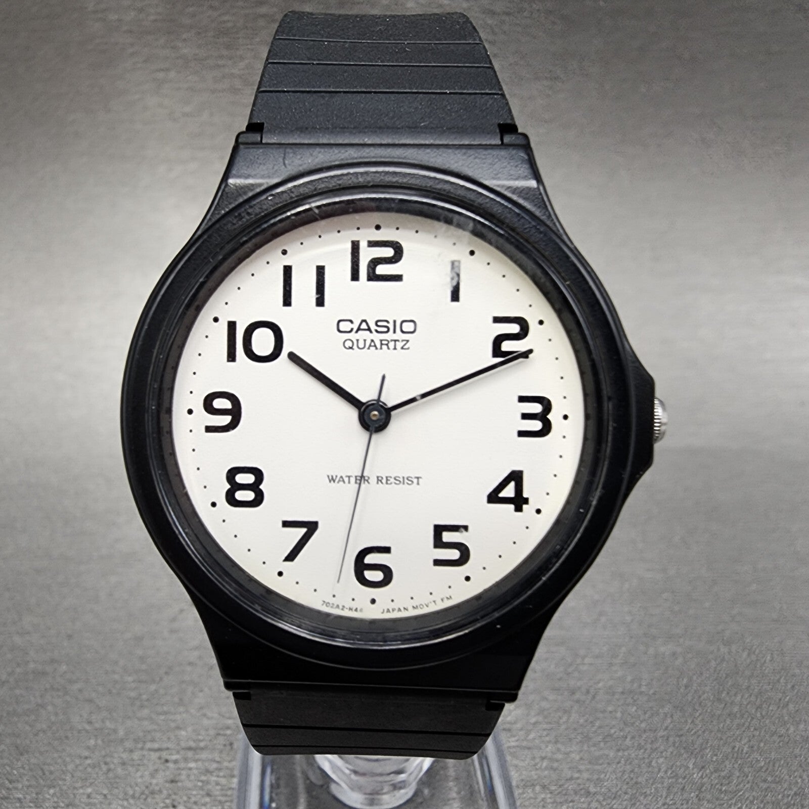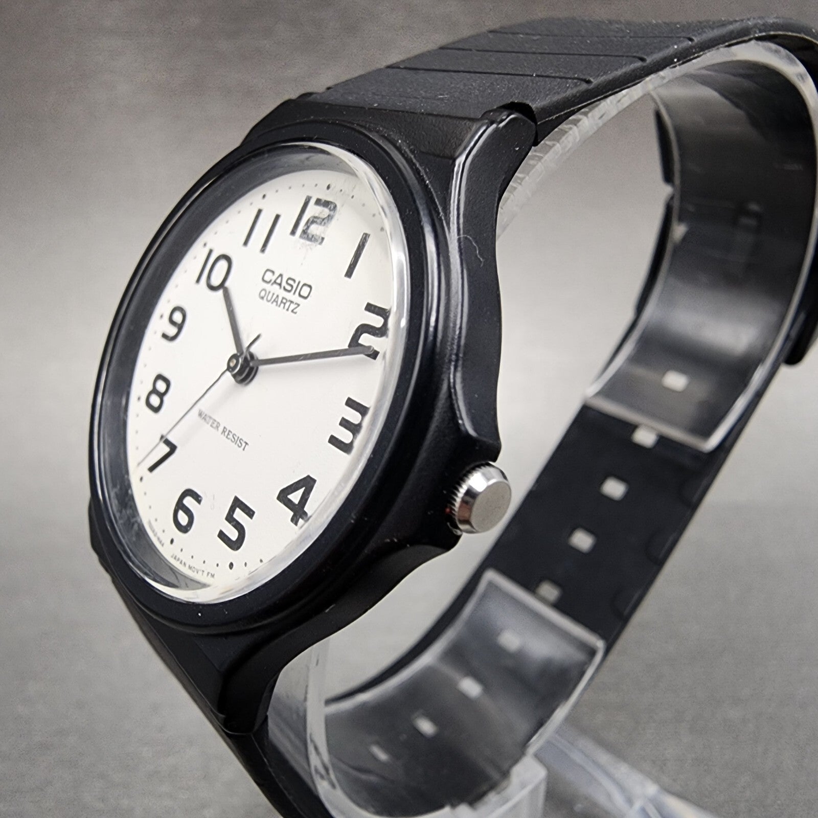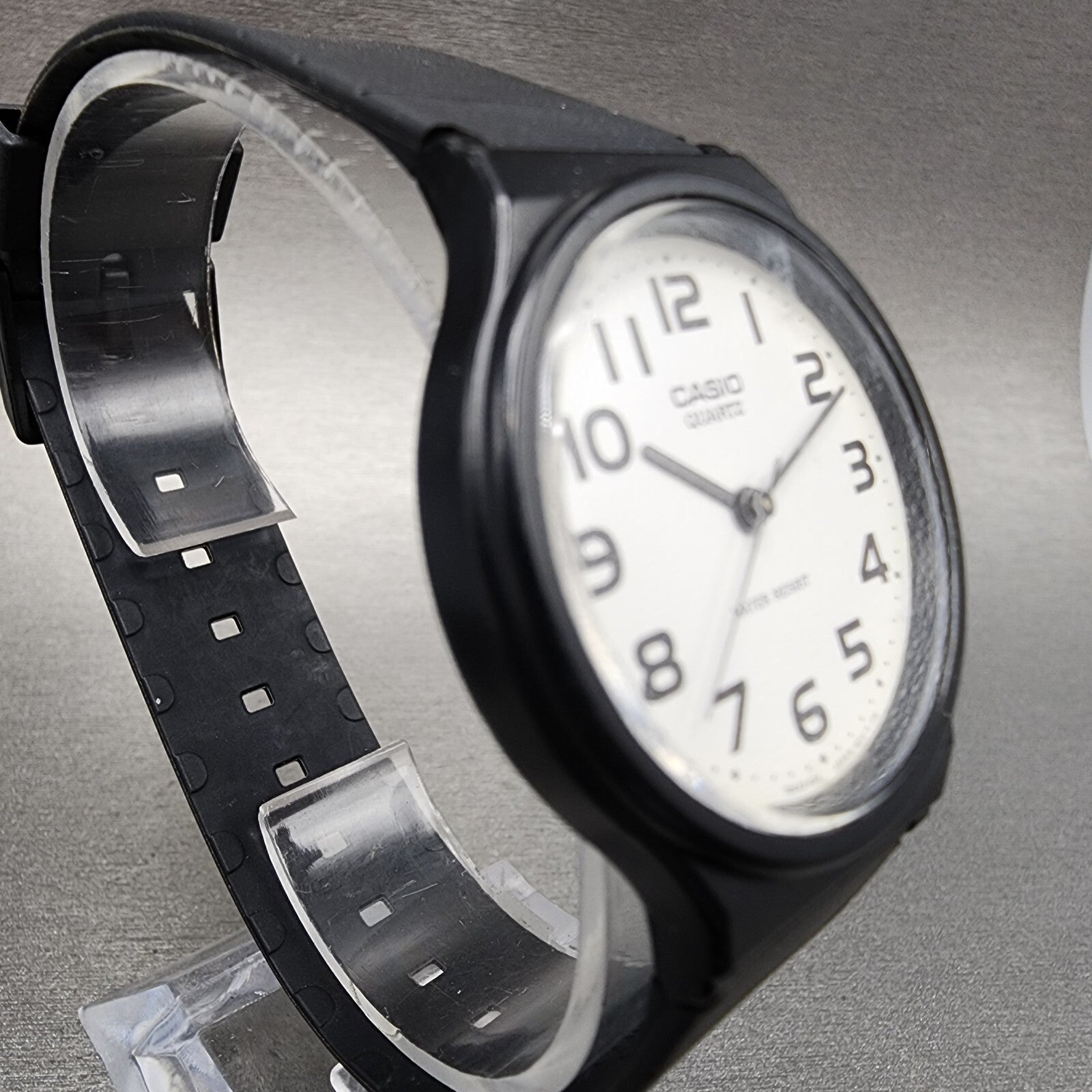 Casio Watch Men 34mm White Dial Black Tone Round MQ24 New Battery