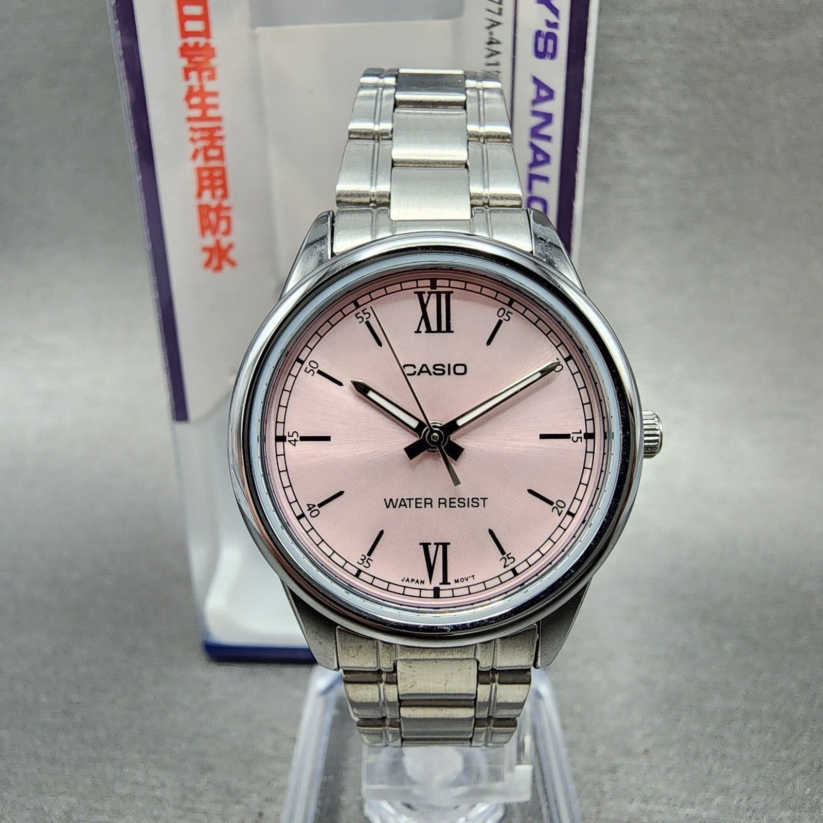 Casio Watch Women 28mm Pink Dial Stainless Steel Round LTP-V005 New Battery