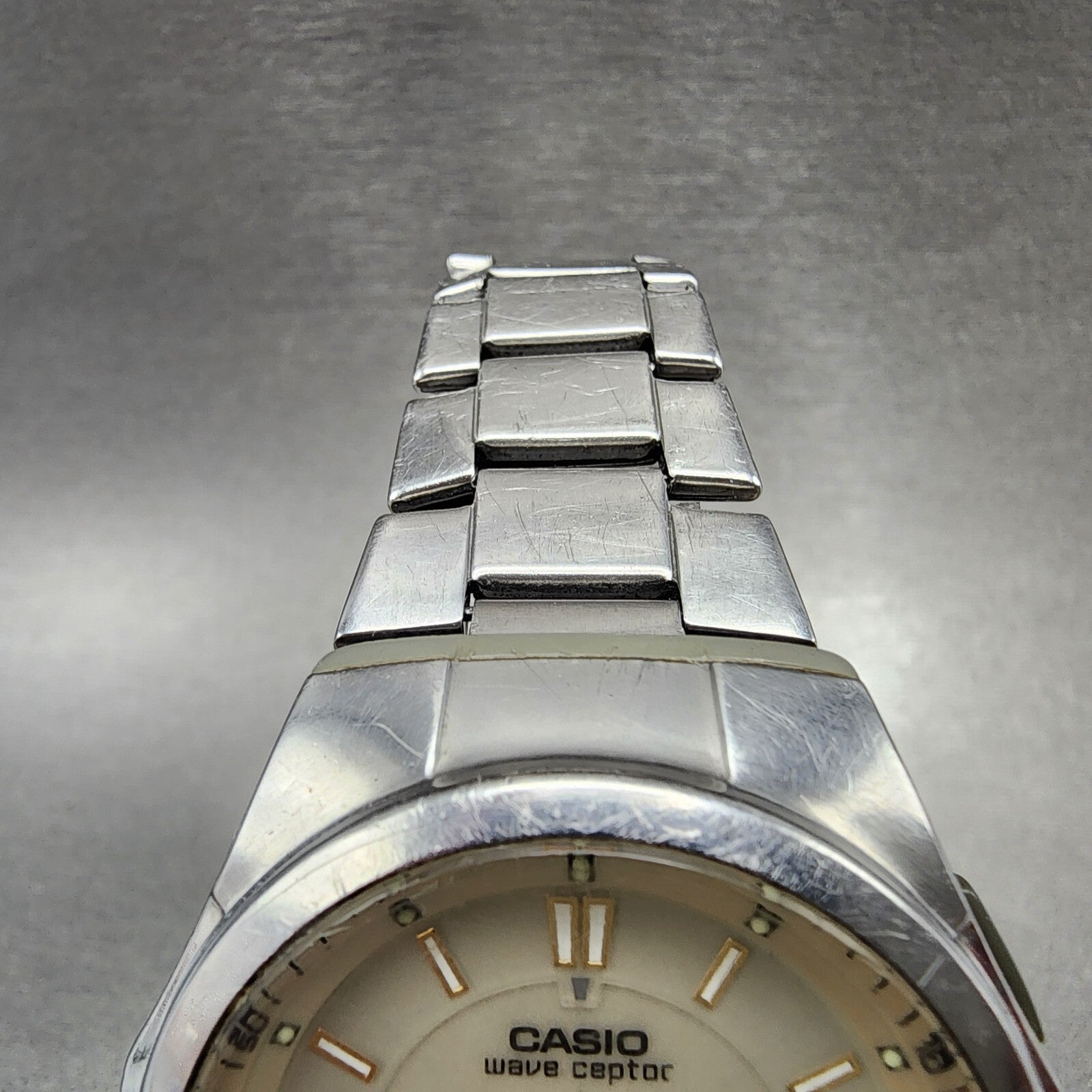 Casio Wave Ceptor Solar Watch Men 42mm White Dial Analog Digital Steel Runs