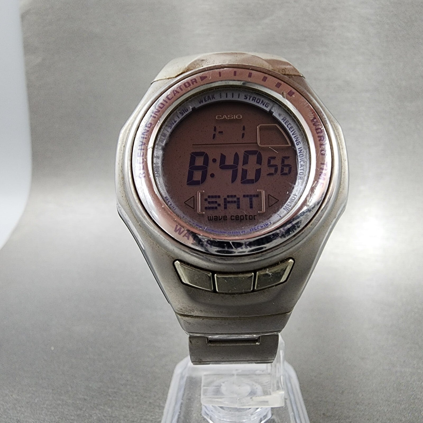 Casio Wave Ceptor Watch Women 37mm Digital Silver Tone Alarm Chrono New Battery