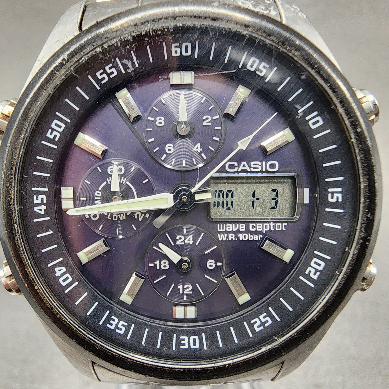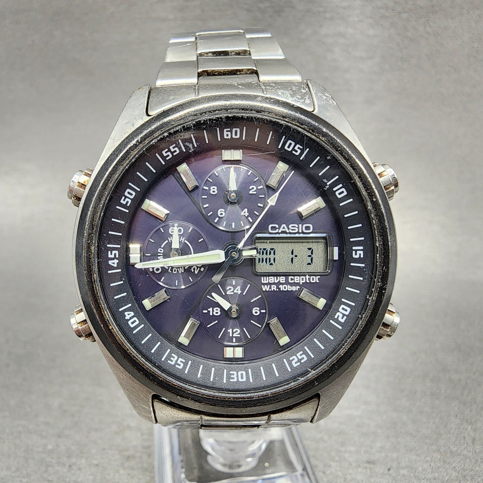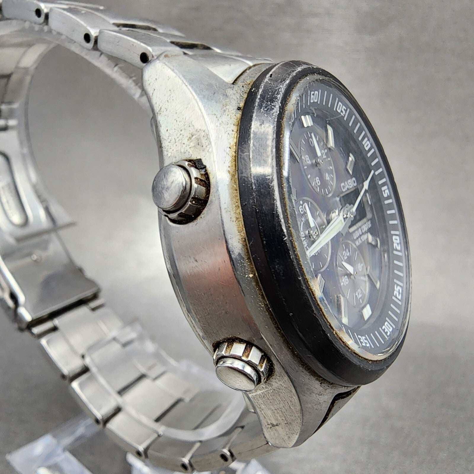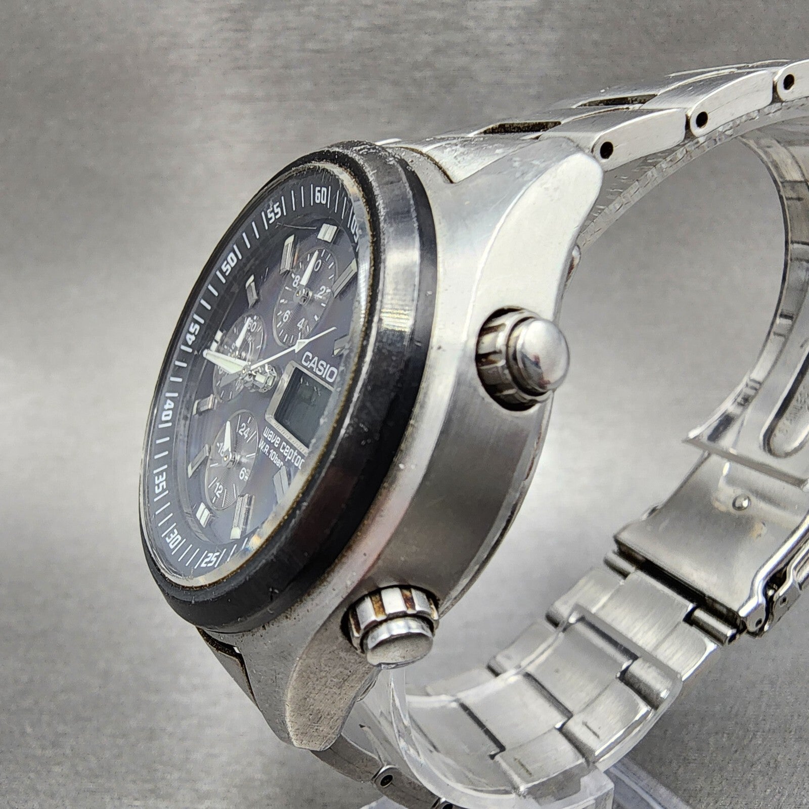 Casio Waveceptor WVQ-500 Watch Men 42mm Black Dial Steel Analog Digital Works A1