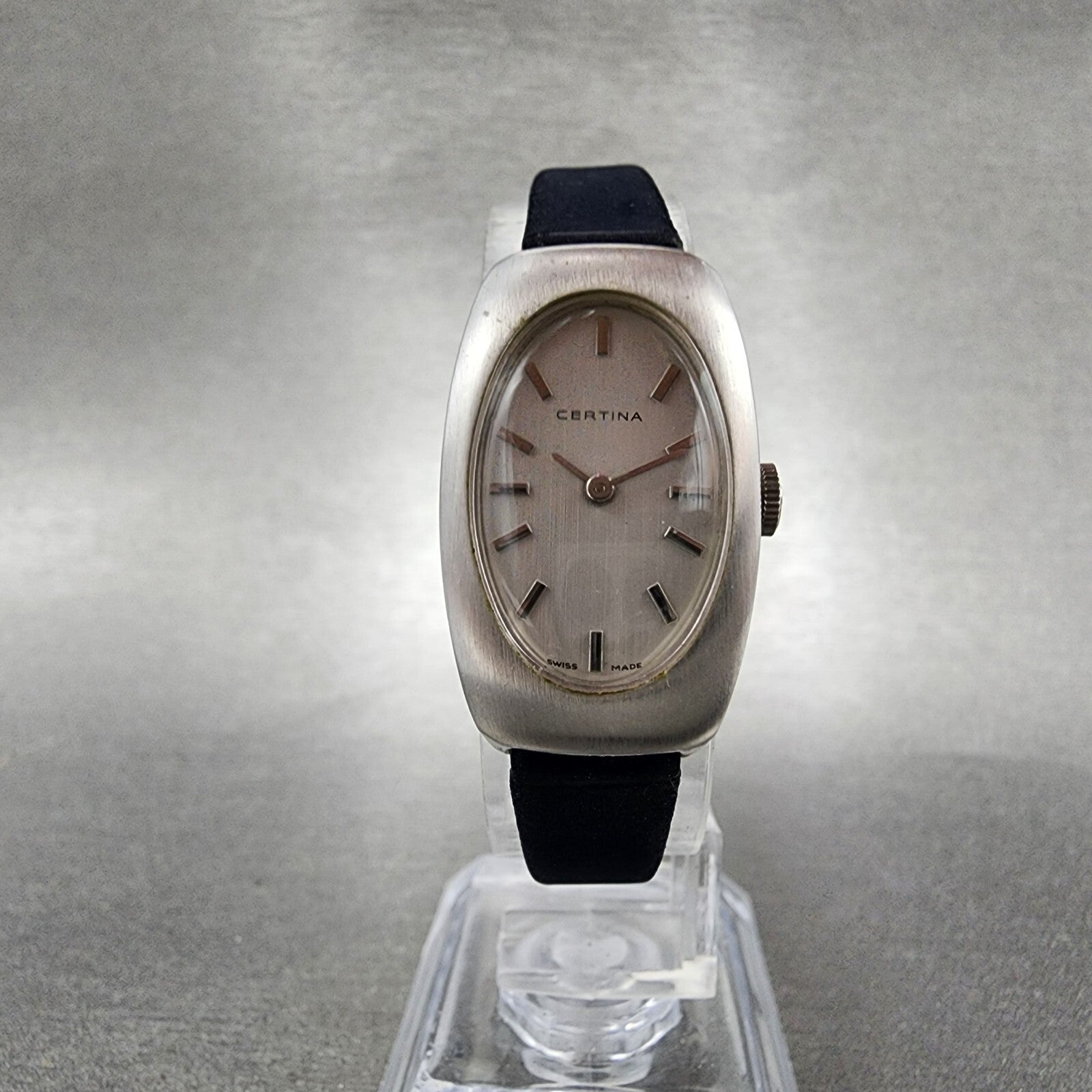 Certina Watch Women 18mm Silver Dial Steel Oval Manual Wind Runs VTG