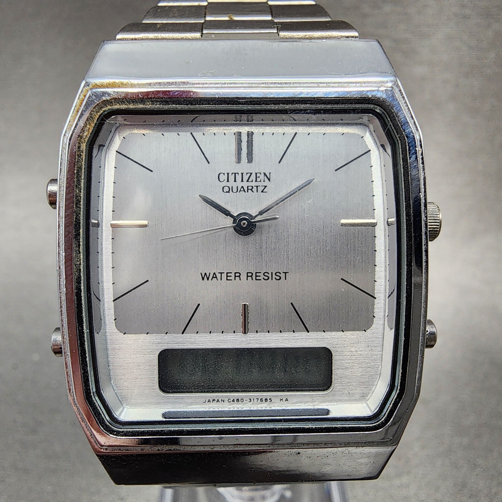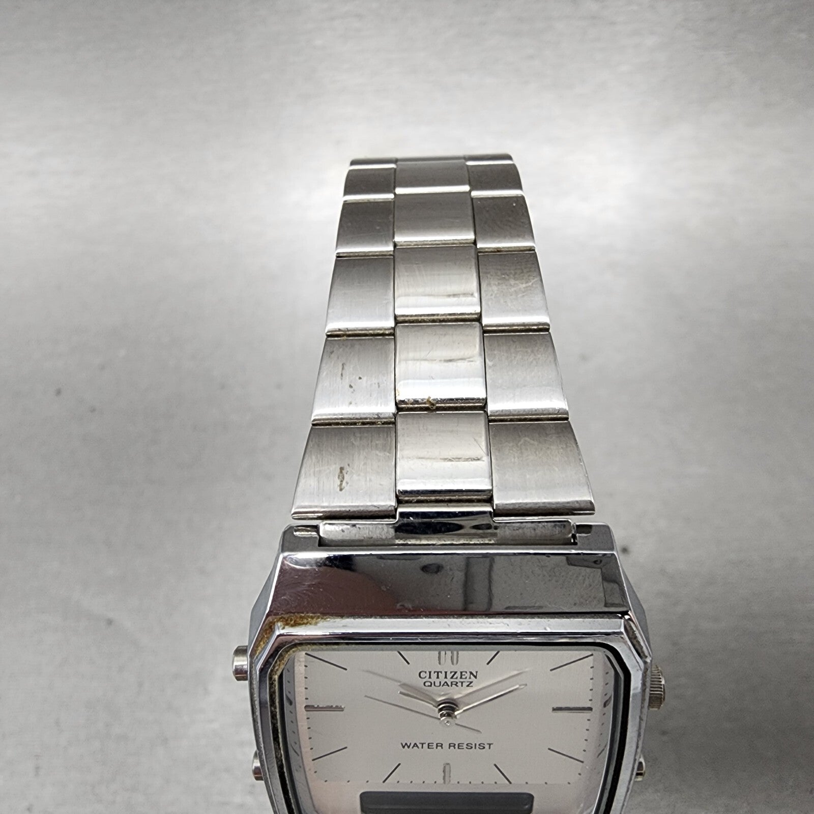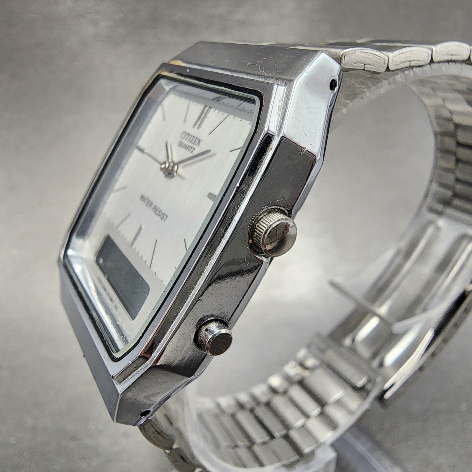 Citizen Analog Digital Watch Men 32mm Silver Dial Silver Tone Rectangle New Batt