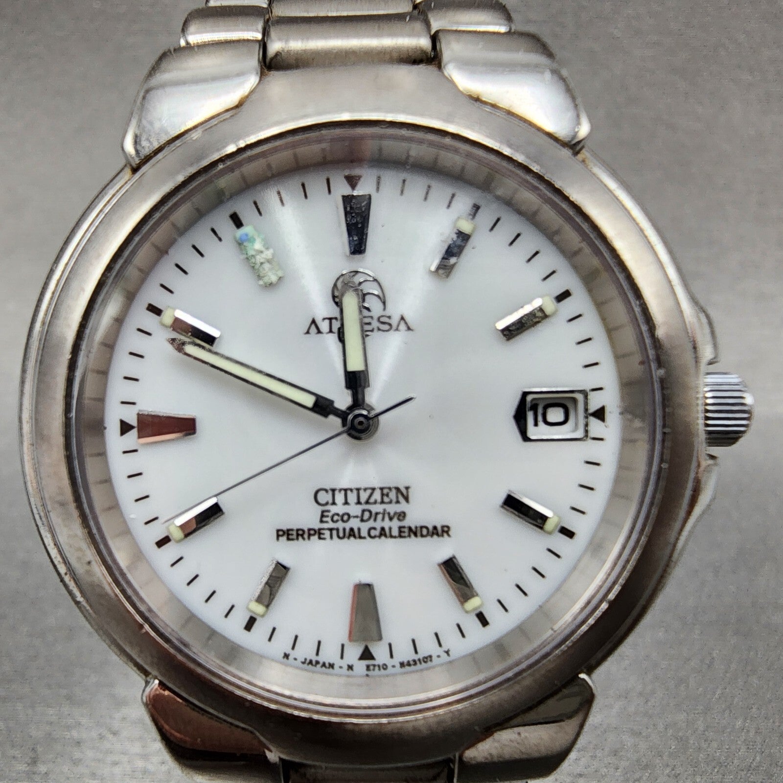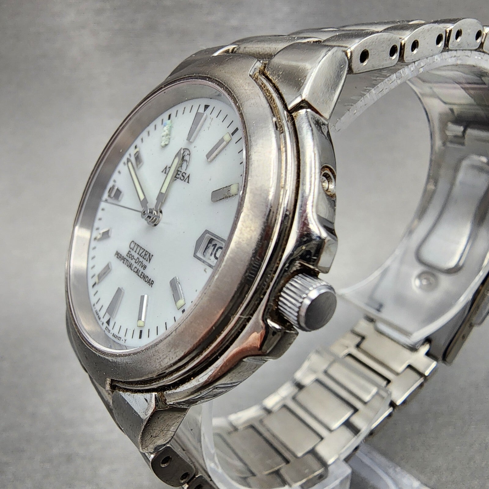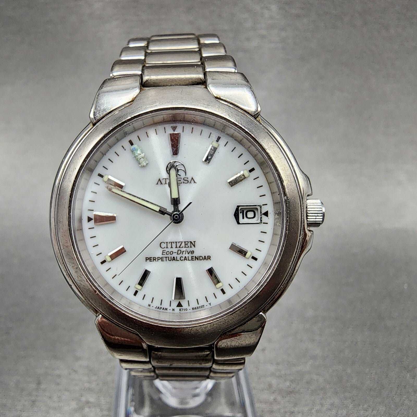 Citizen Attesa Eco-Drive Watch Men 36mm White Dial Titanium Date Perpetual Cal