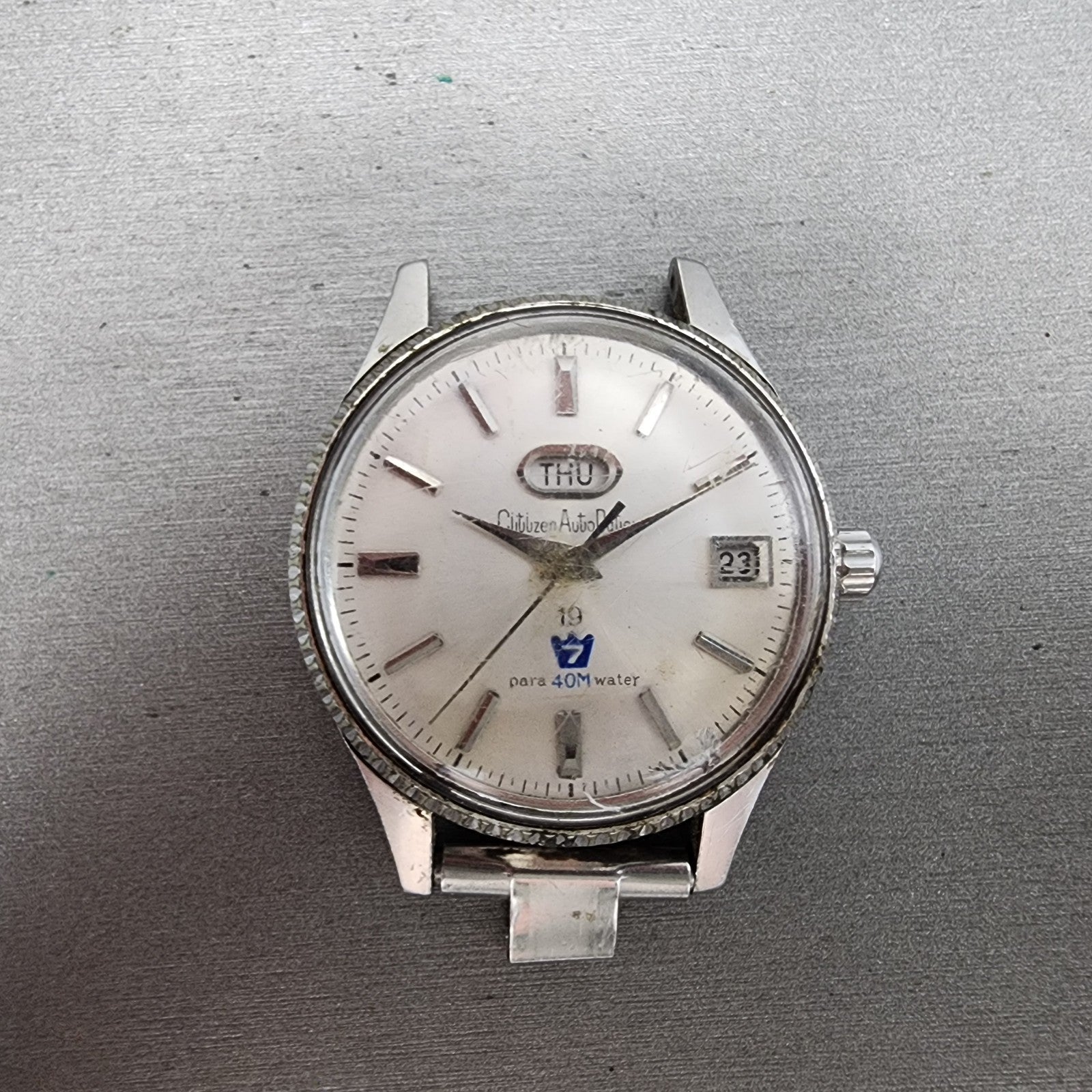 Citizen Autodater Watch Men 39mm White Dial Steel Daydate Automatic 1402a-t Runs