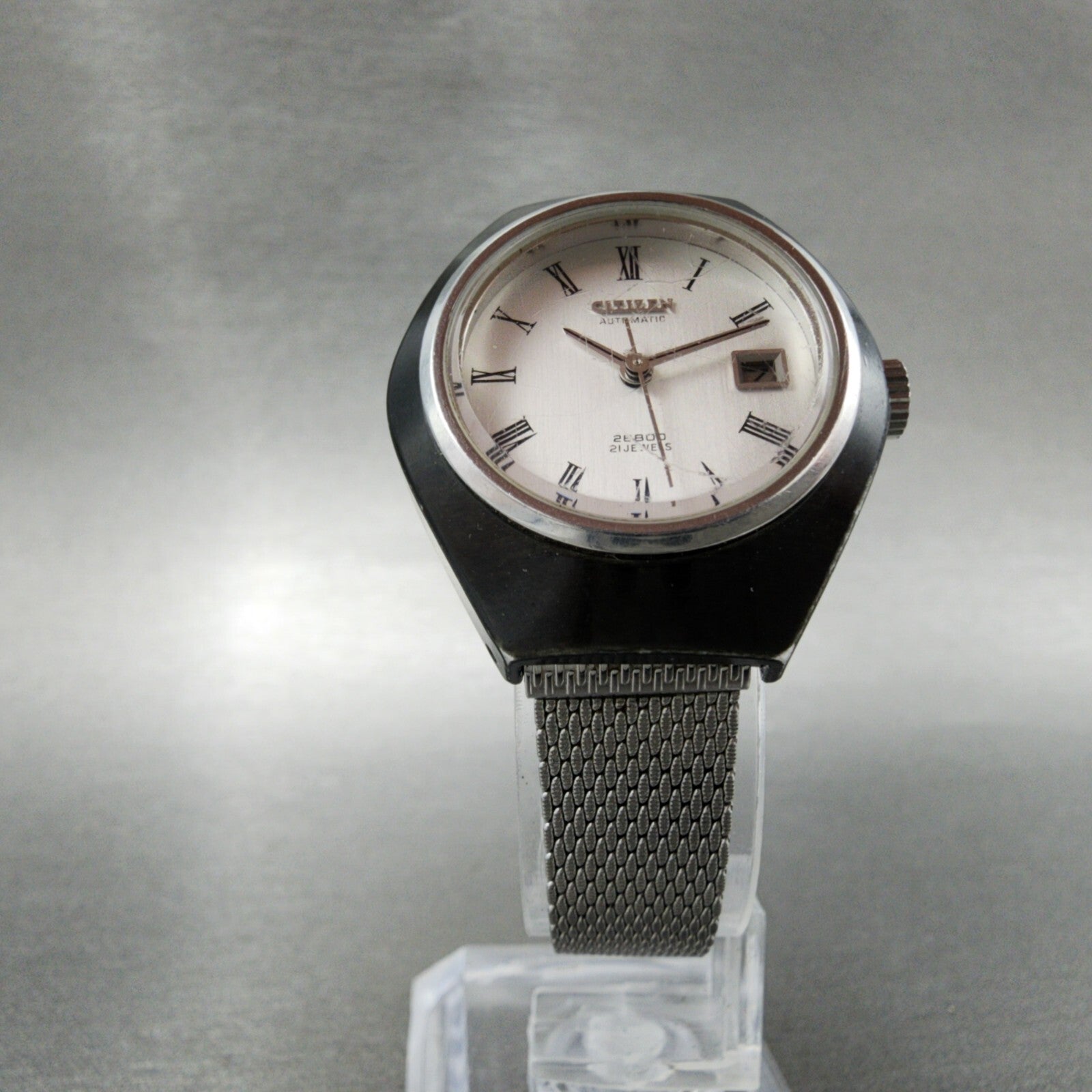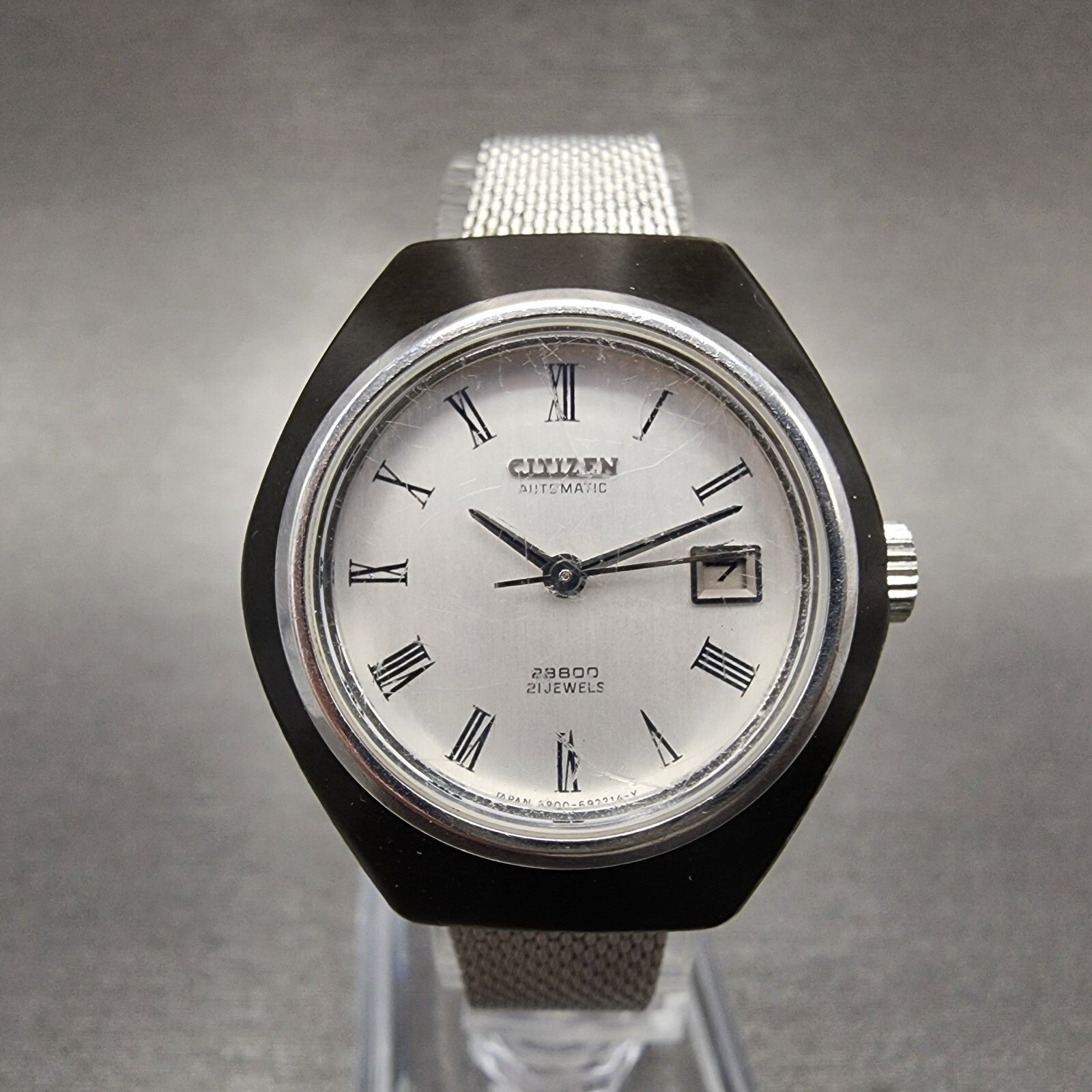 Citizen Automatic 28800 Watch Women 29mm Silver Dial Black Tone 4-691164k Runs