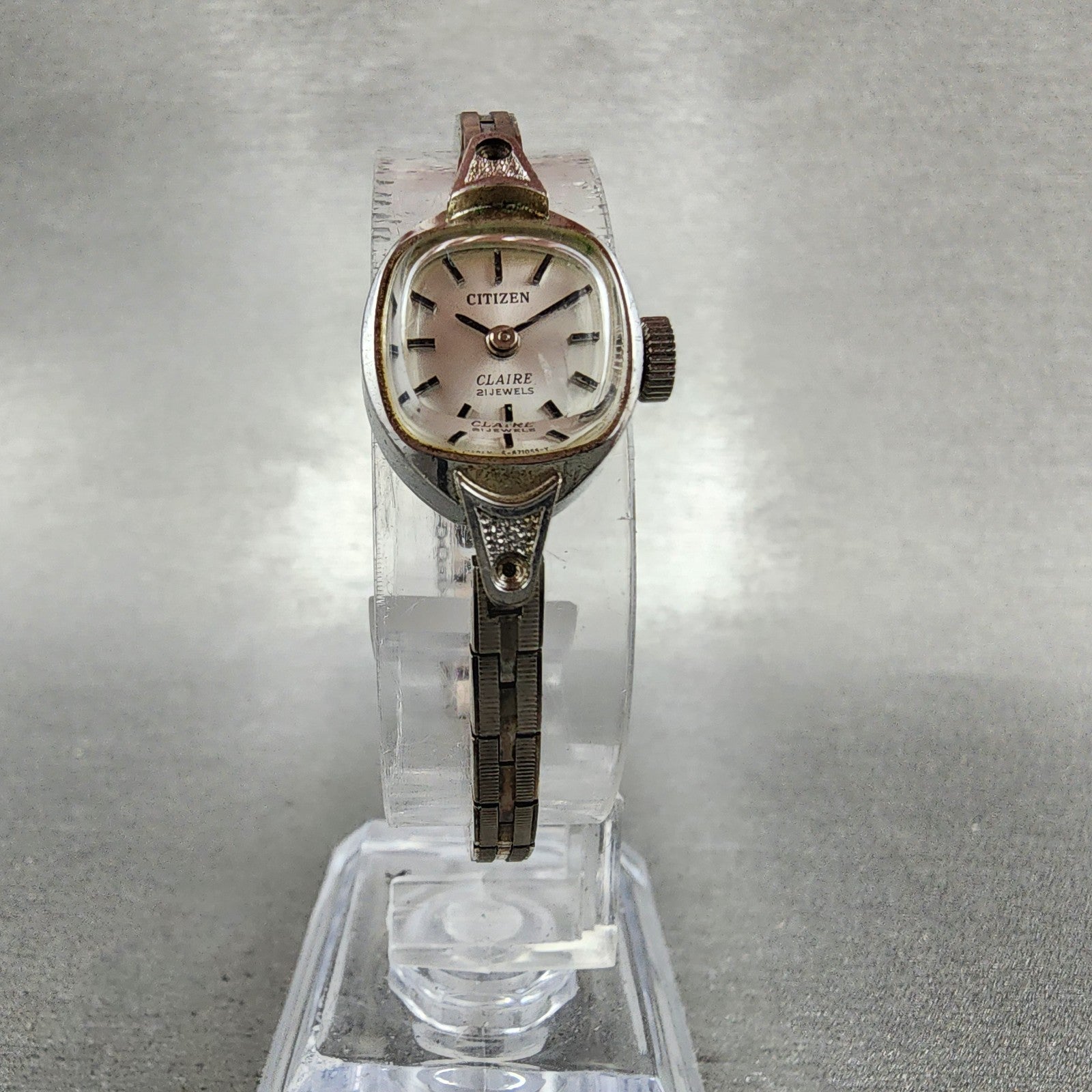 Citizen Claire Watch Women 15mm Silver Dial White Gold Plated Manual Wind Runs