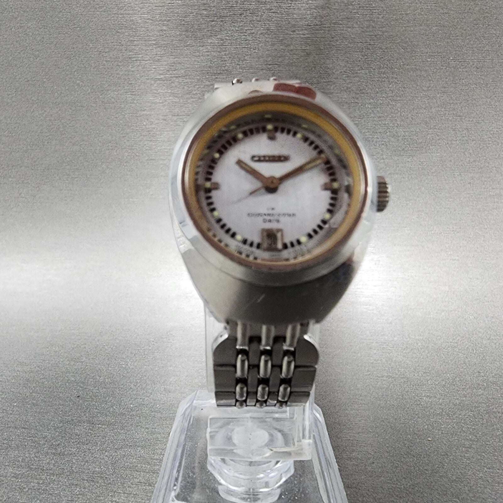 This watch has been used but is in good working condition. There is scratches on the watch. please refer to pictures.