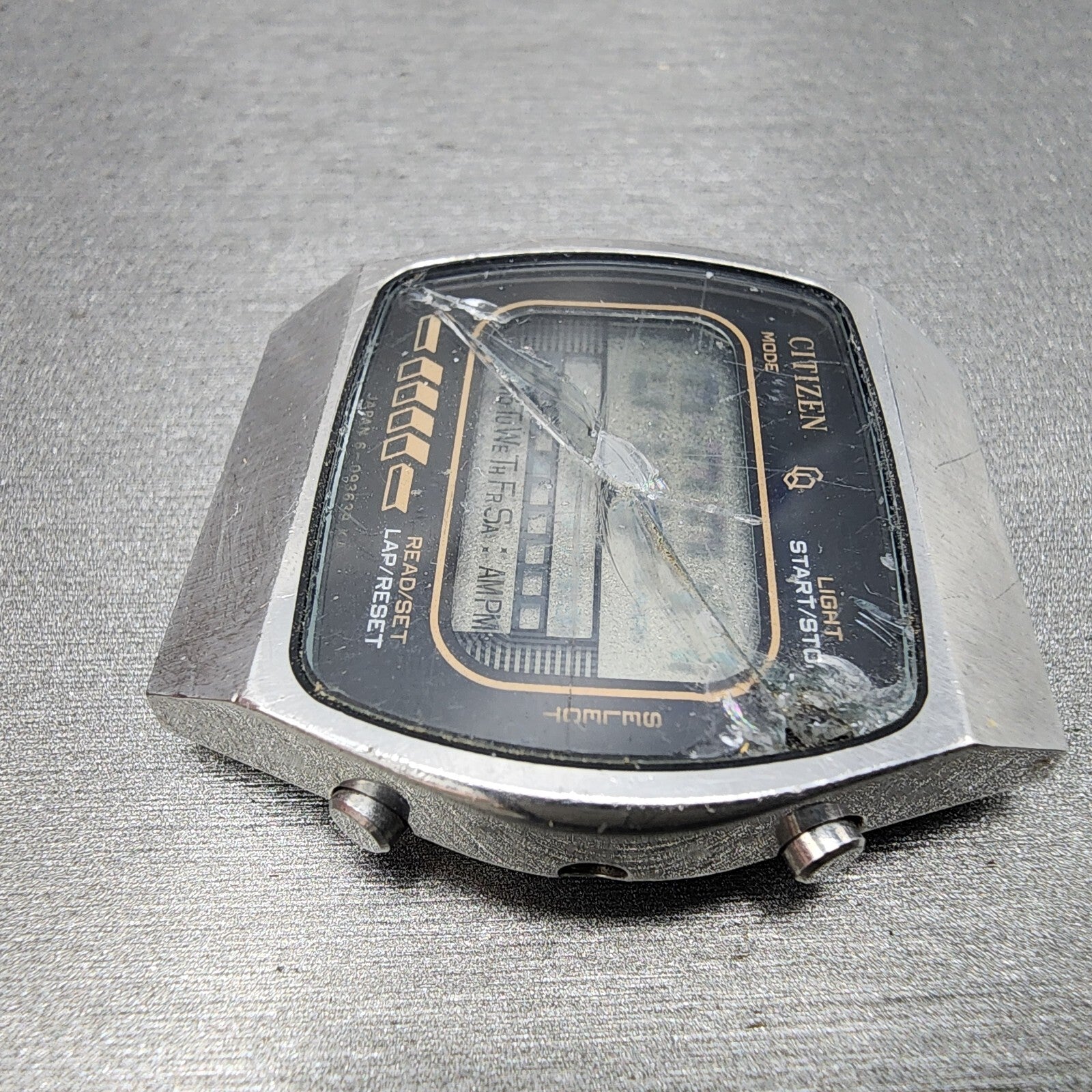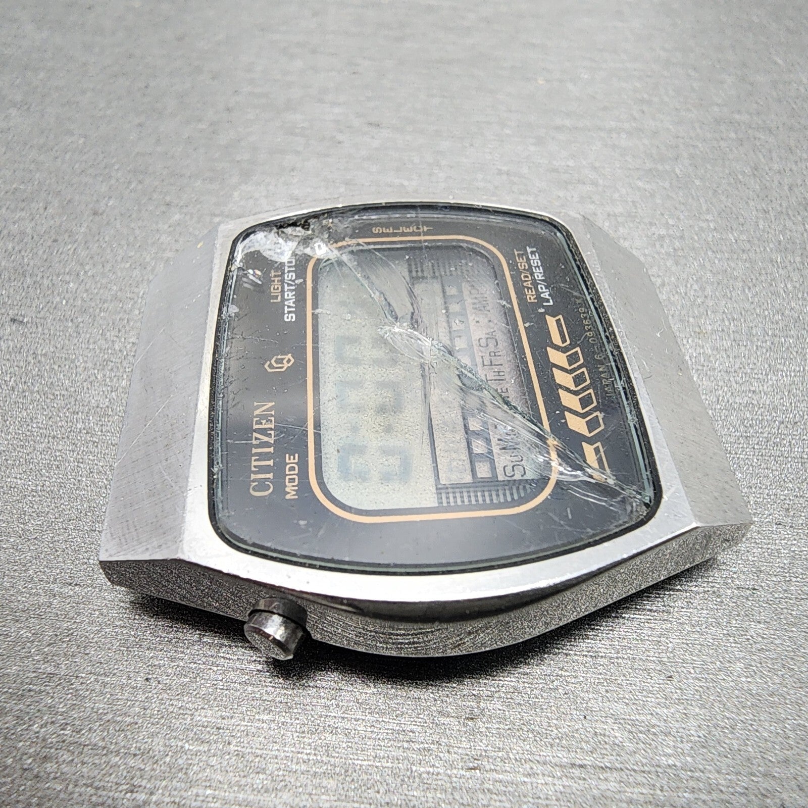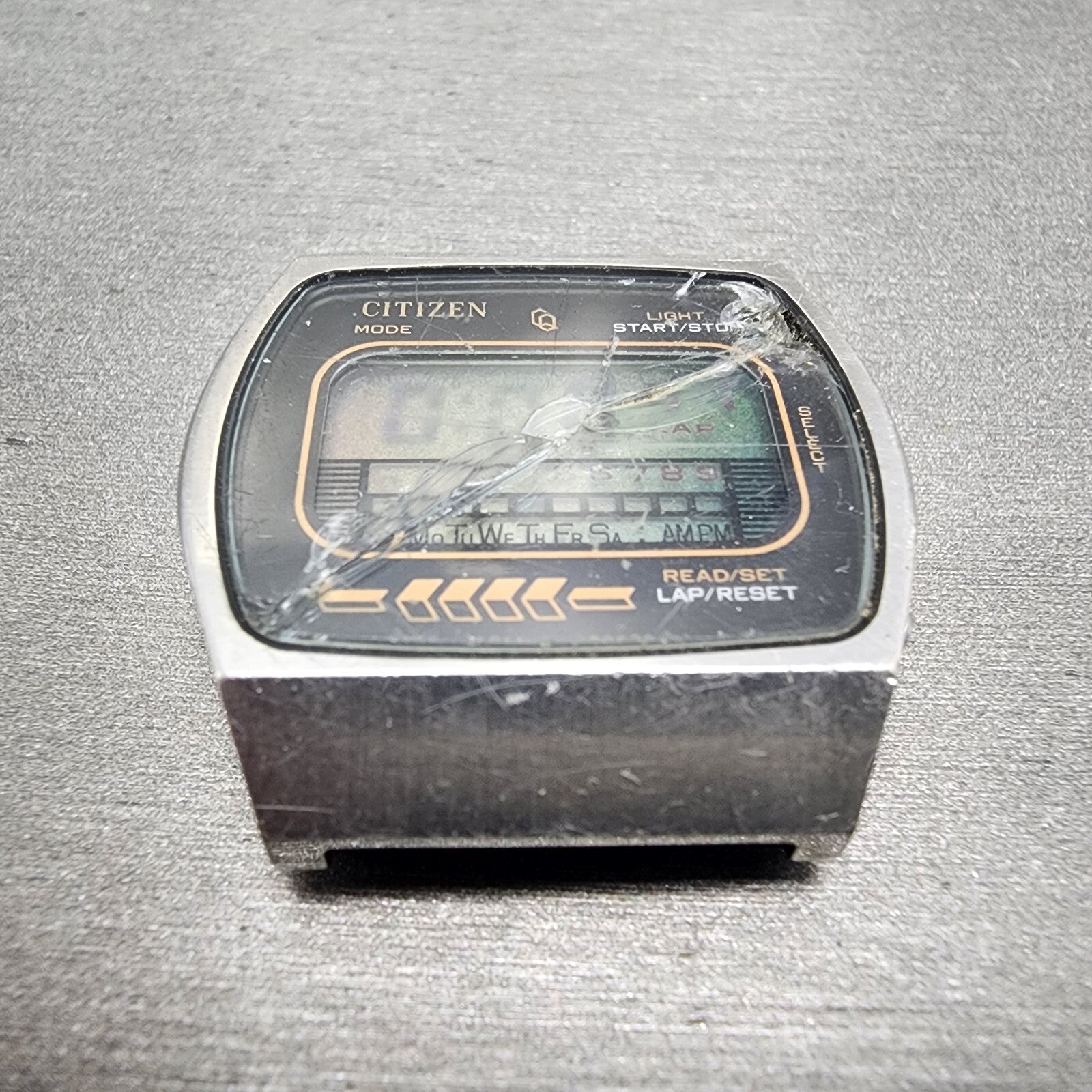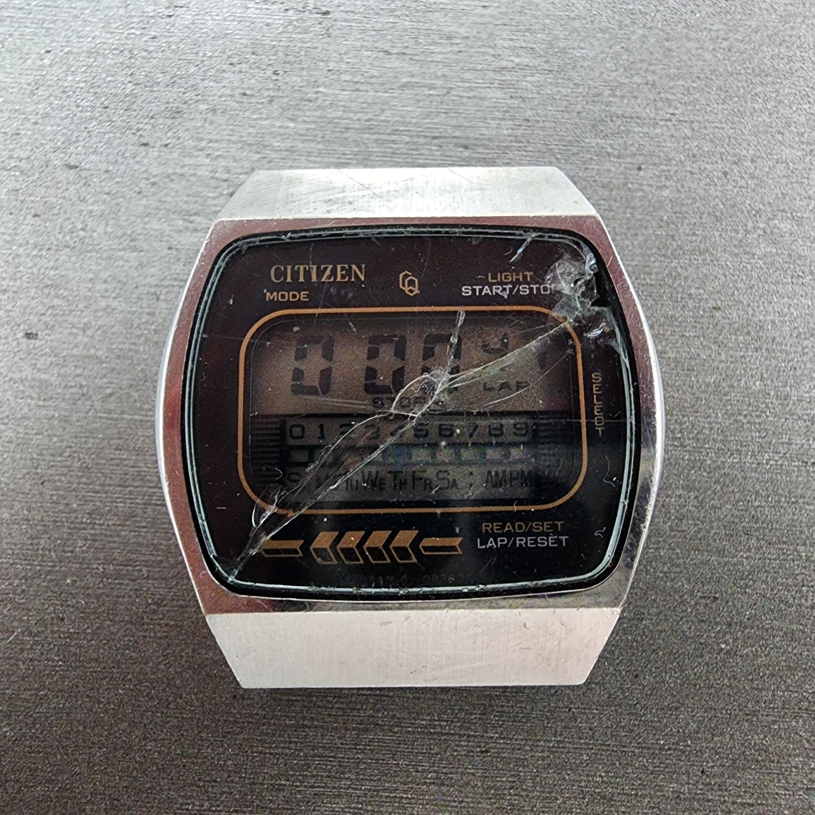 Citizen CQ Digital Watch Men 34mm LCD Steel Chronograph 4-098773 New Battery