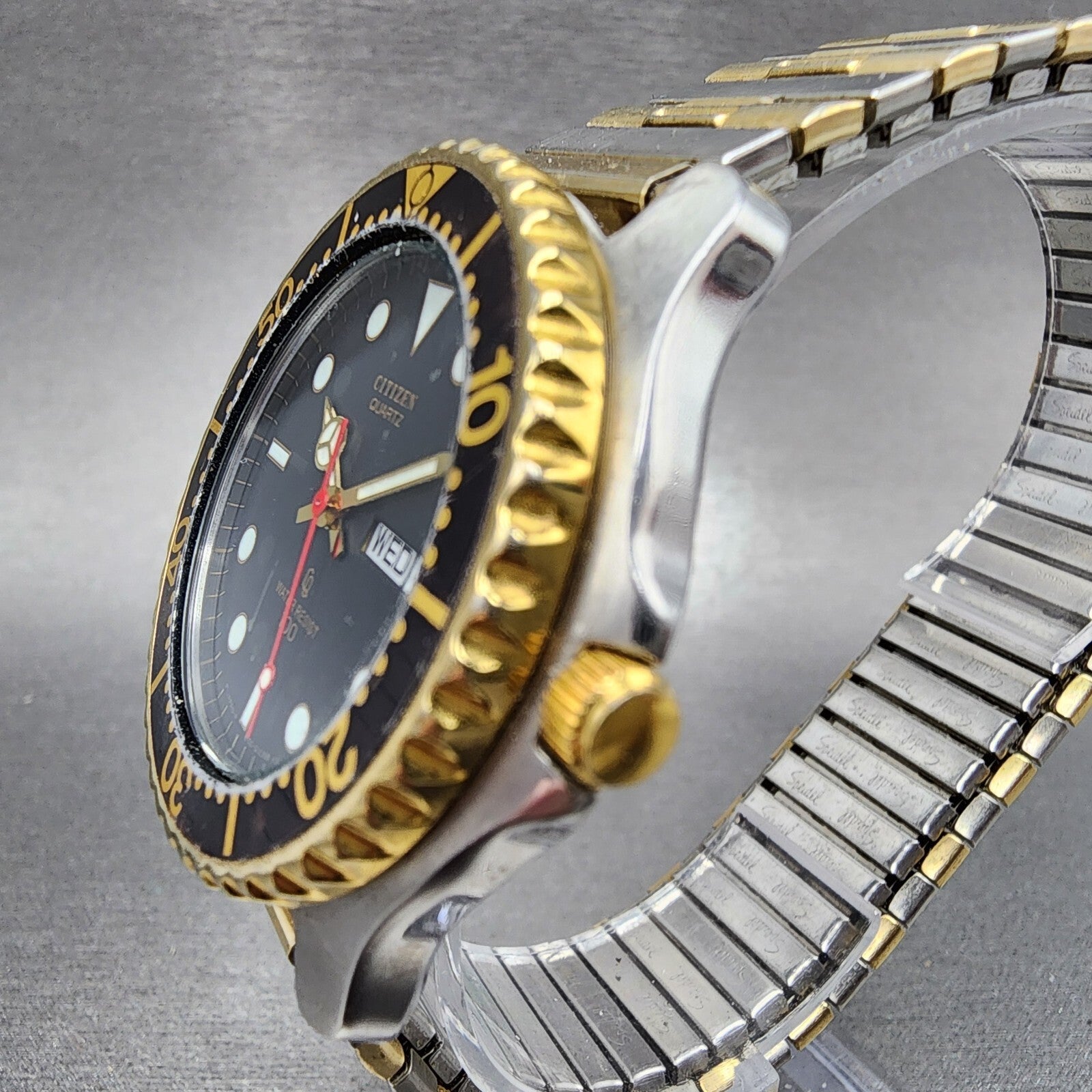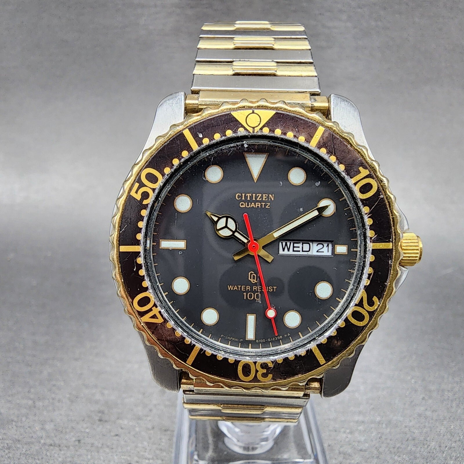 Citizen CQ Dive Watch Men 40mm Black Dial Two Tone Daydate Round New Battery