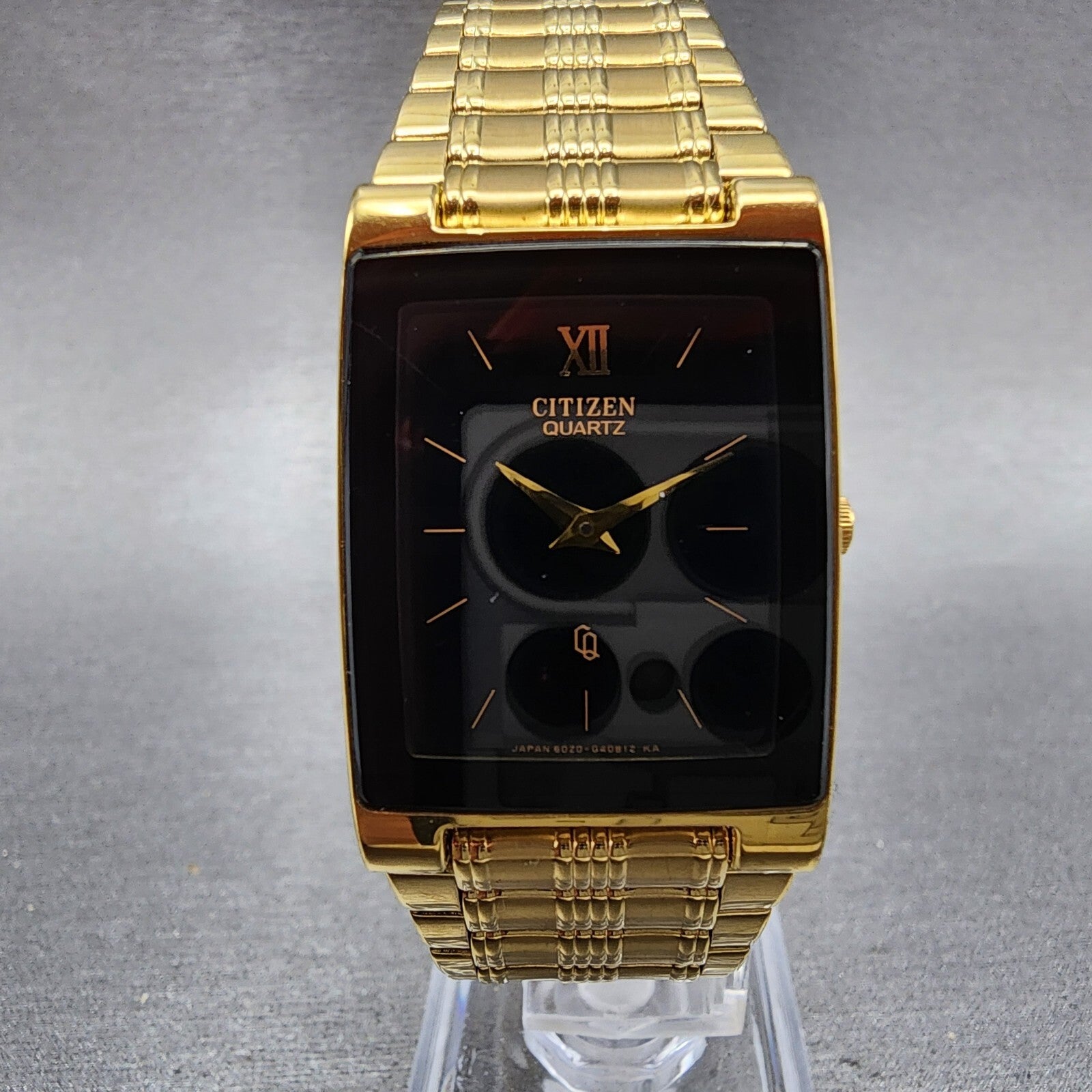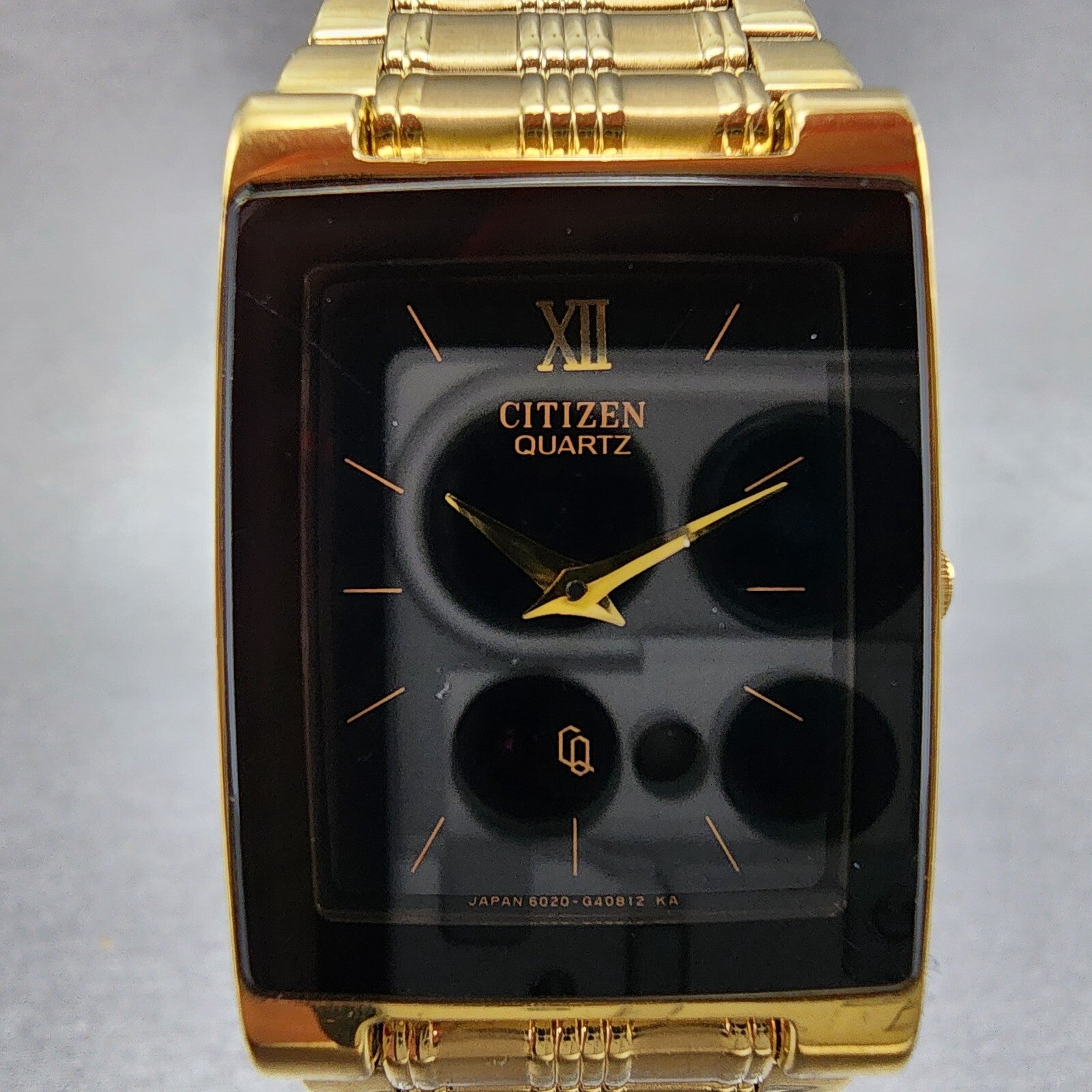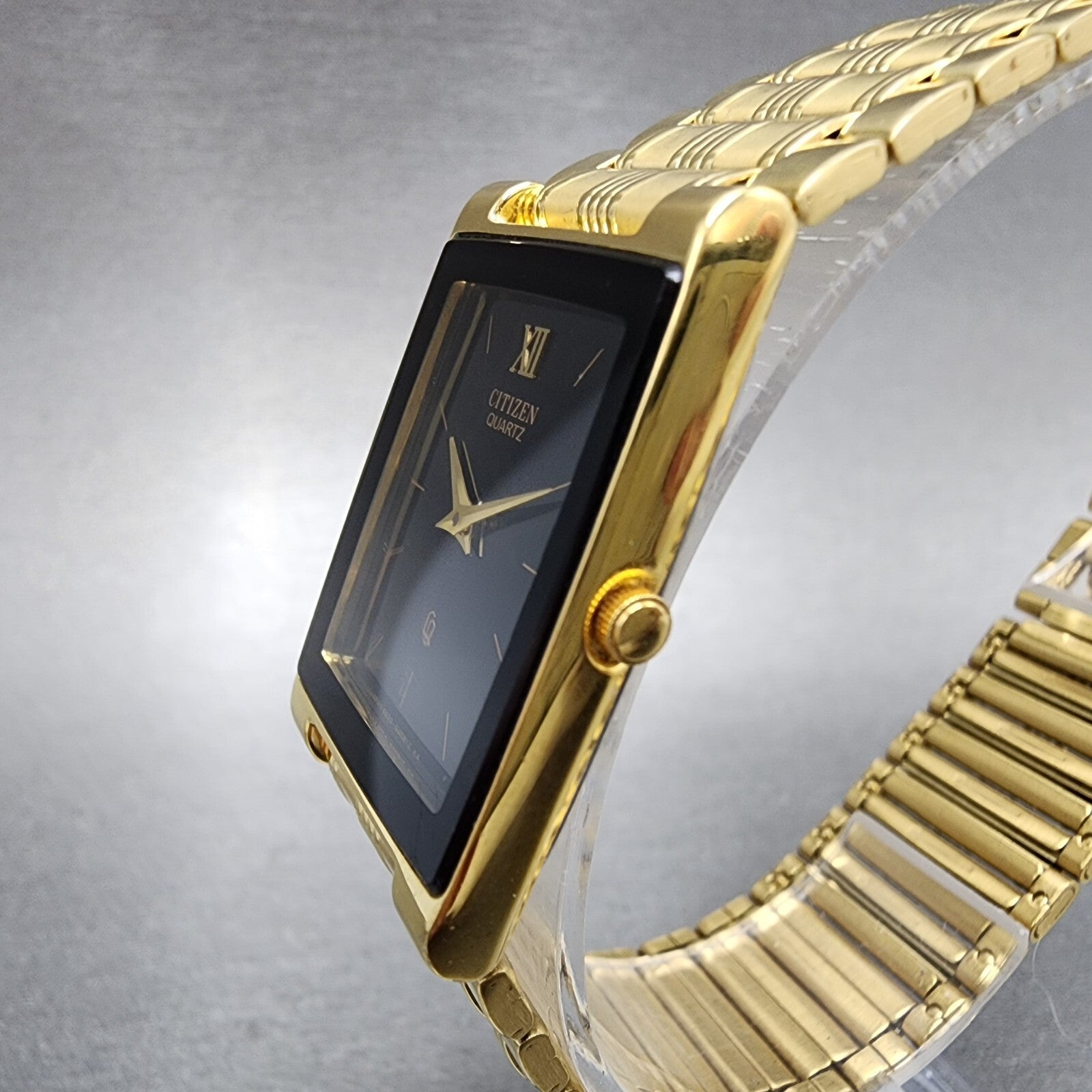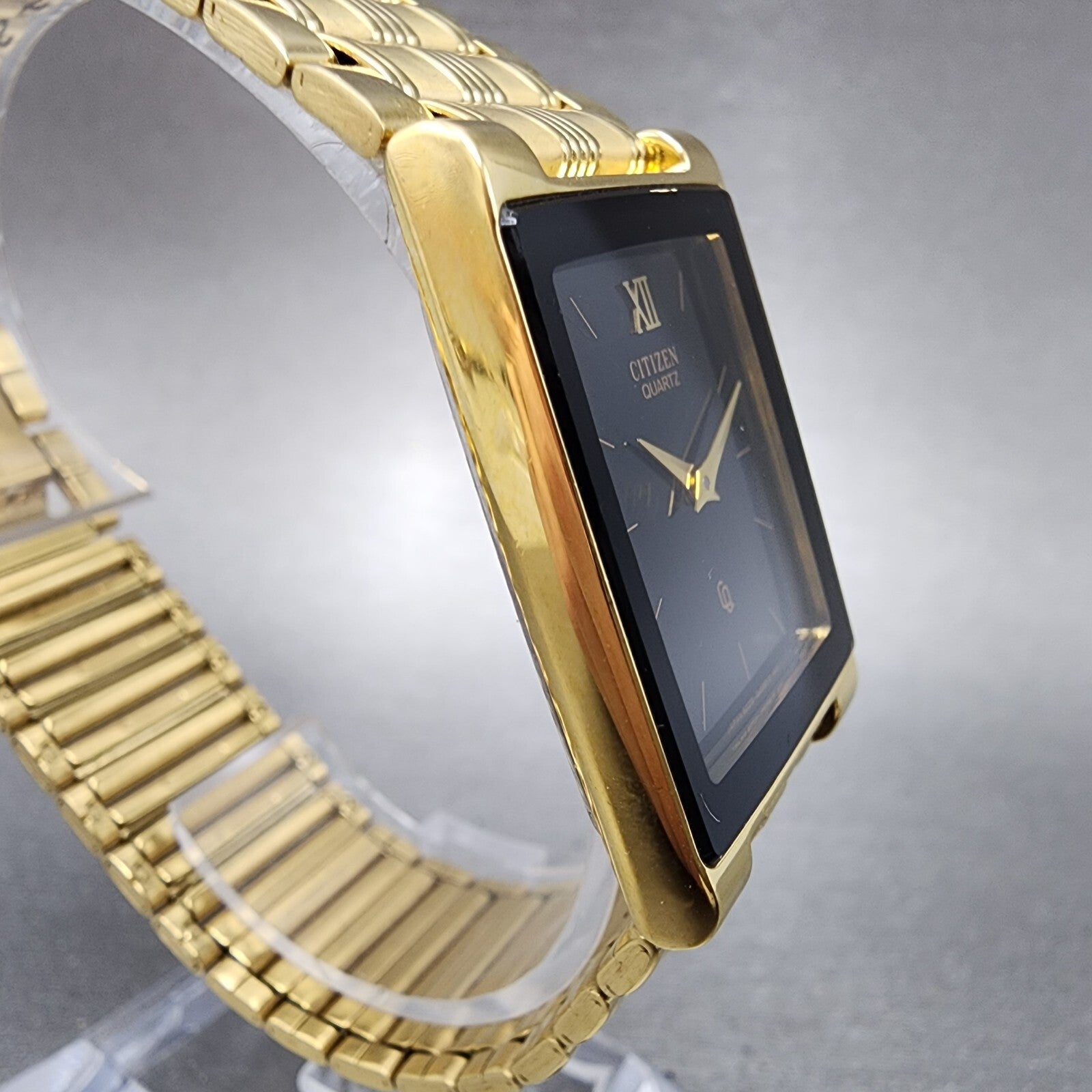 Citizen CQ Tank Watch Men 25mm Black Dial Gold Tone 1022-H14231 New Battery