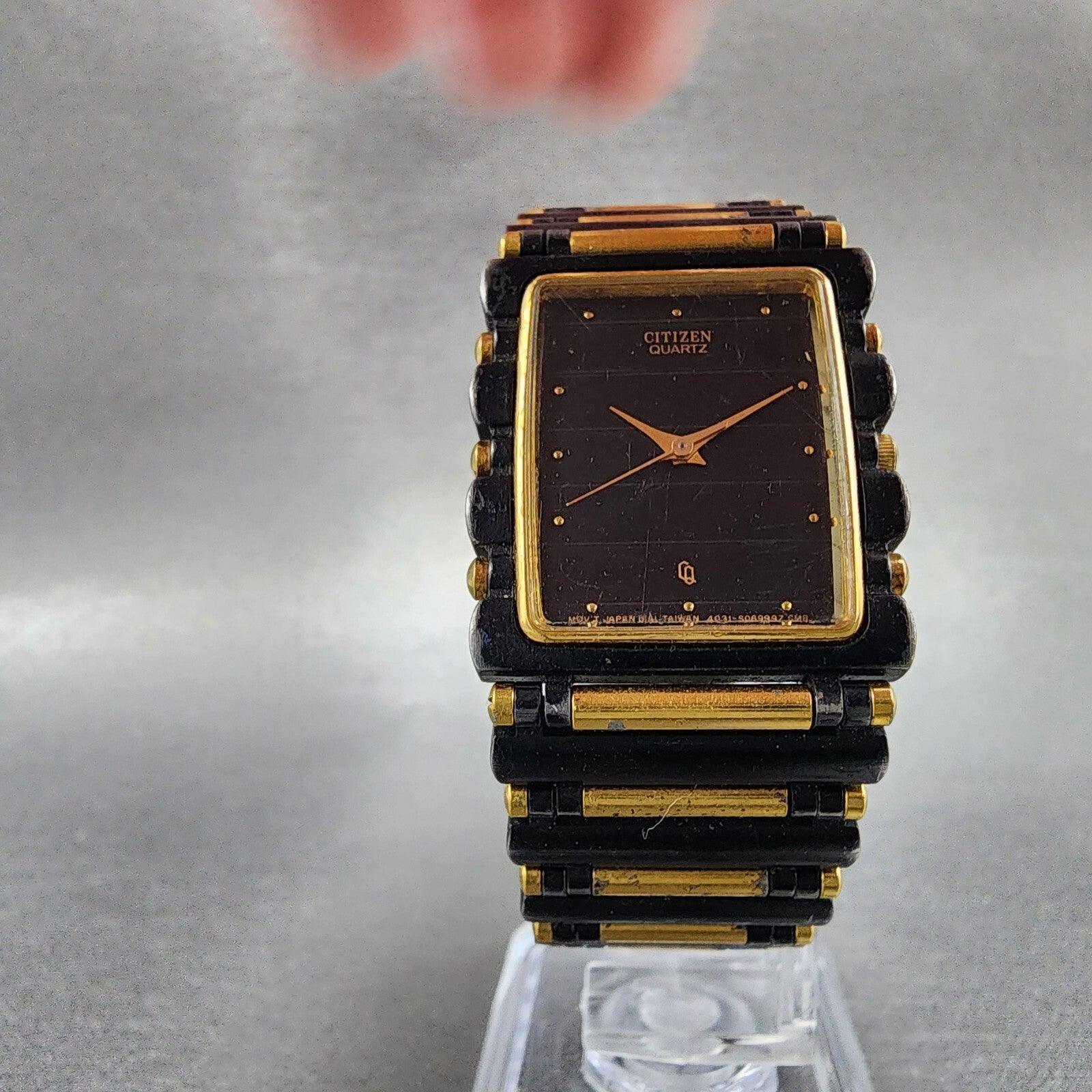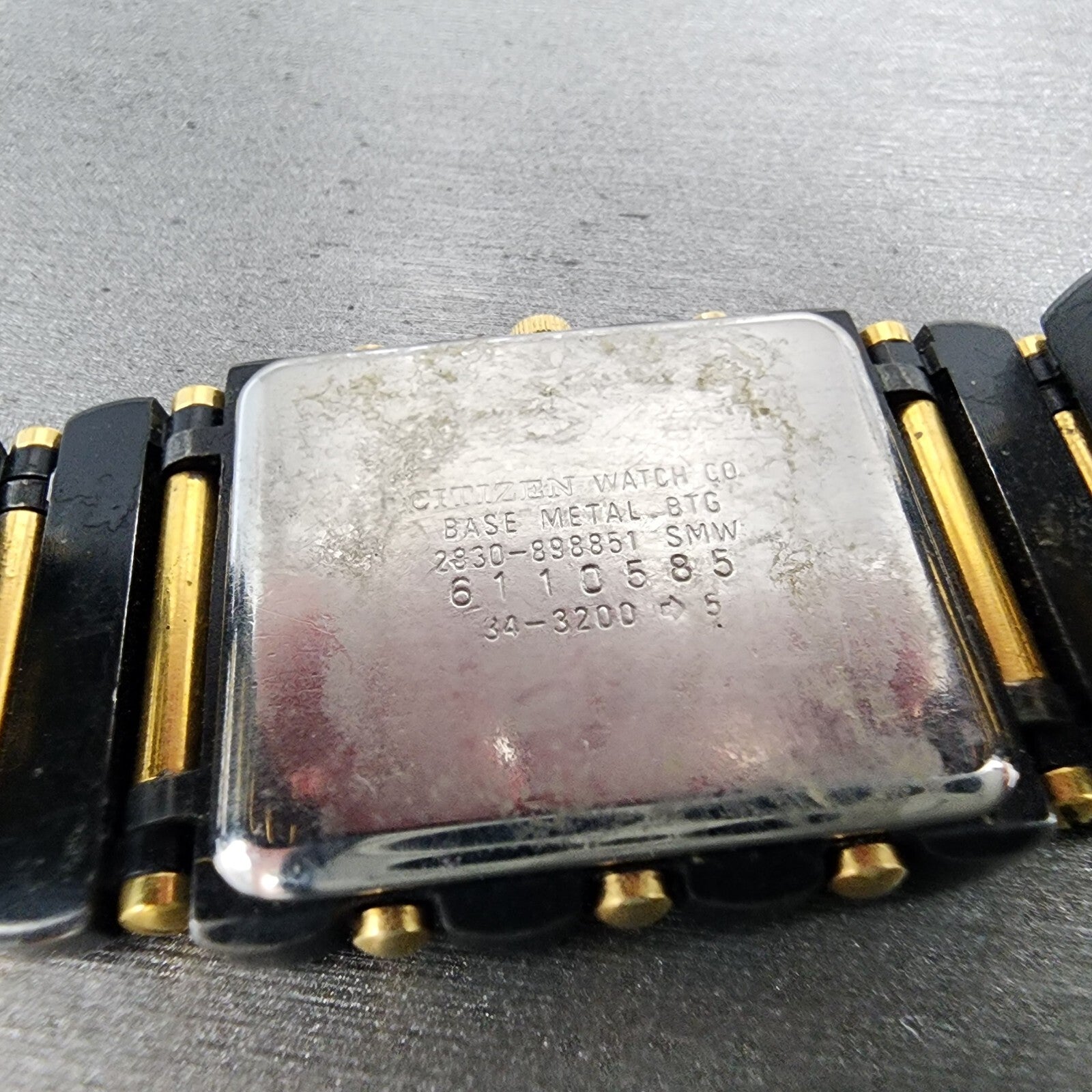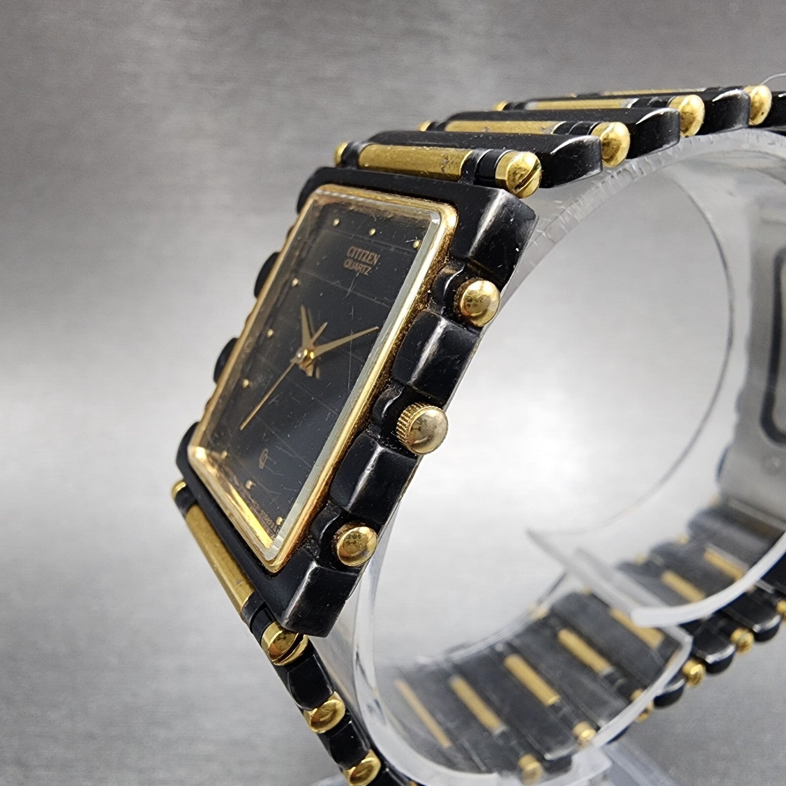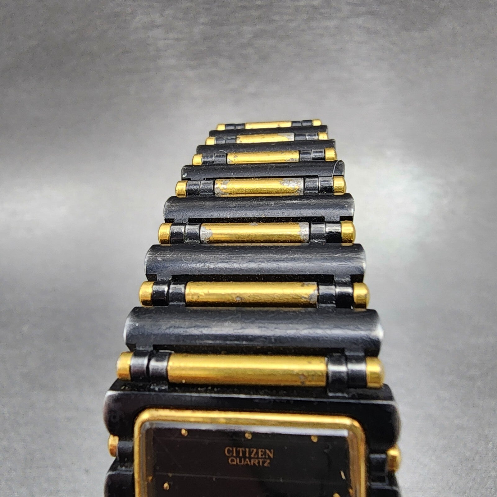 Citizen CQ Tank Watch Men 25mm Black Dial Two Tone Rectangle 2830-998851 New Bat