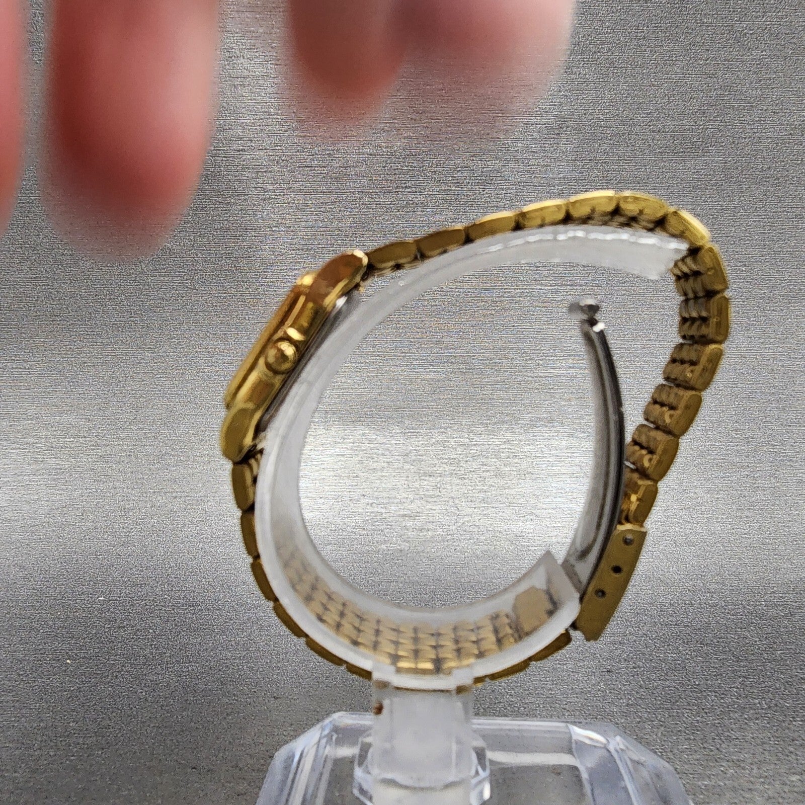 This watch has been used but is in good working condition. There is scratches on the watch. please refer to pictures.